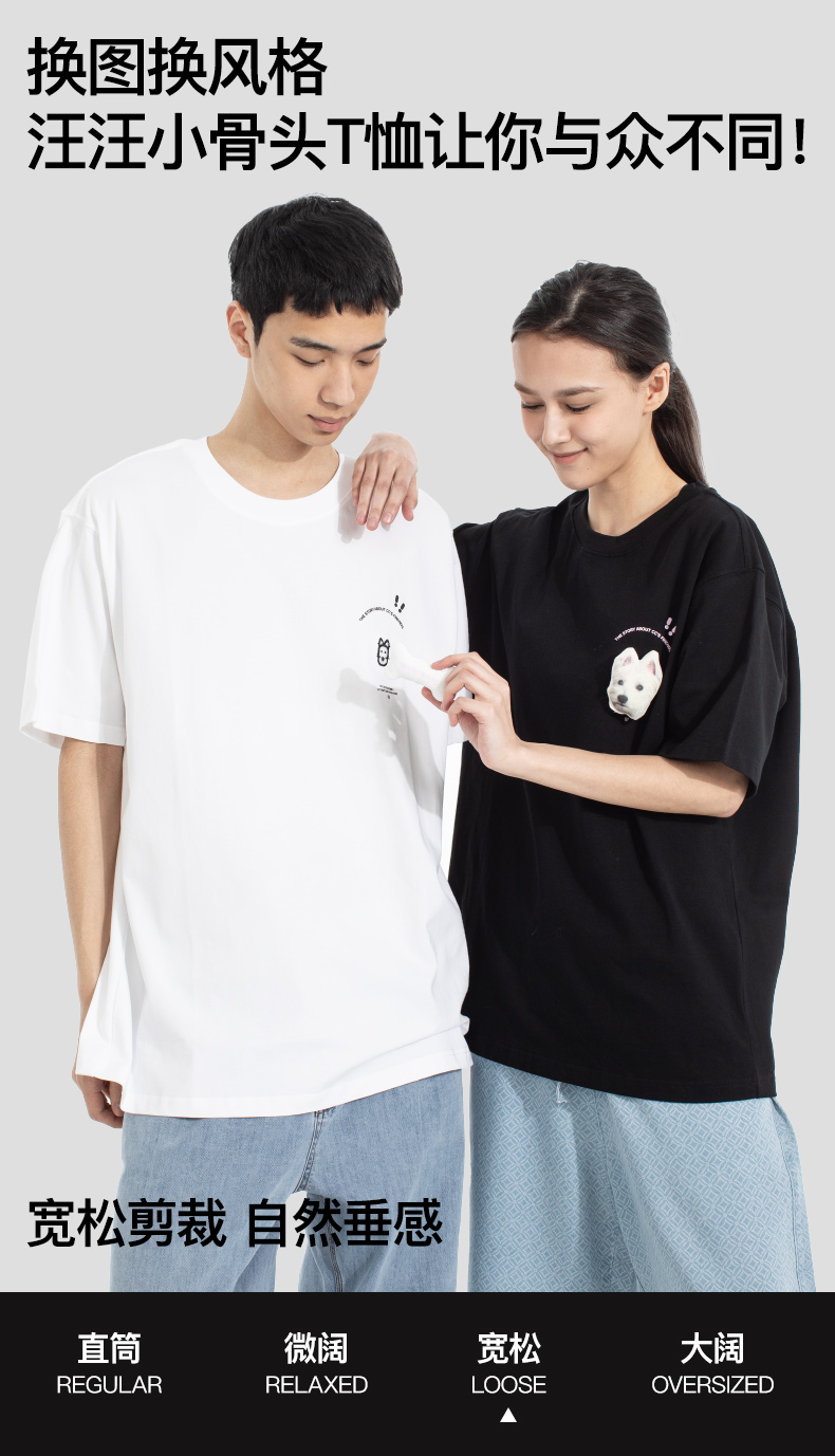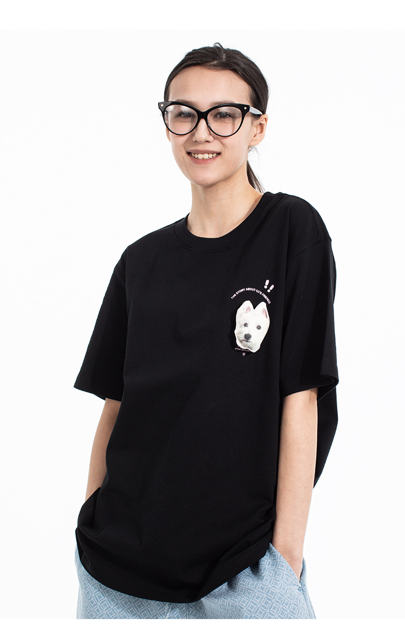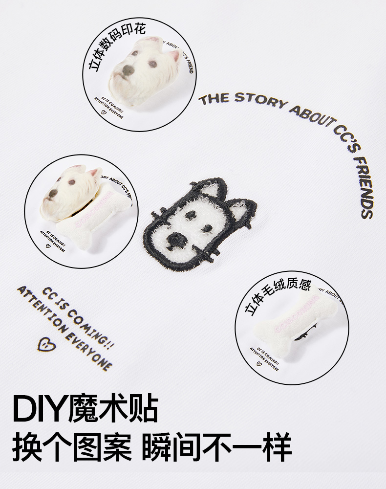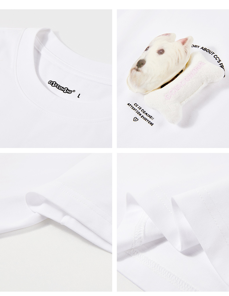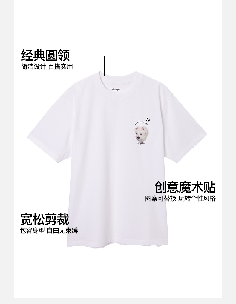 NPC潮牌CC小狗创意魔术贴可替换图案圆领T恤男纯棉舒适CC52TE17