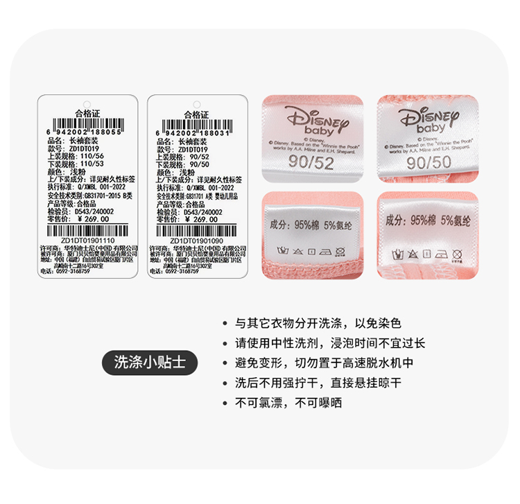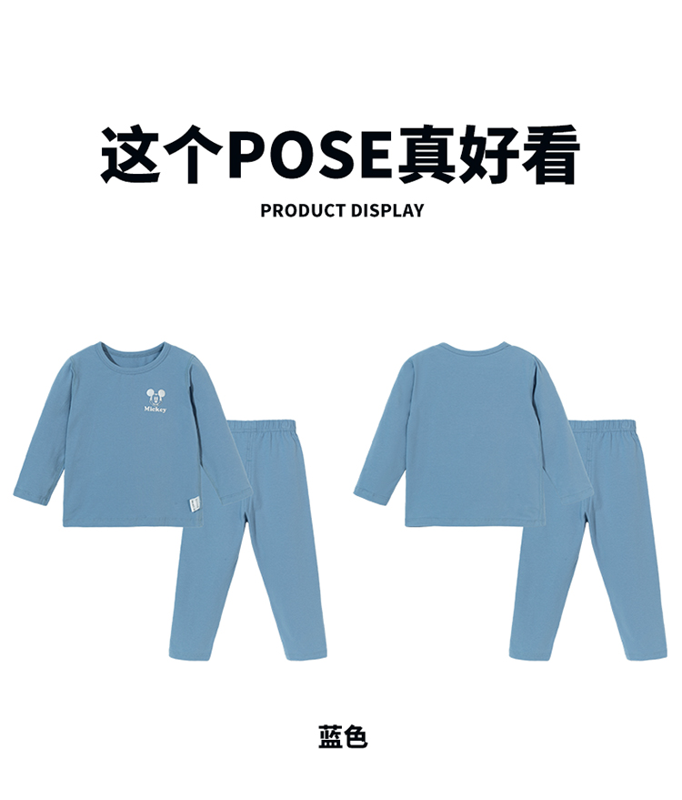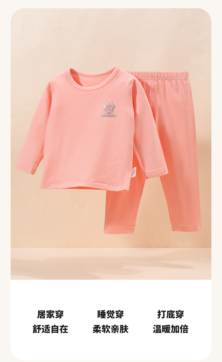 迪士尼2024春季男女宝宝长袖家居服套装棉弹舒适内衣卡通睡衣打底衫ZD1DT019