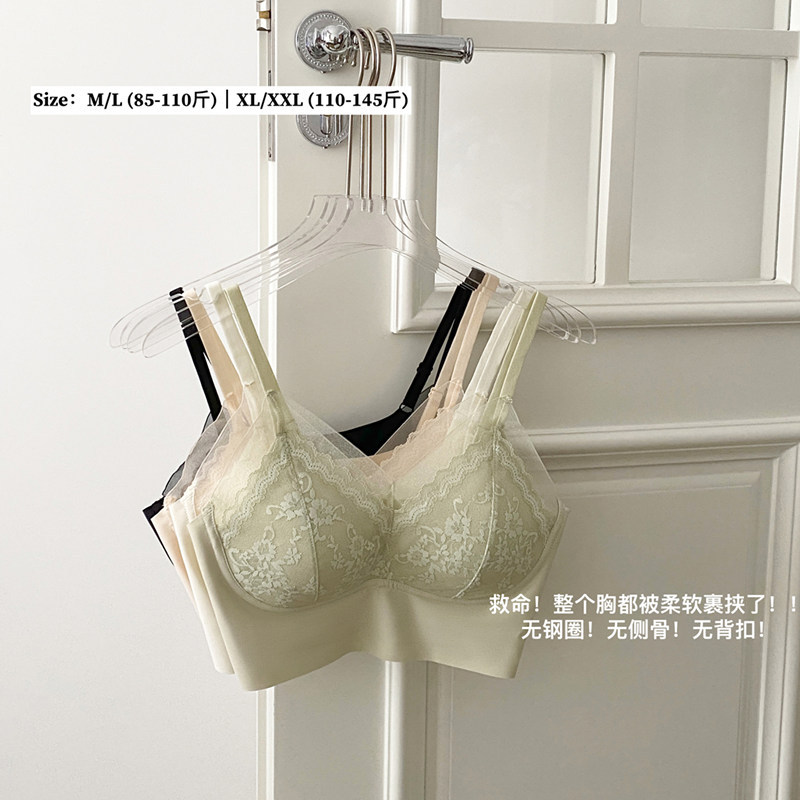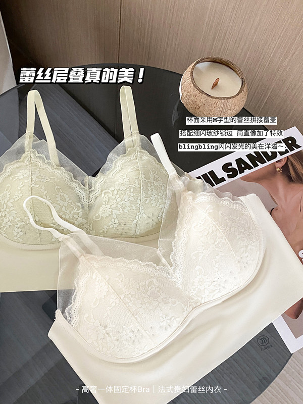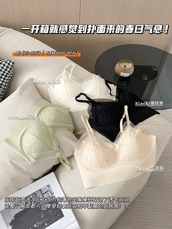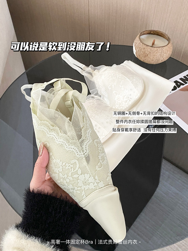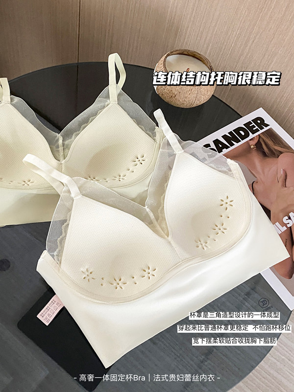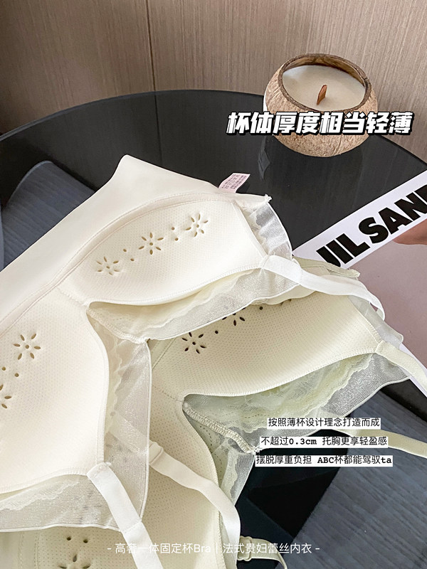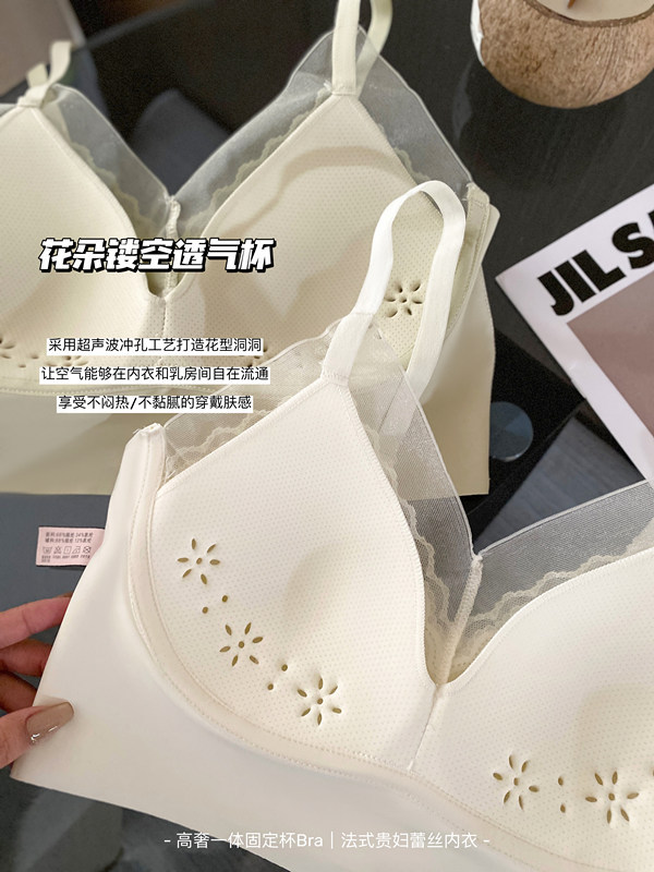 【49.9元2件❗️】法式珠光纱蕾丝边无痕一体洞洞杯薄款透气无钢圈聚拢文胸美背内衣HLY