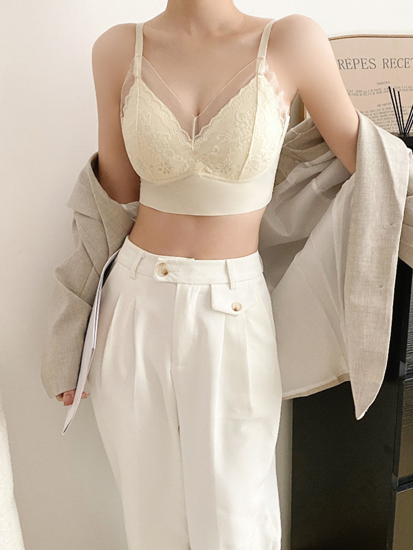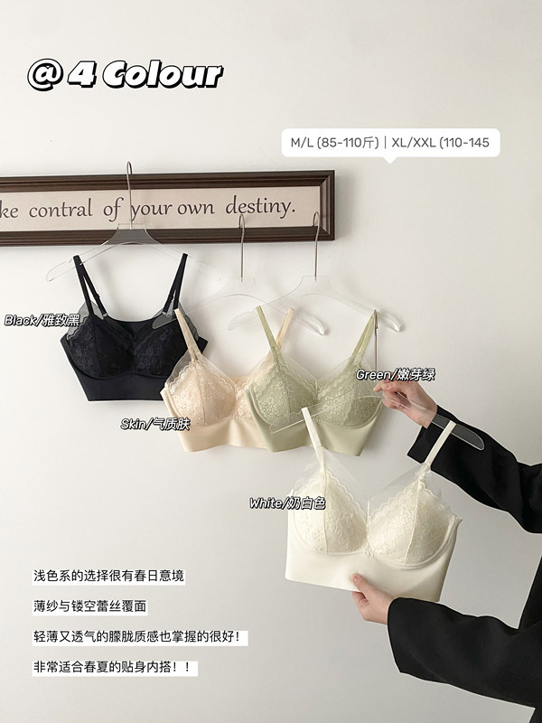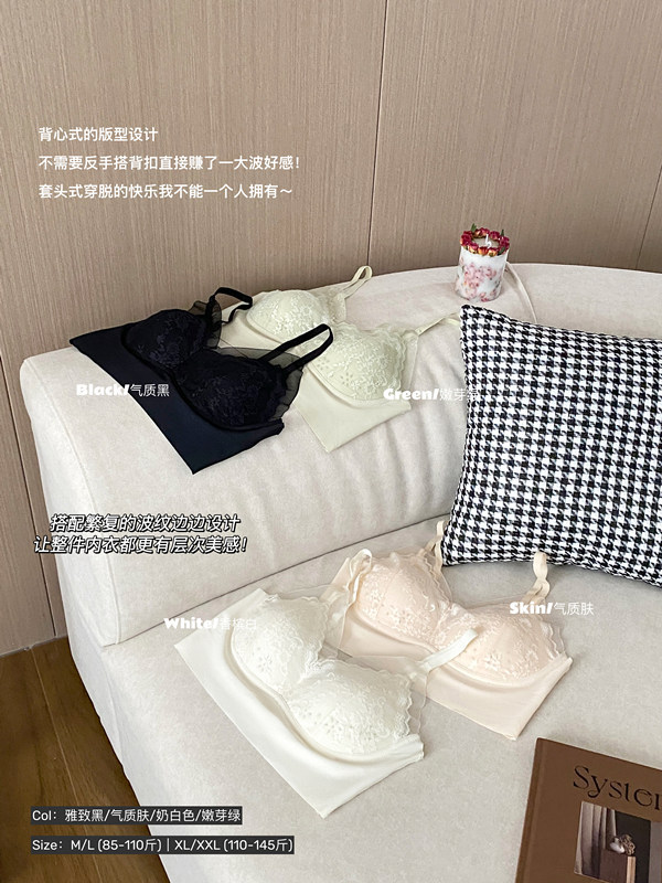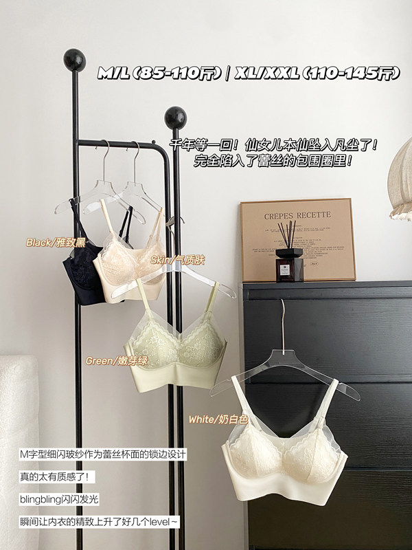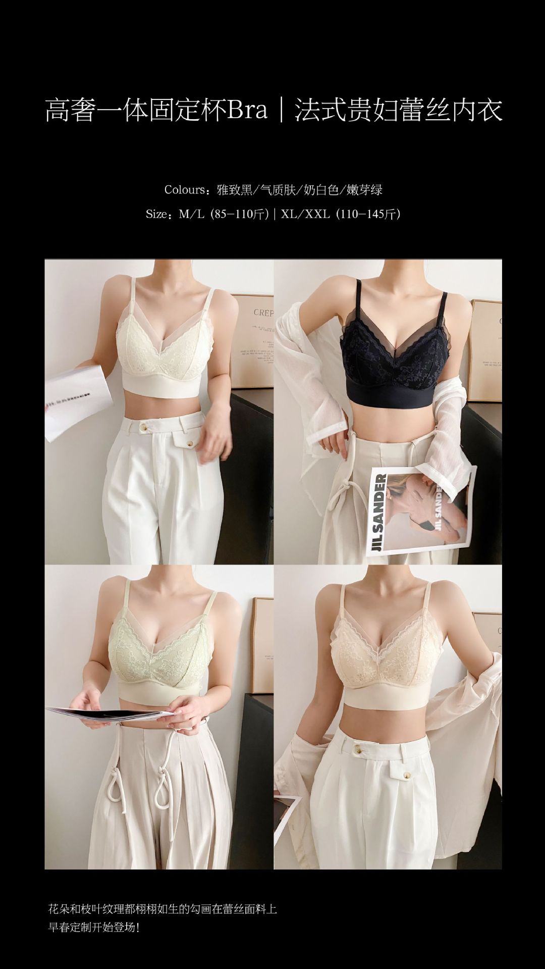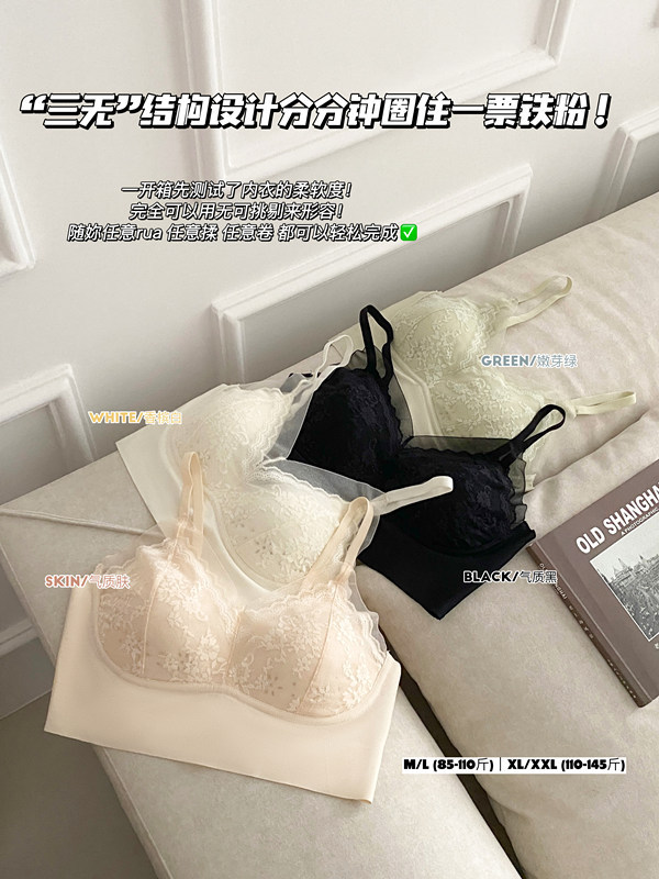 【49.9元2件❗️】法式珠光纱蕾丝边无痕一体洞洞杯薄款透气无钢圈聚拢文胸美背内衣HLY