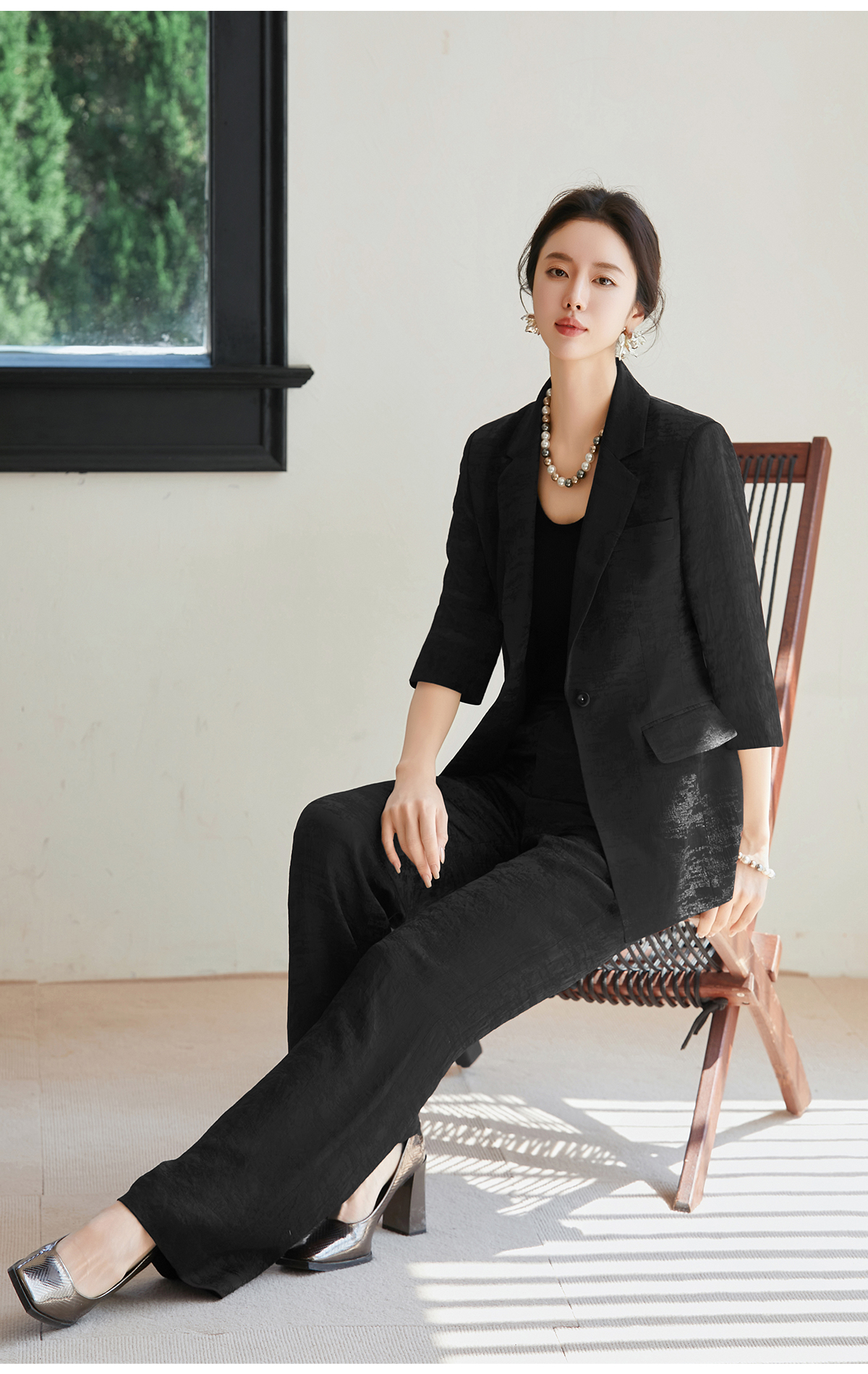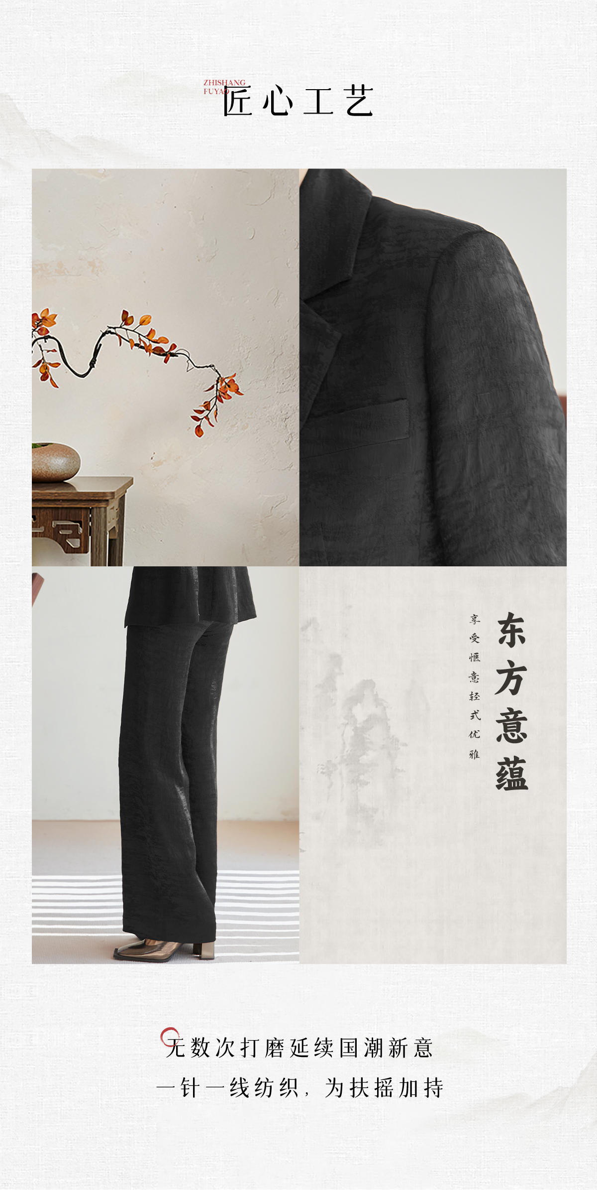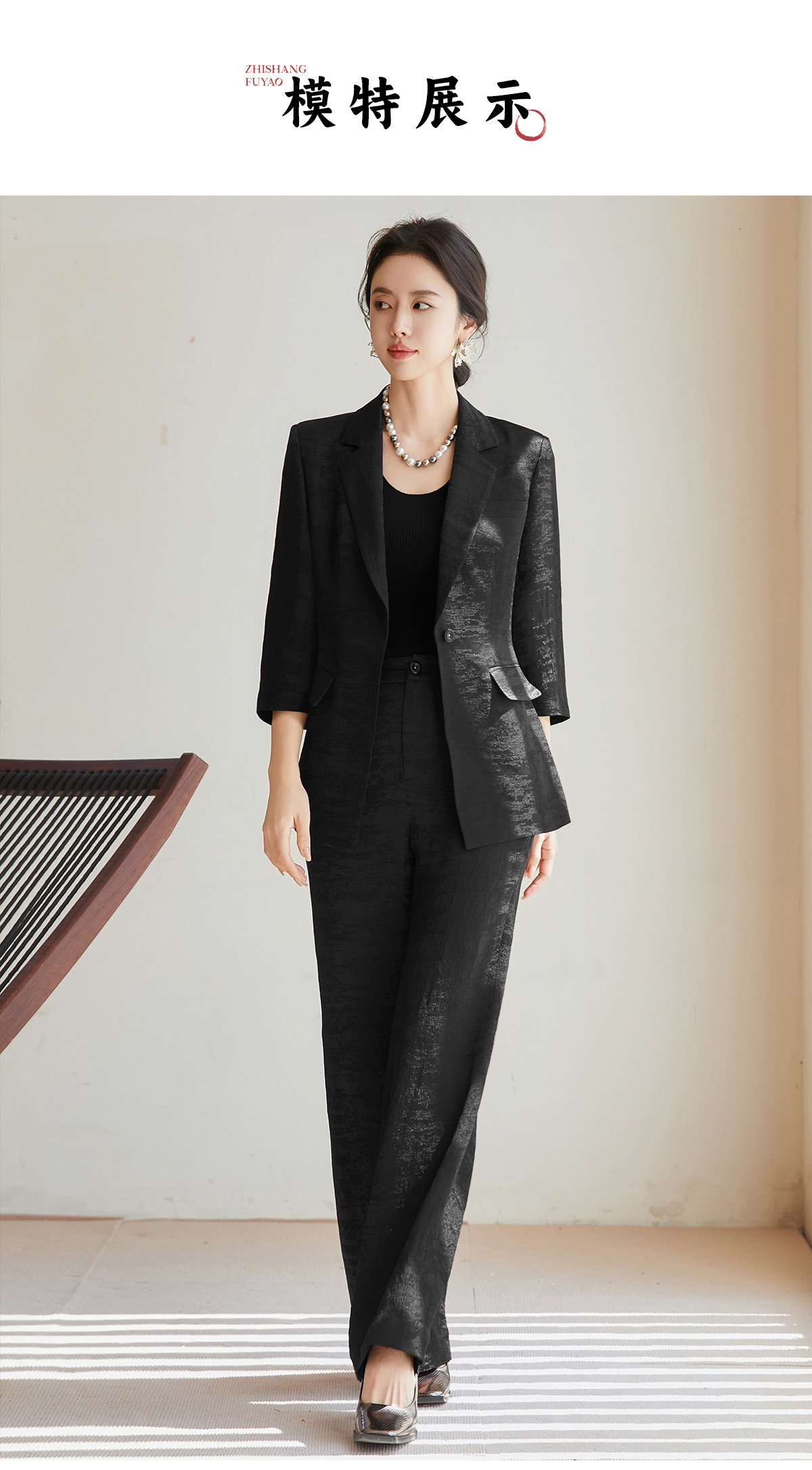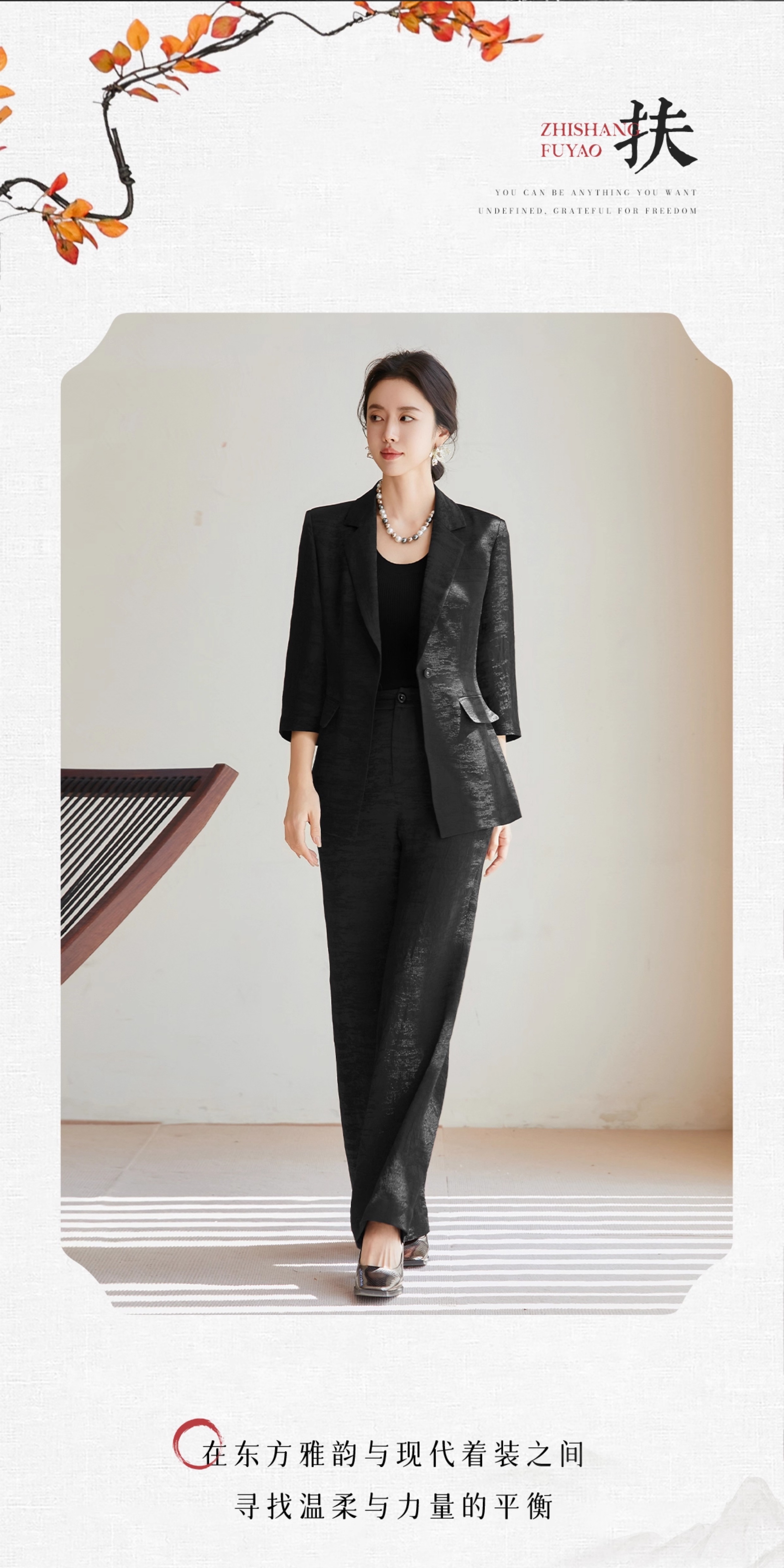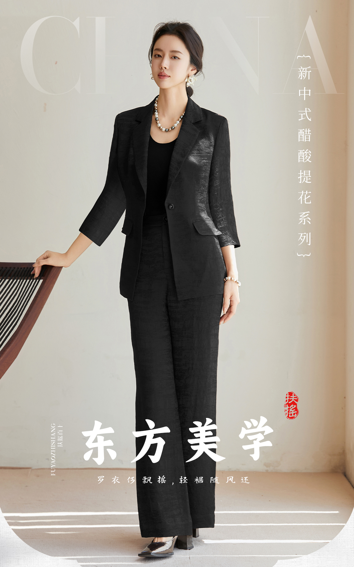 FUYAO扶摇 优雅松弛 秋季时尚套装女法式轻奢醋酸西装外套两件套