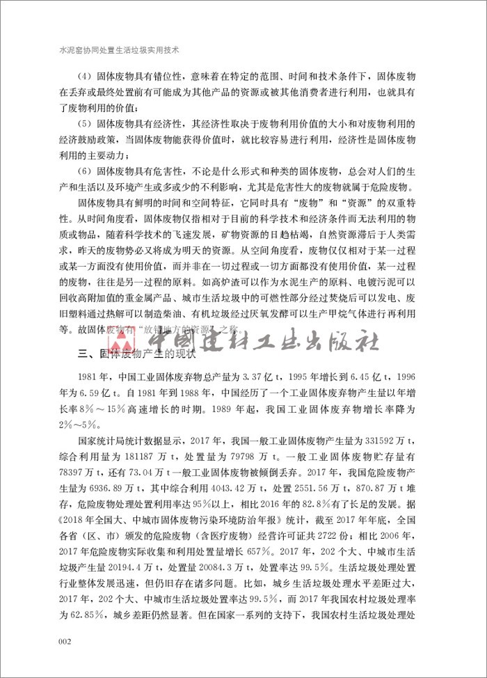 本书从生活垃圾的特性出发,针对生活垃圾的组成和理化特性,全面系统地介绍了水泥窑协同处置生活垃圾的关键技术环节,并列举了相关案例。本书旨在通过对生活垃圾的理化特性、干化技术、RDF制备技术、入窑影响等关键技术环节与典型案例的阐述,为水泥窑协同处置生活垃圾的企业提供一些理论知识和指导意见,使其安全环保地处置生活垃圾,减少垃圾处置对水泥窑产生的影响。