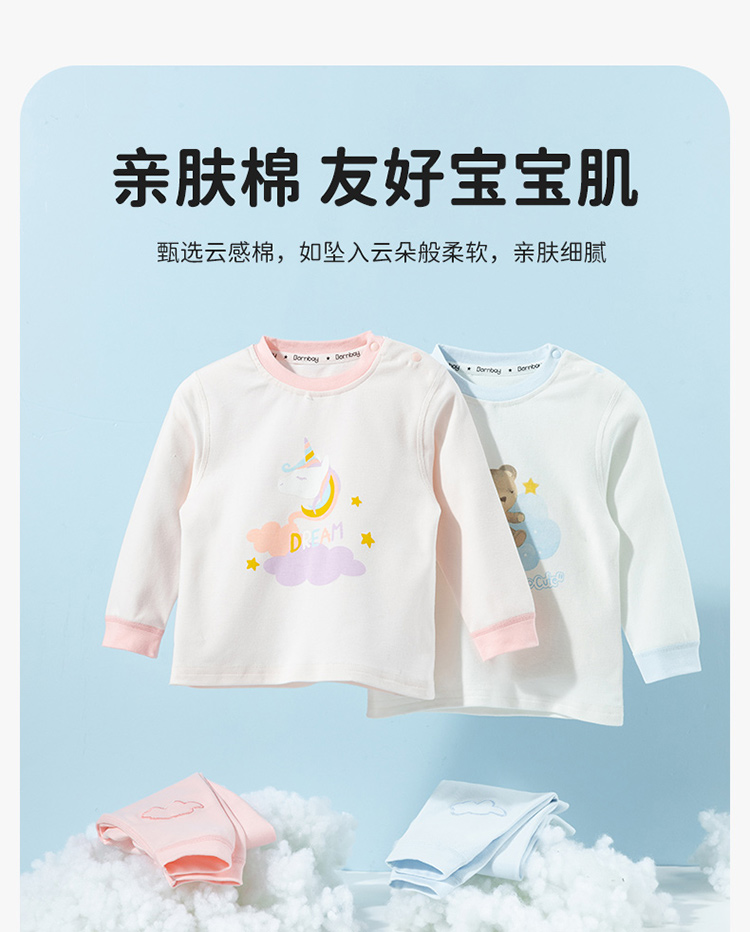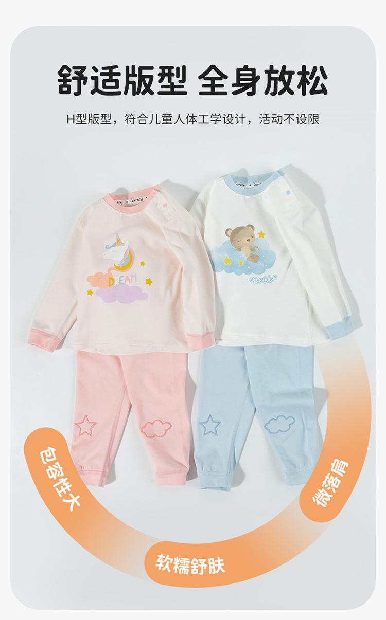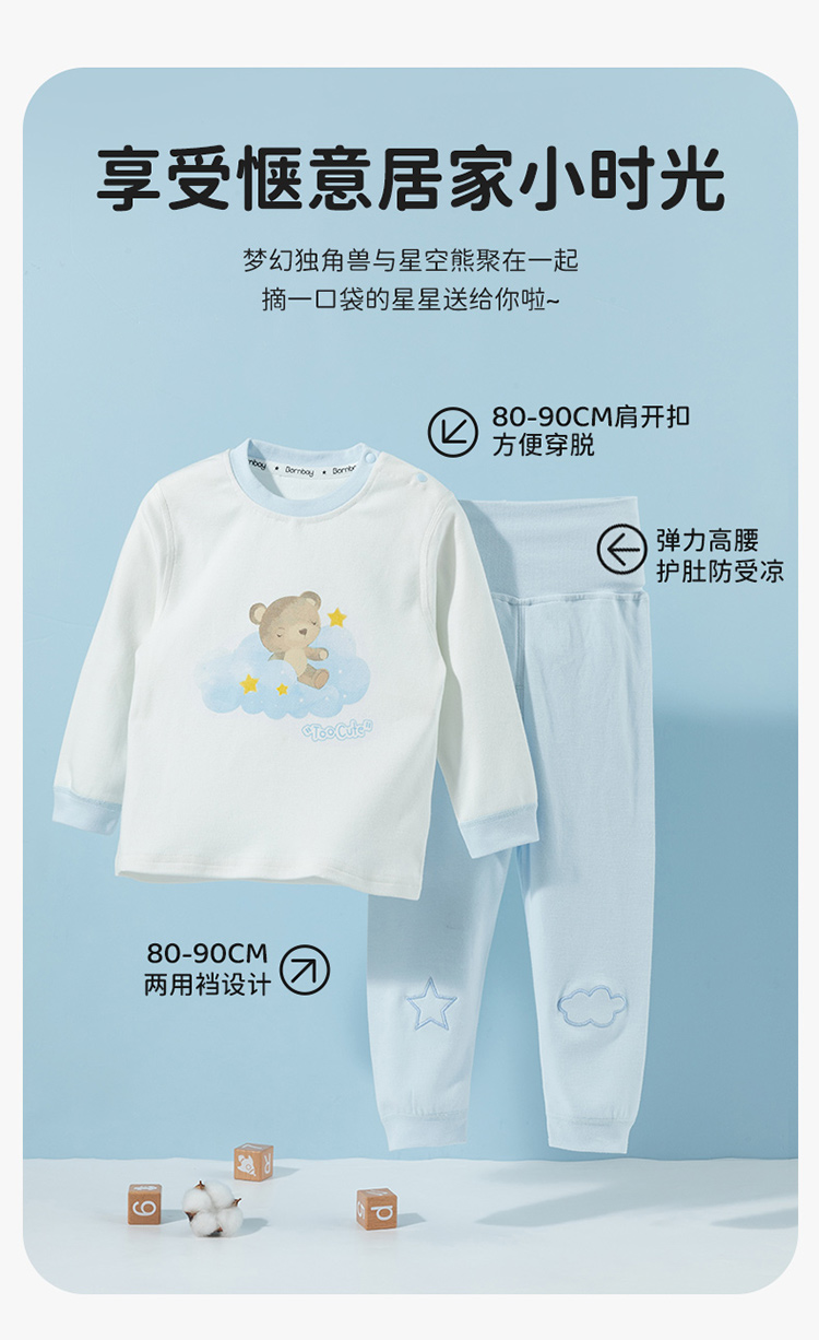 贝贝怡童装儿童家居服套装纯棉2024新款秋冬内搭保暖全棉高腰长裤ZB3DT098