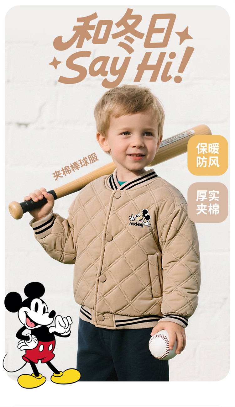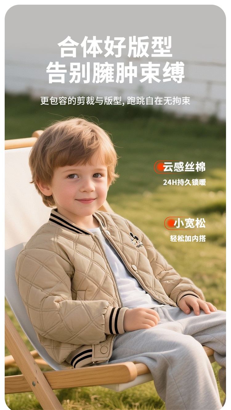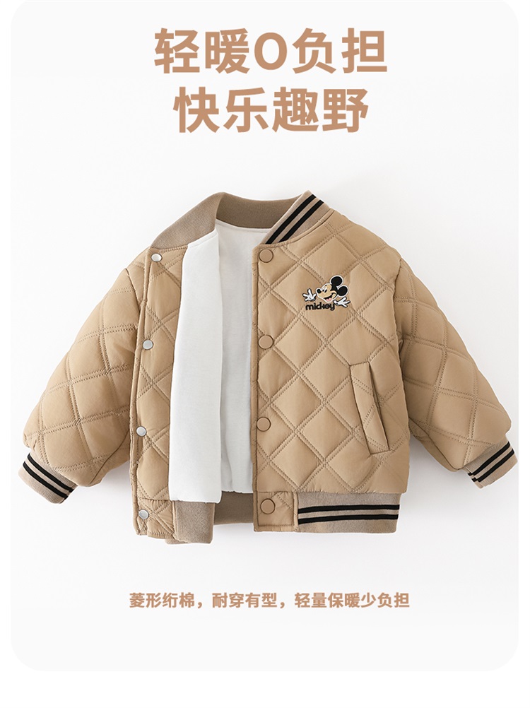迪士尼宝宝夹棉外套新款秋冬男童轻暖舒适加绒保暖棉衣ZD4ES018