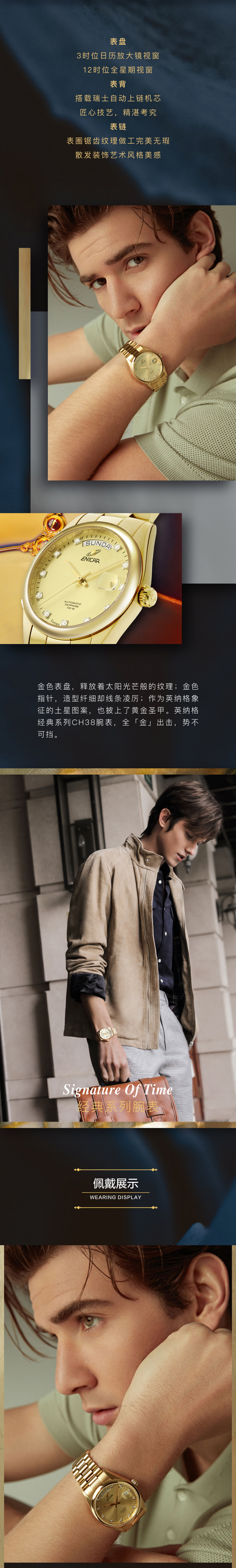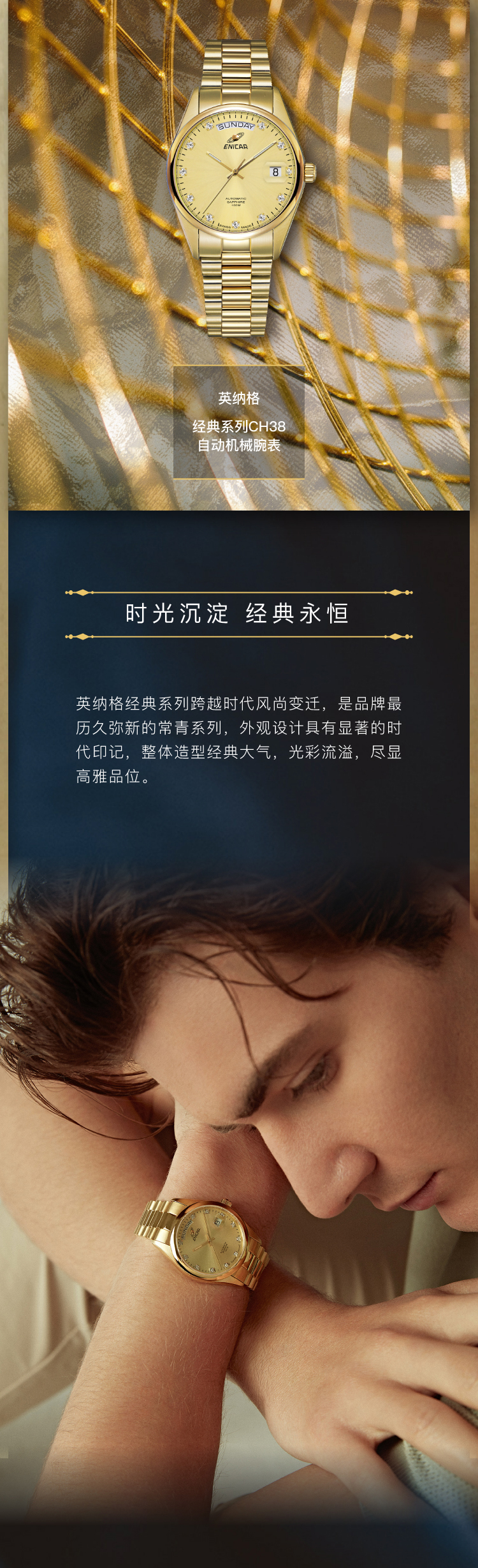 瑞士原装进口 英纳格经典系列全金璀璨腕表手表 男款