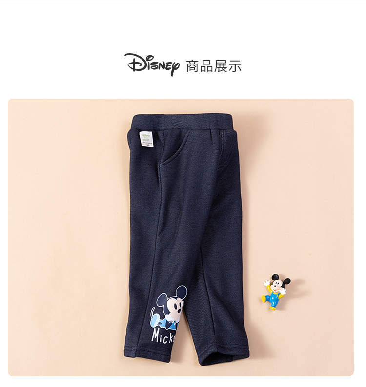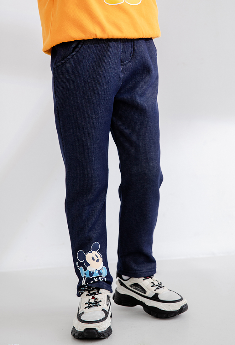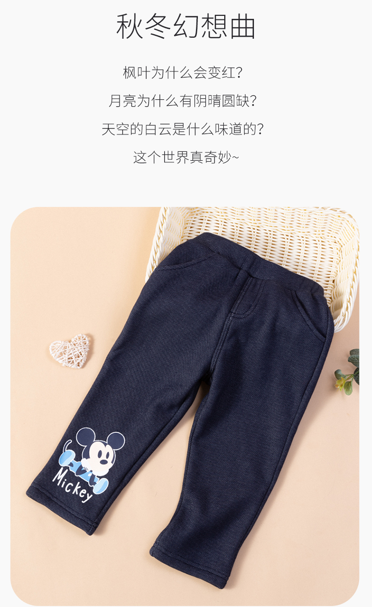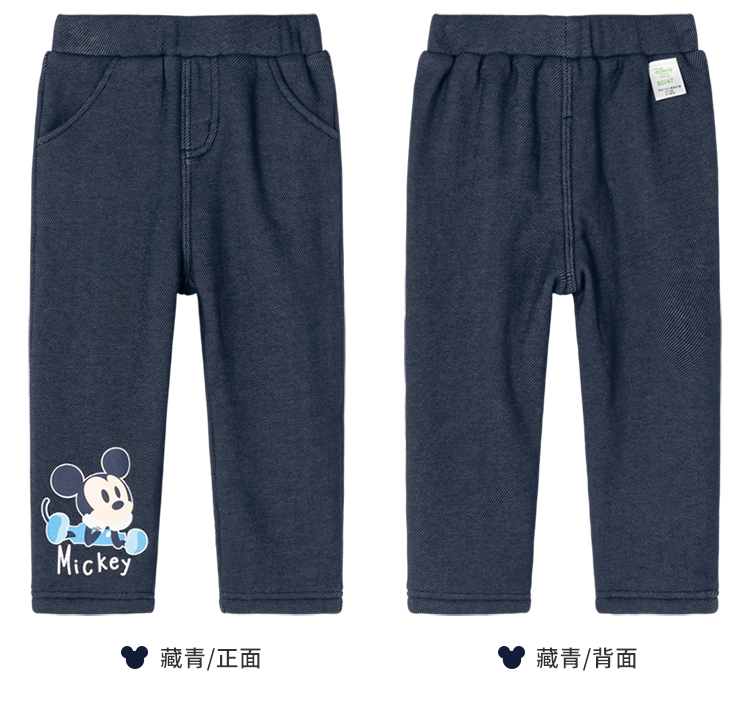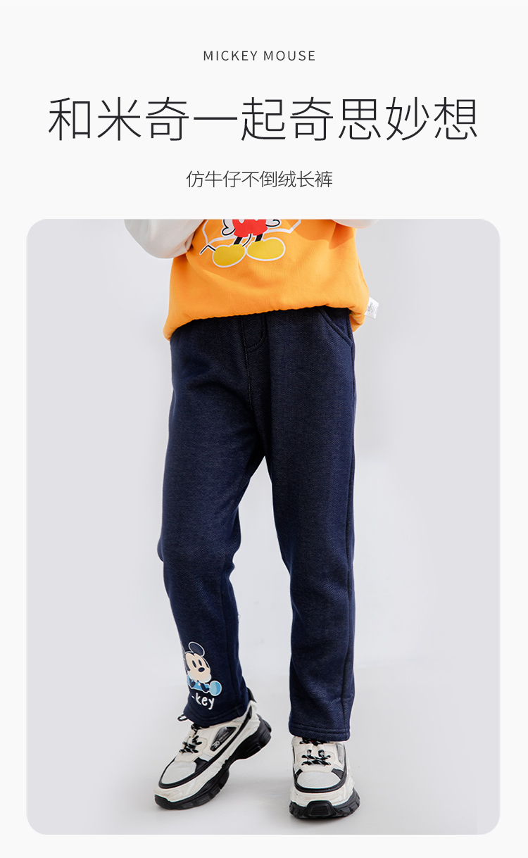 迪士尼米奇男童宝宝春秋保暖加绒仿牛仔长裤裤子