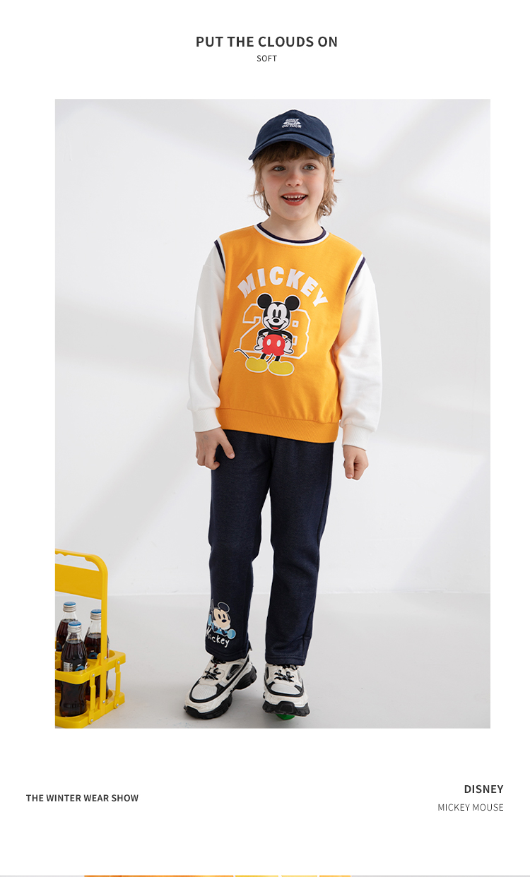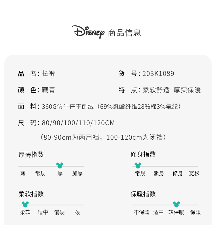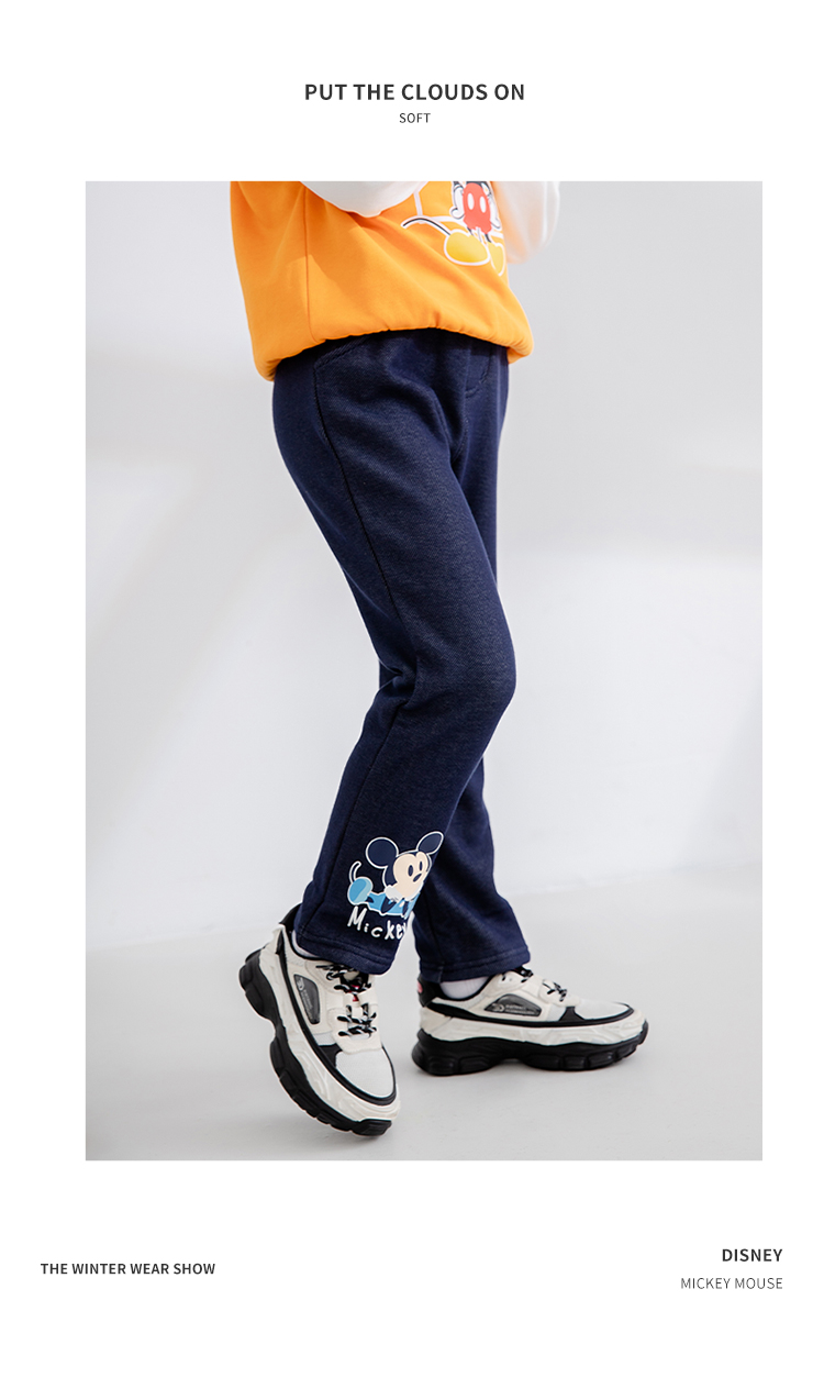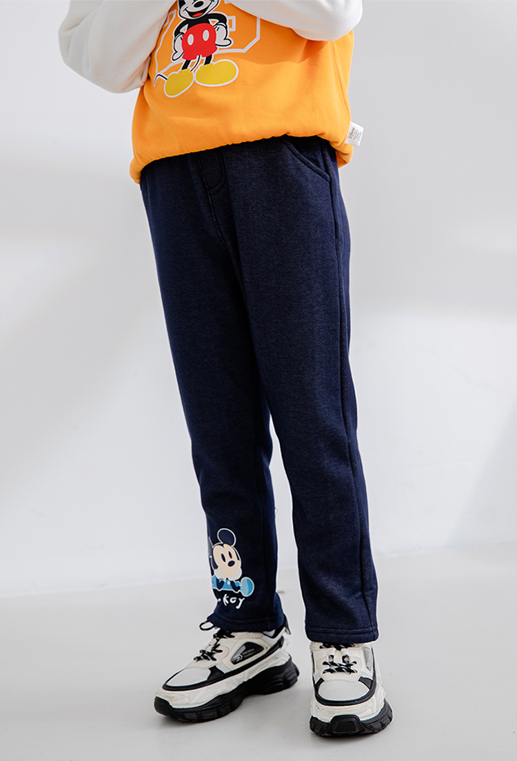 迪士尼米奇男童宝宝春秋保暖加绒仿牛仔长裤裤子