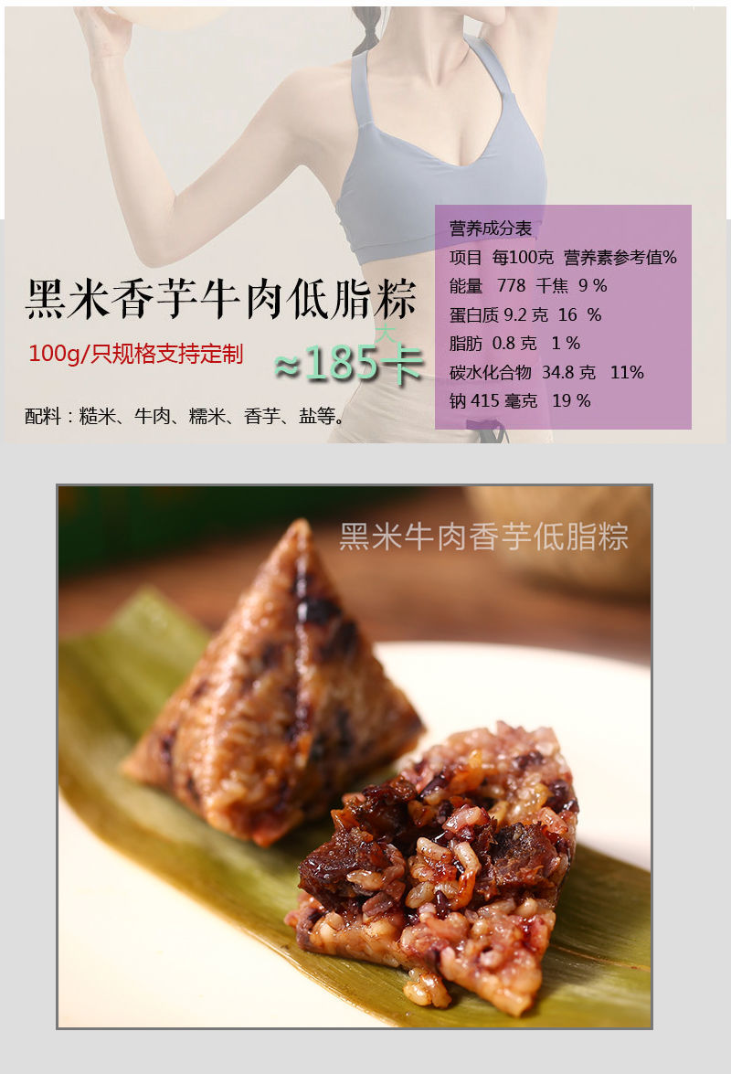 粗粮粽子健康早餐粗粮代餐黑米牛肉香芋低卡燕麦紫米藜麦饱腹粽