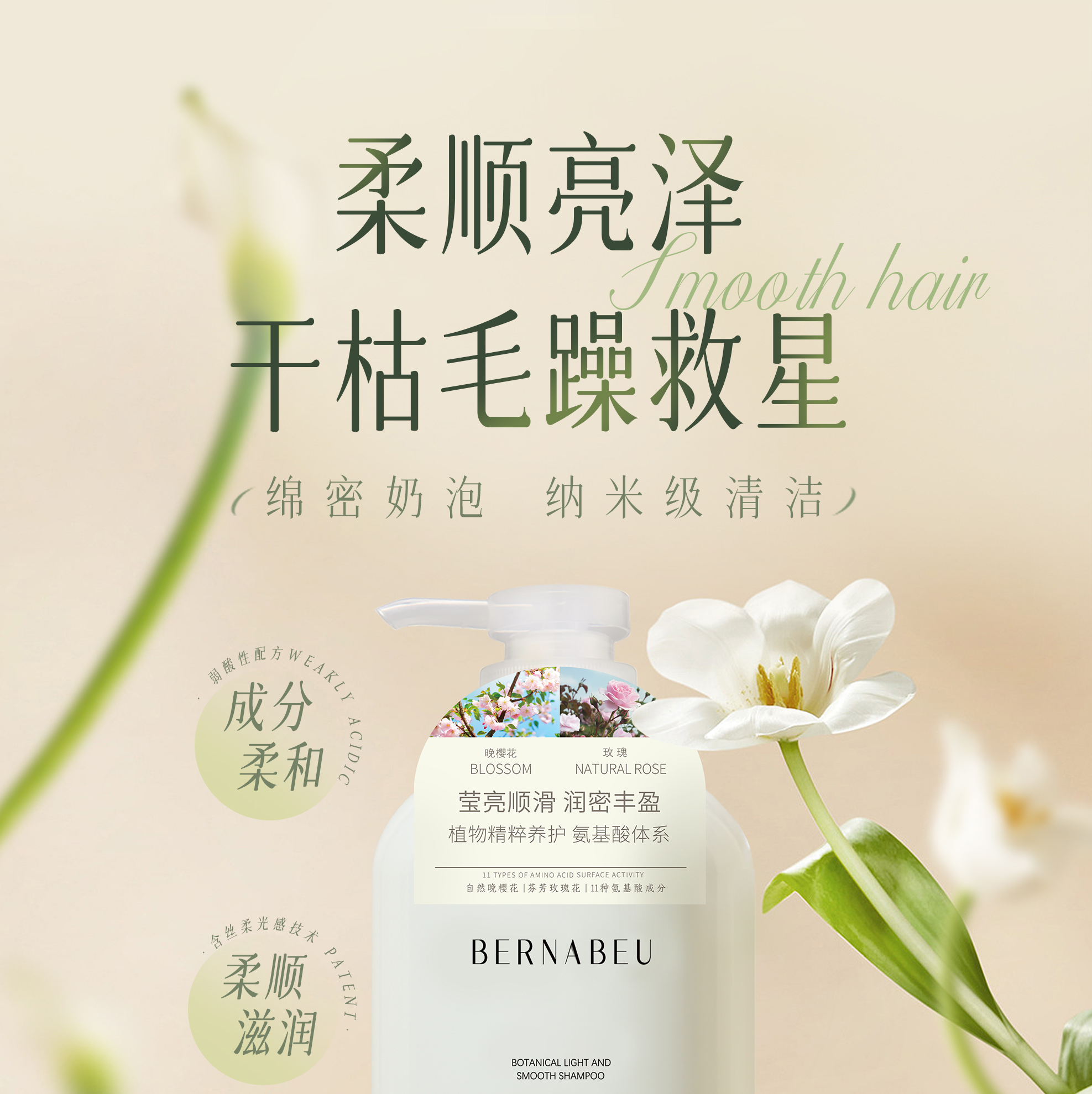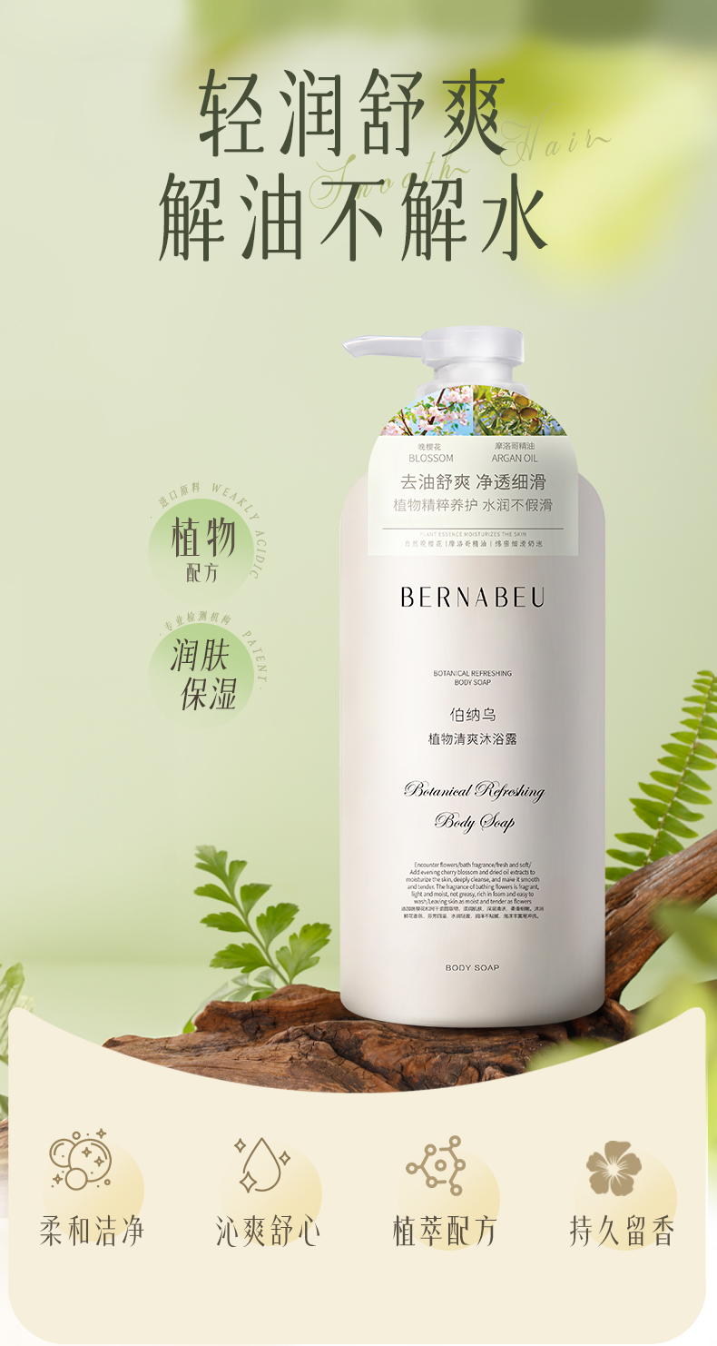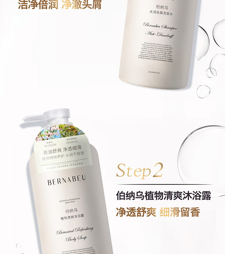 热卖!胖*来断货王!【超值2瓶装】伯纳乌 洗护系列 肤感、颜值、效果、香气统统拉满! 去屑/柔顺/清爽沐浴露/清爽护发素 柔顺滋润 清爽沐浴 525ml/瓶
