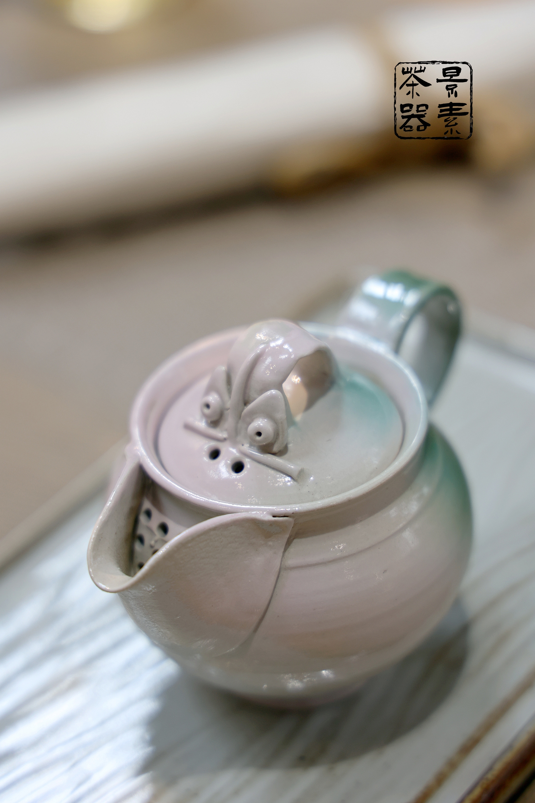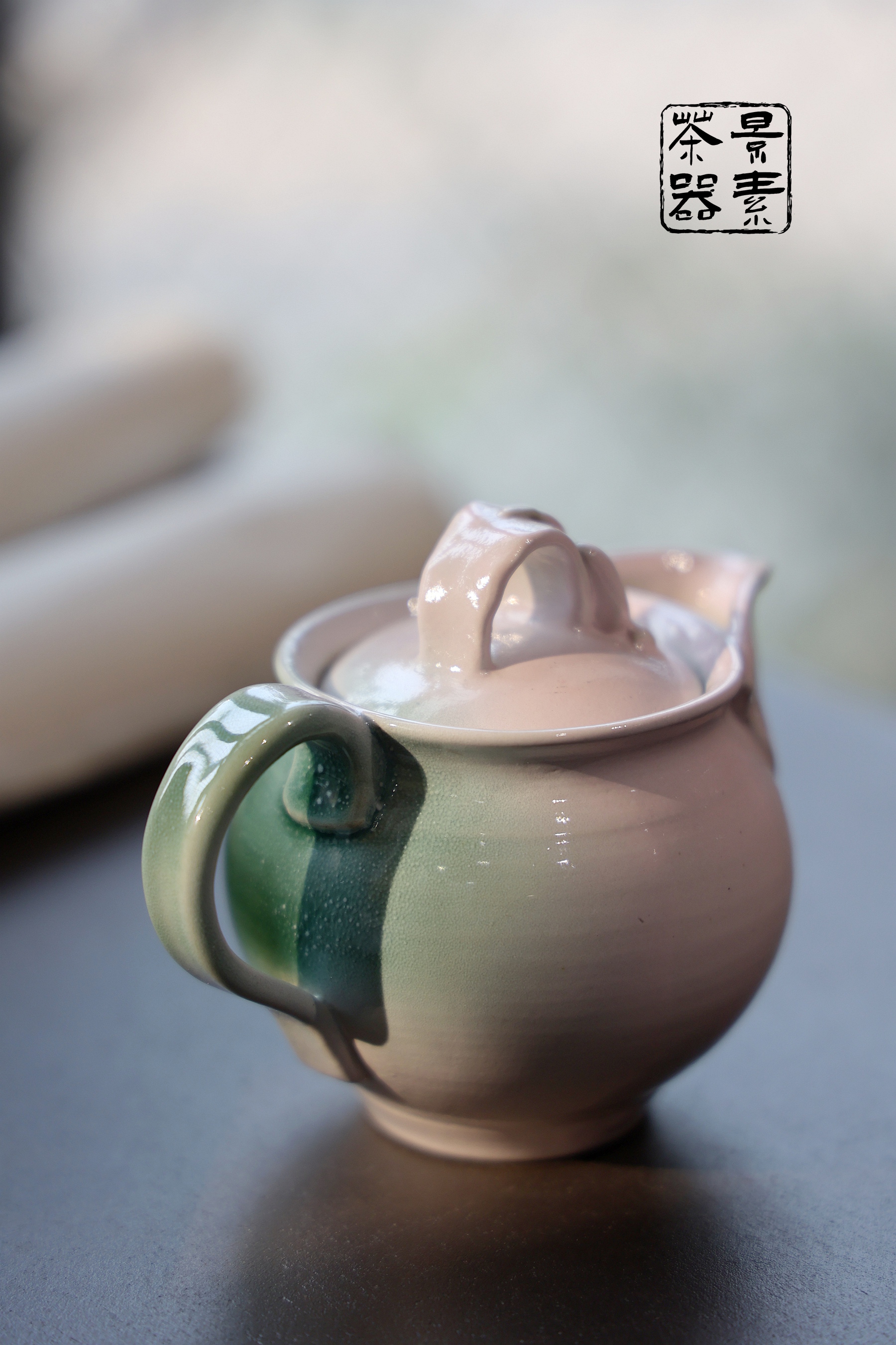 瓦猫釉陶手柄壶(青粉)