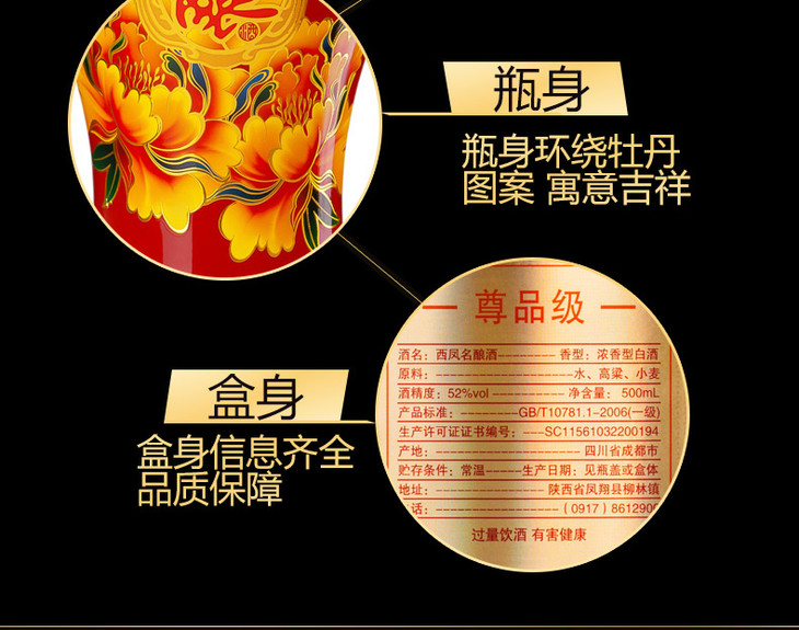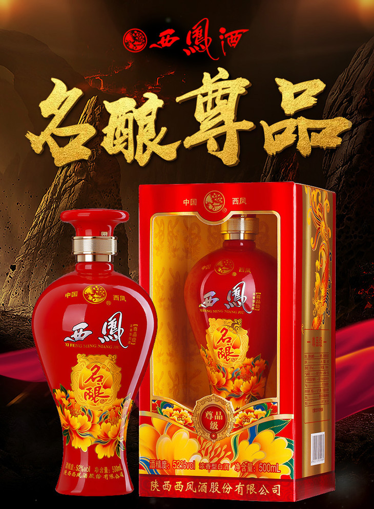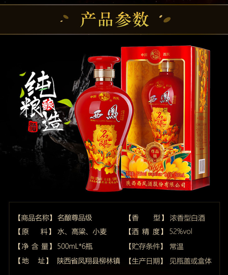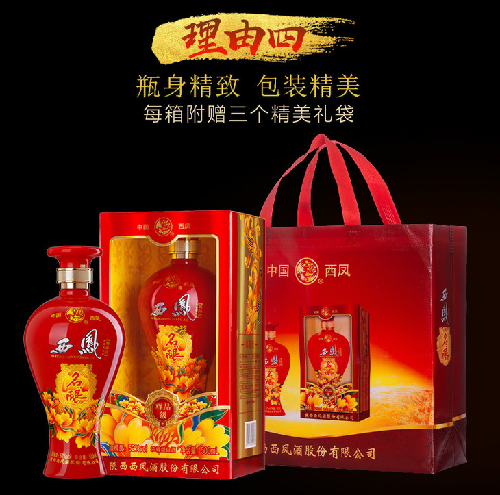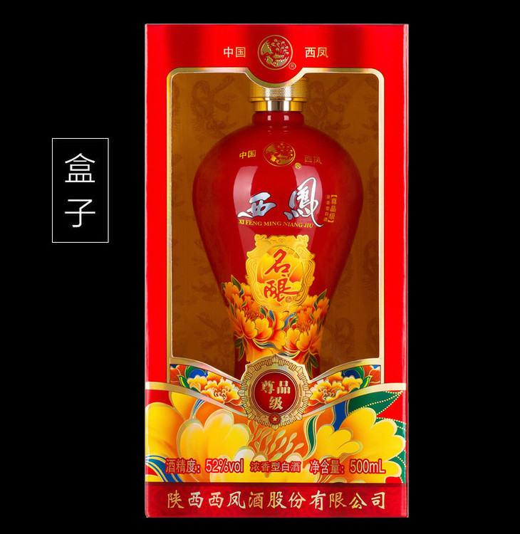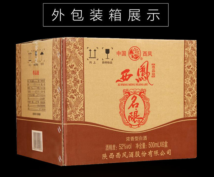 西凤名酿尊品52度浓香型500ml*6整箱(内含3支手提袋)【2日内提货】