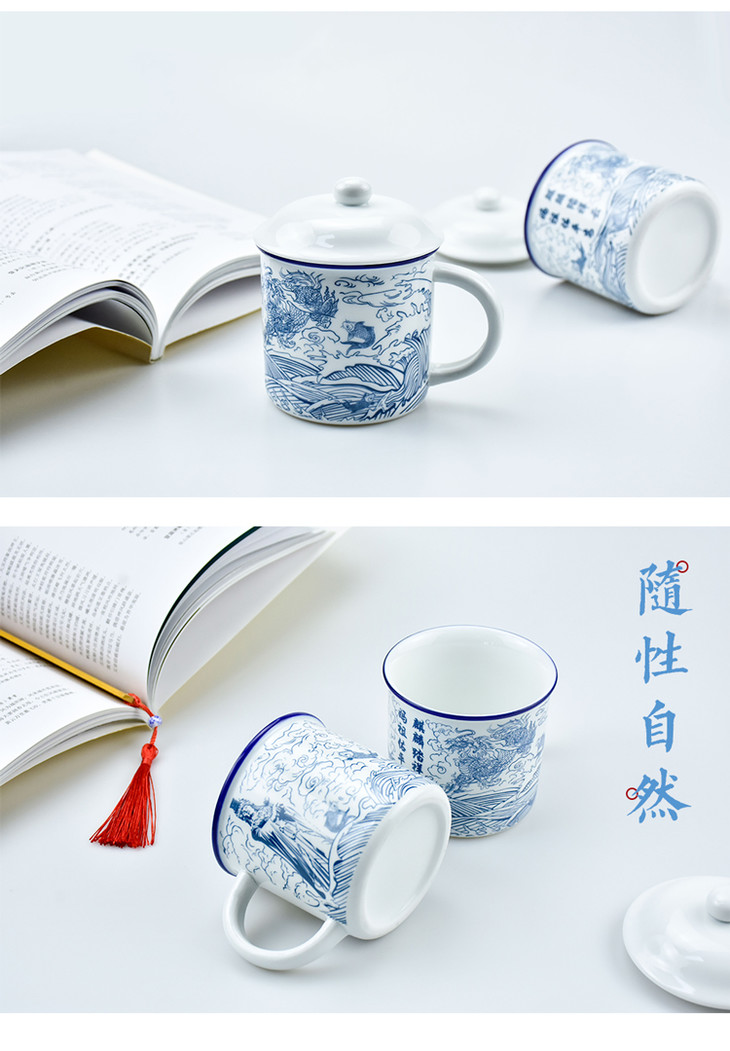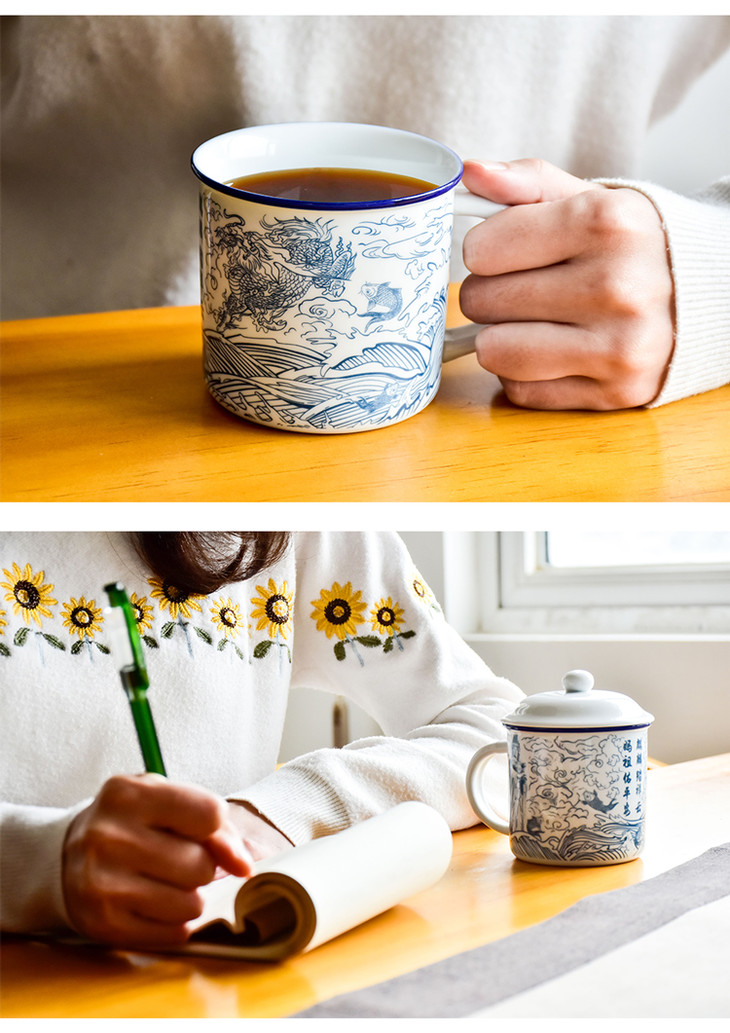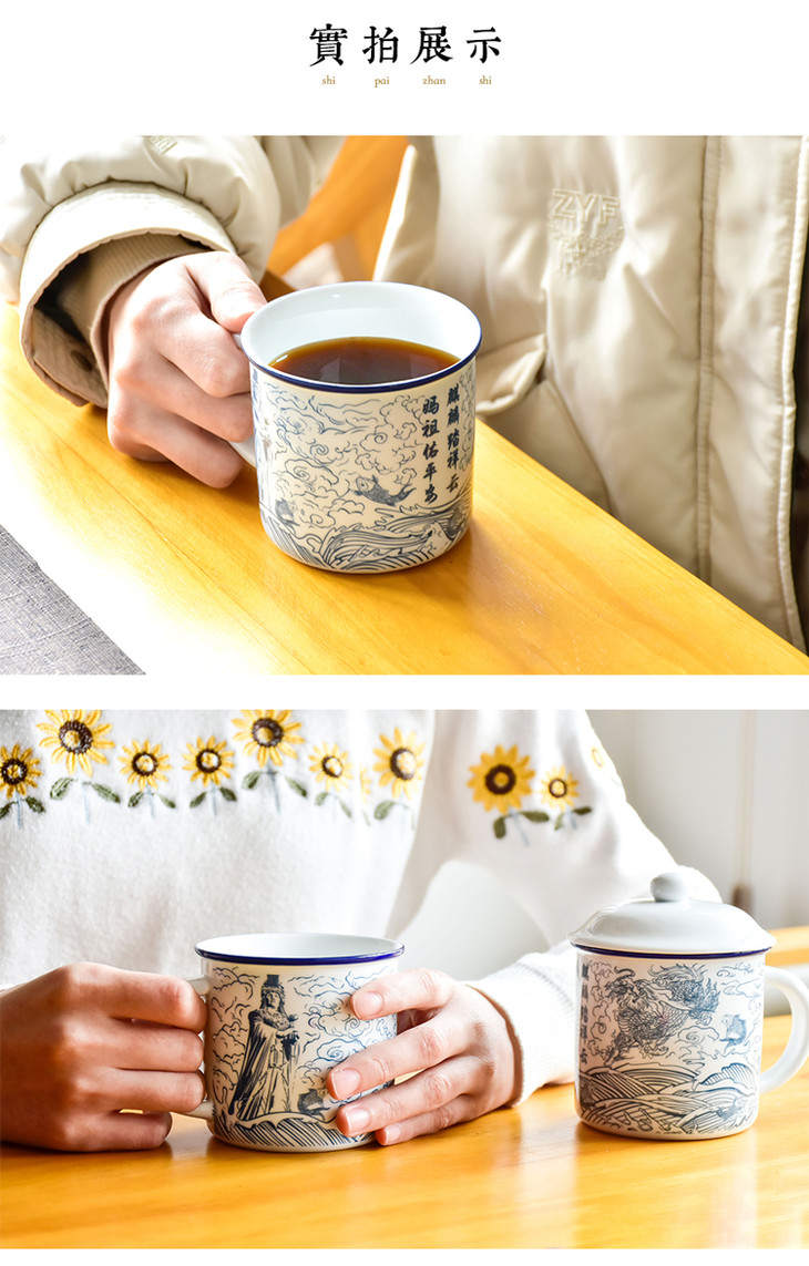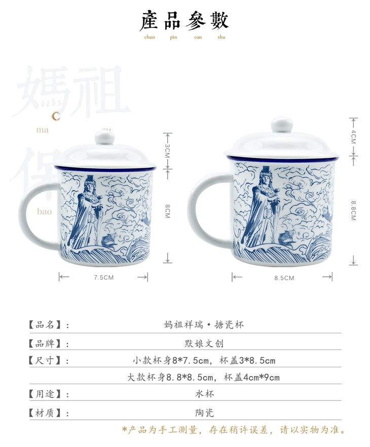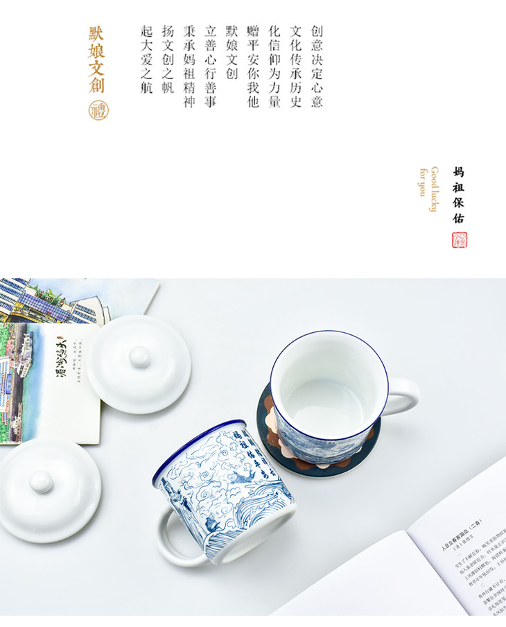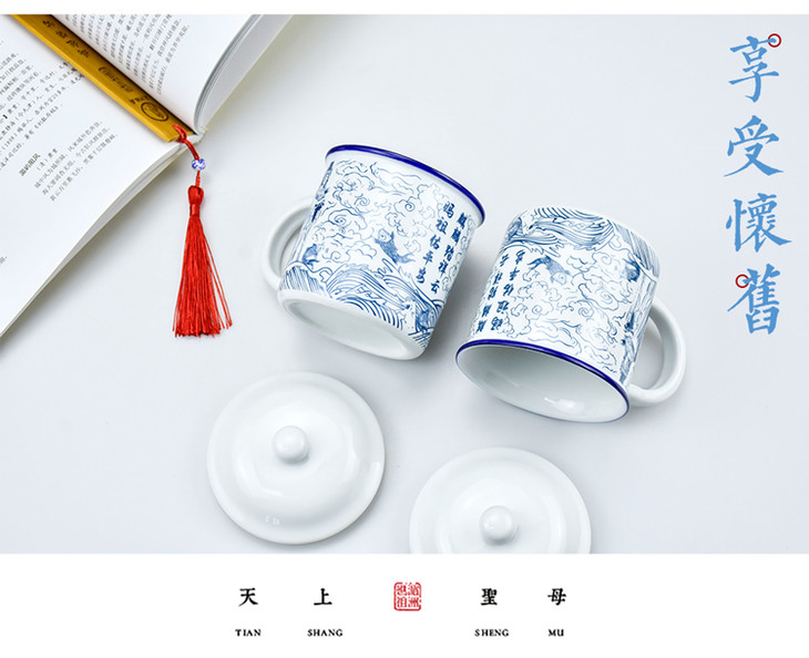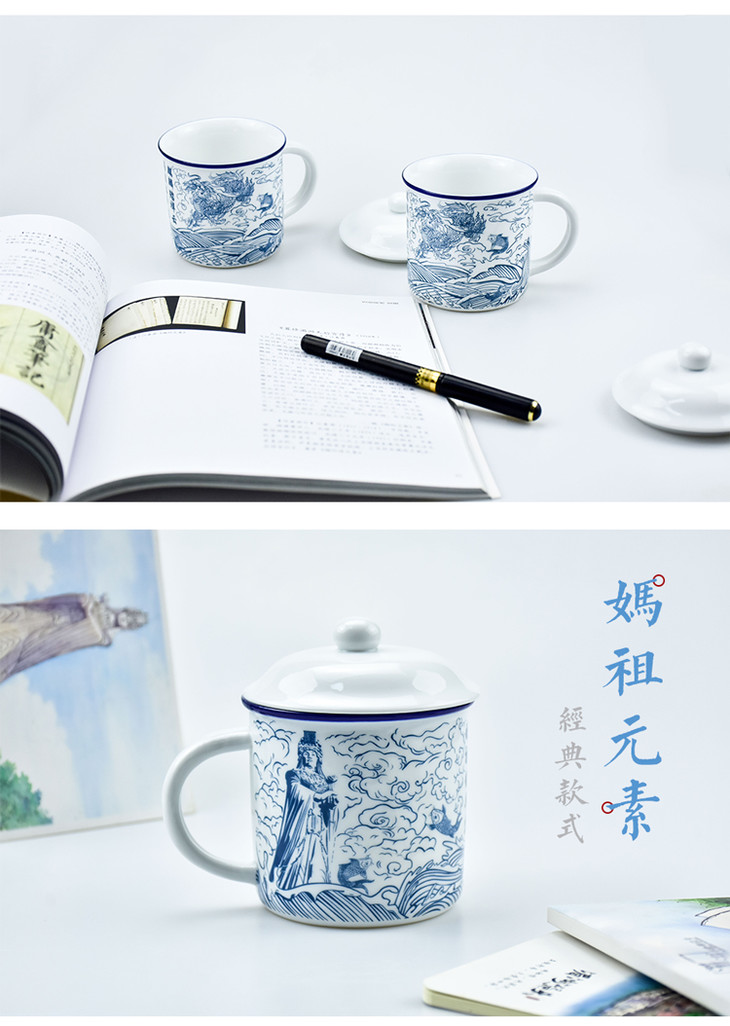 妈祖文创国潮创意陶瓷带盖会议礼品仿搪瓷杯