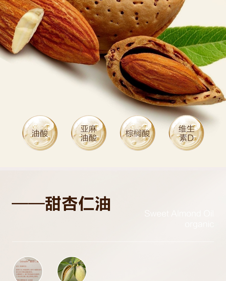 德国O家甜杏仁油 面部 身体按摩油 基础油精华油 稀释精油