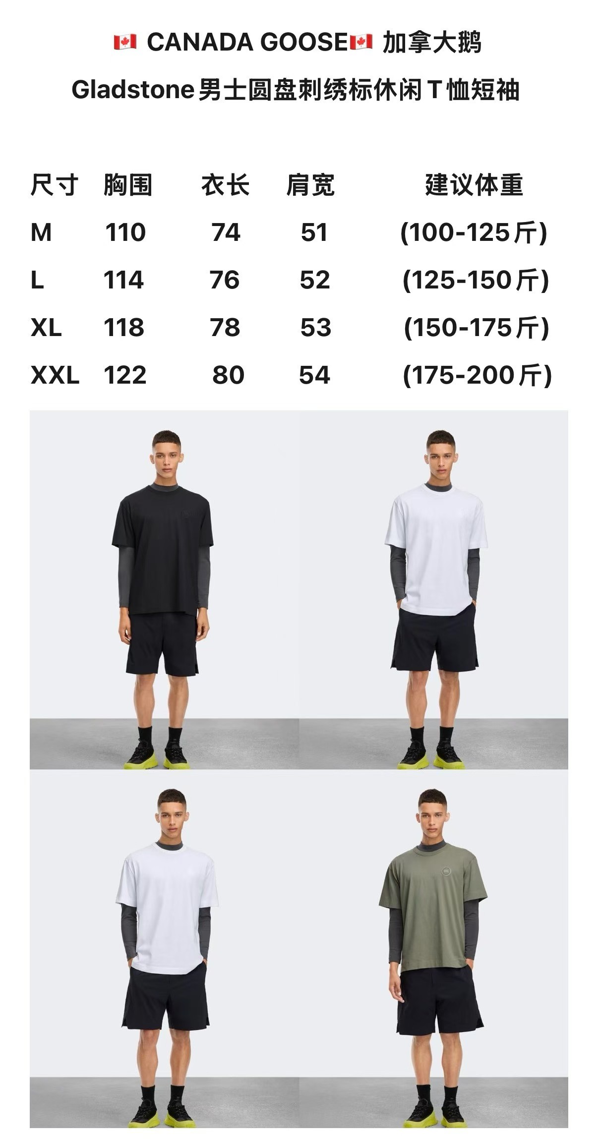 2026春夏新品CANADA GOOSE加拿大鹅 Gladstone男士圆盘刺绣标休闲T恤短袖