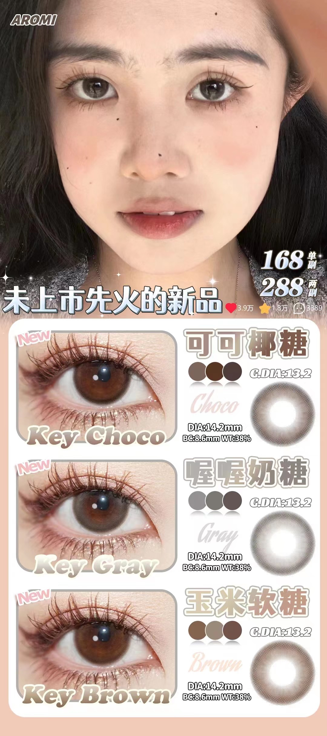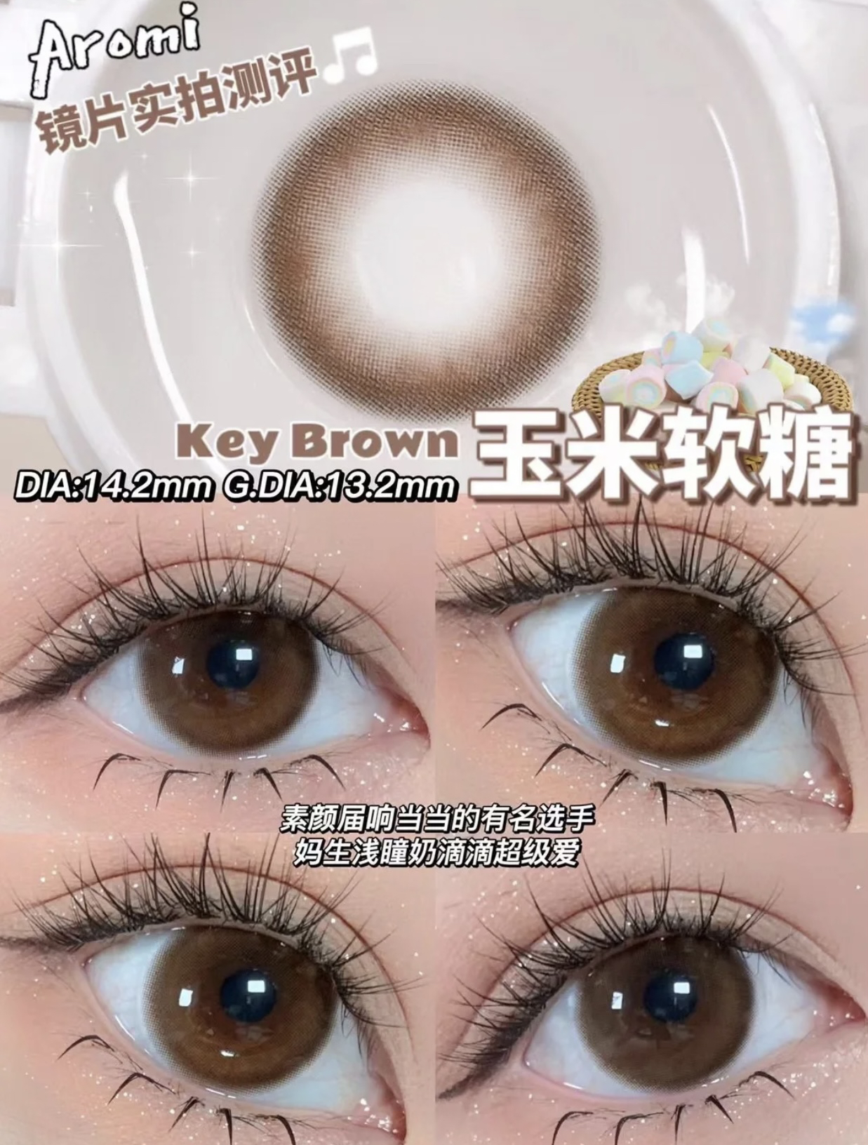 Aromi·年抛 小红书点赞破W 无痕水光瞳 可可椰糖/喔喔奶糖/玉米软糖 染色13.2mm/备注双眼度数