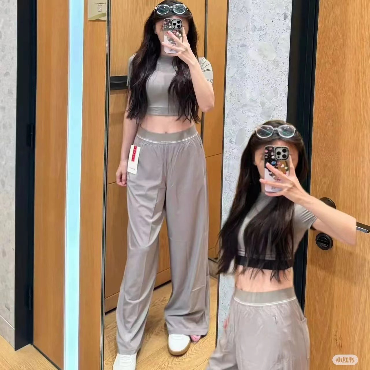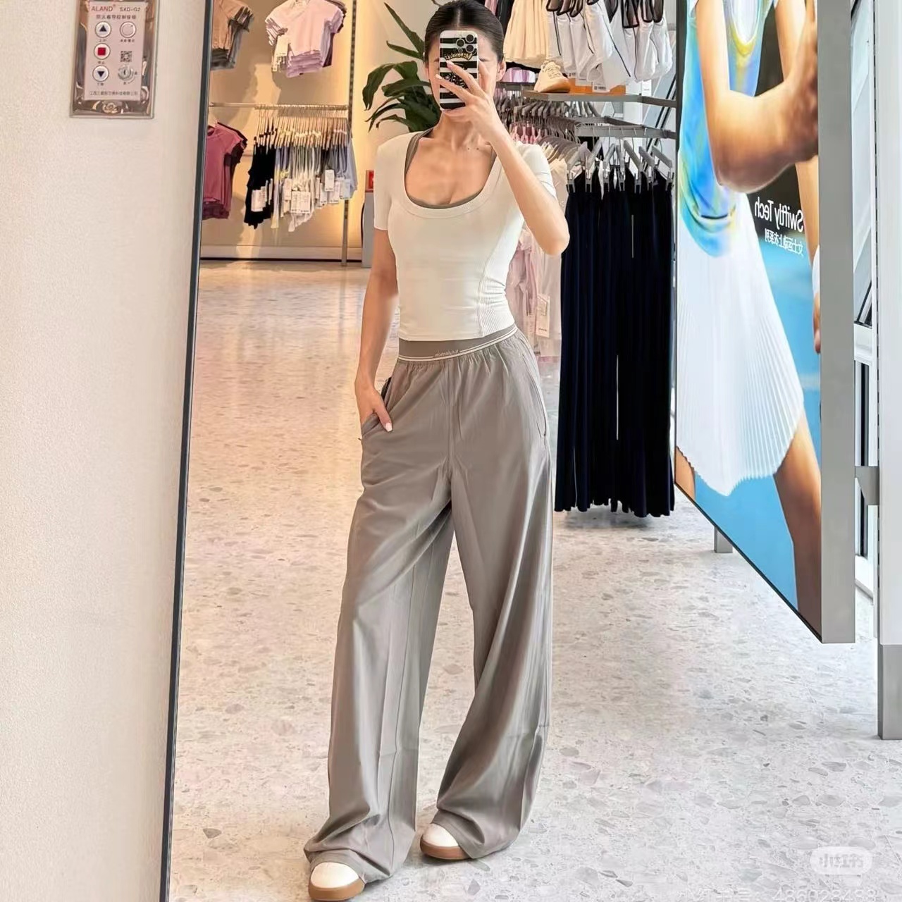 新晋“神裤”驾到!专为追求舒适与型格的女生打造。 轻盈科技:采用高性能尼龙混纺,触感丝滑,自带垂坠感。单裤仅约 225g,穿着无负担,且具备出色的抗皱与速干能力,旅行塞箱也不怕。四面弹力让你在瑜伽馆伸展自如,阔腿中腰设计又能秒变出街时髦精,藏肉显瘦一绝。版型友好全长设计搭配宽松裤管,建议按常规尺码(如 S/M/L)入手,搭配短上衣或塞衣角更显比例. 版型:中腰 + 阔腿直筒!面料:科技面料 尼龙 +氨纶!特性:轻量化(单条约 225g)、双/四向弹力、垂坠感强、抗皱易打理!长度:全长设计,裤脚到脚踝或鞋面(参考 165cm 身高穿平底鞋不拖地)