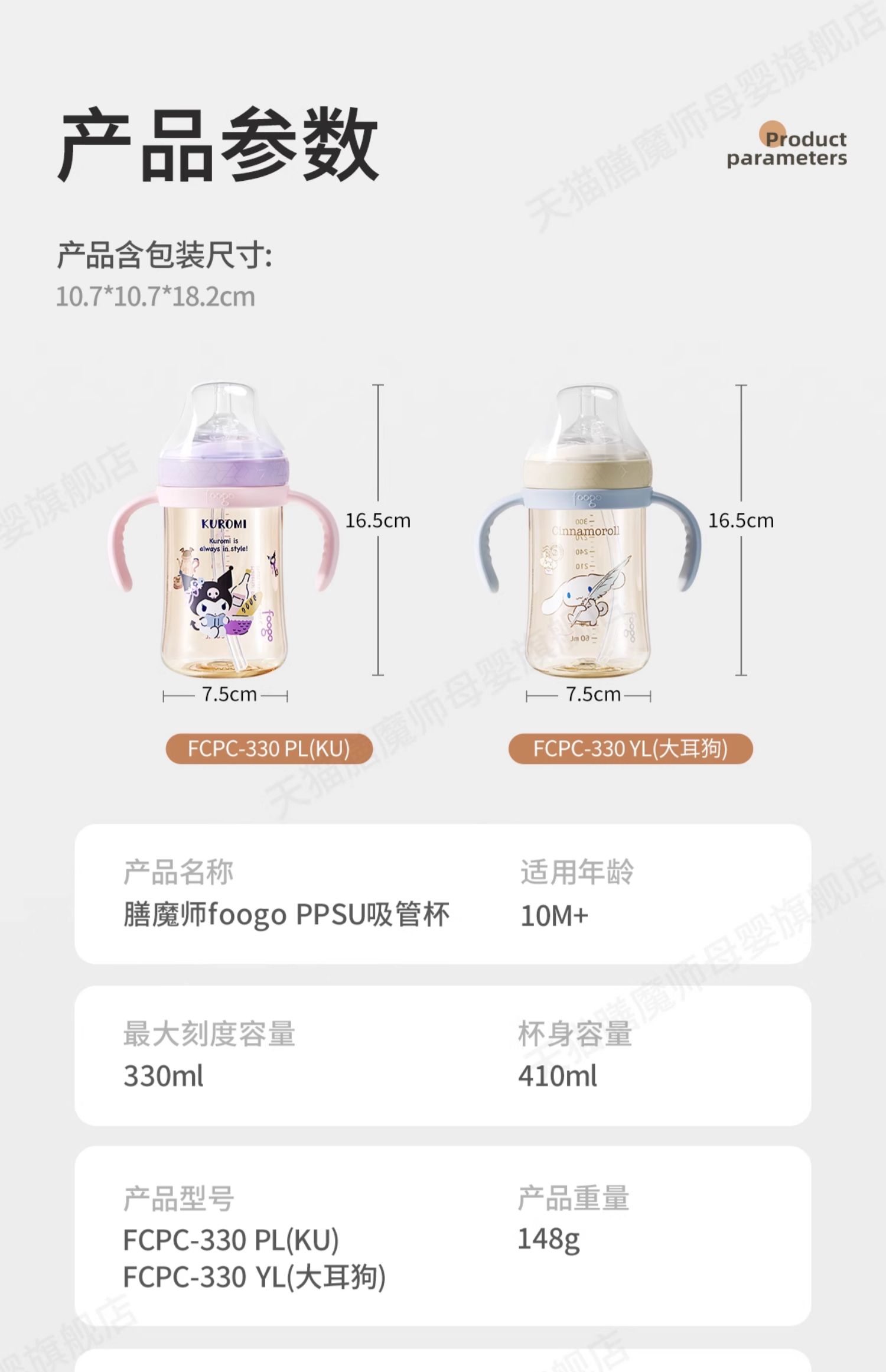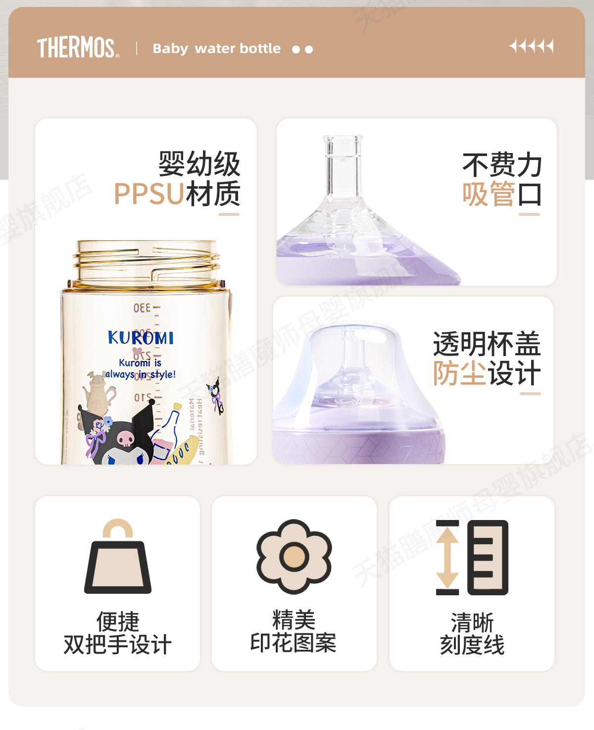 9楼母婴生活馆 膳魔师foogo系列学饮杯三丽鸥巧虎联名PPSU材质婴幼儿童双把手吸管水杯330mL 吊牌价:218元 活动价:158元