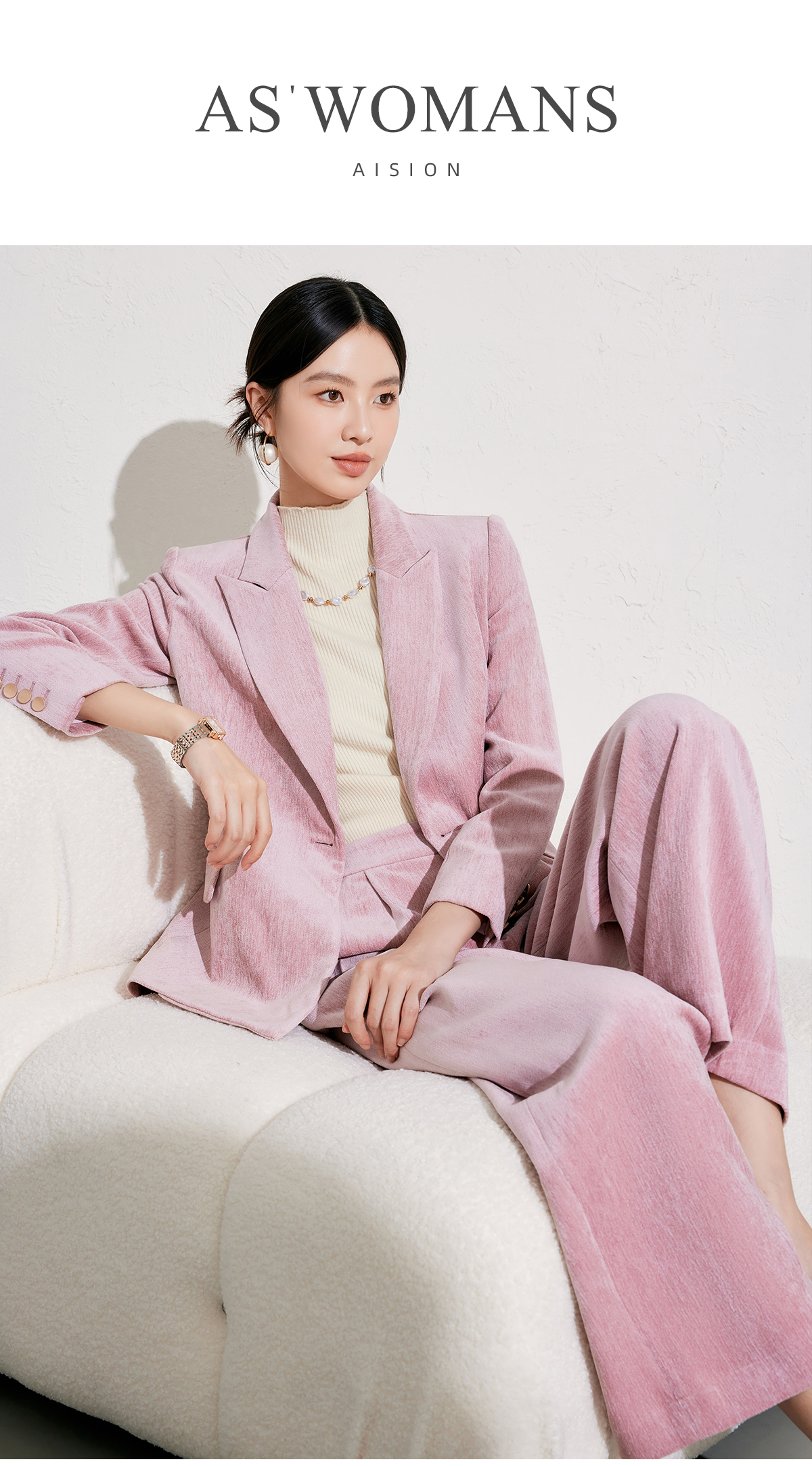 艾尚臣职业西装裤女2024冬新款加厚丝绒裤子通勤正装裤宽松直筒裤