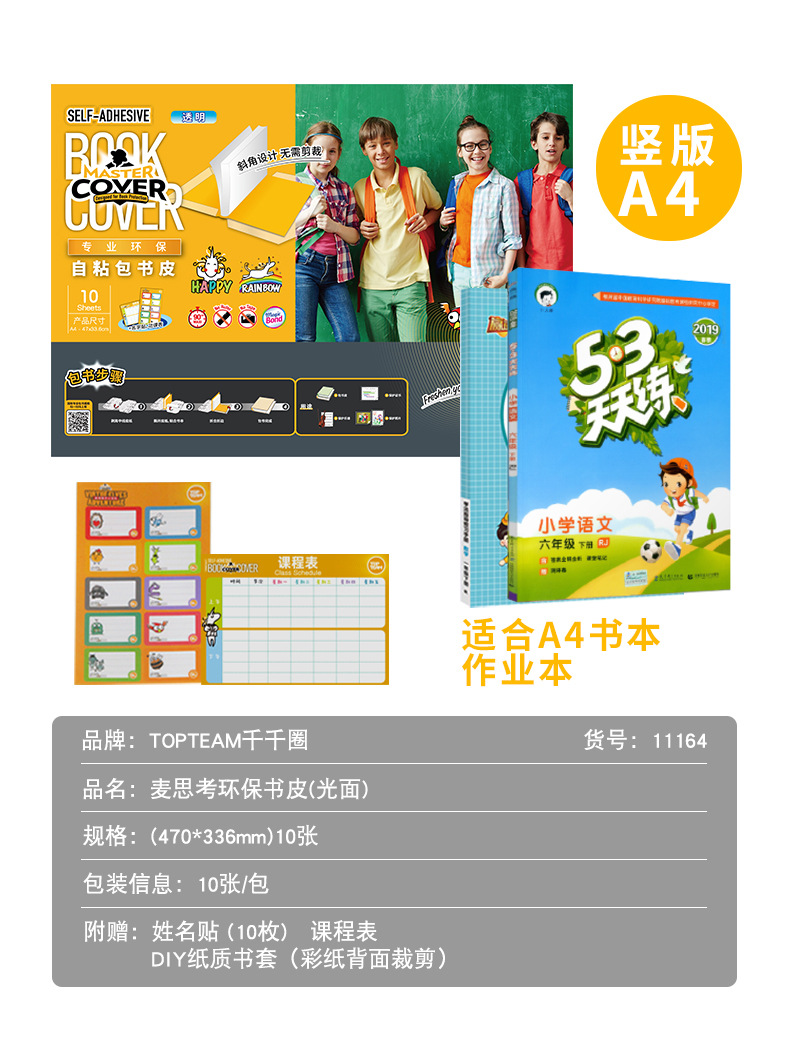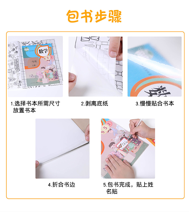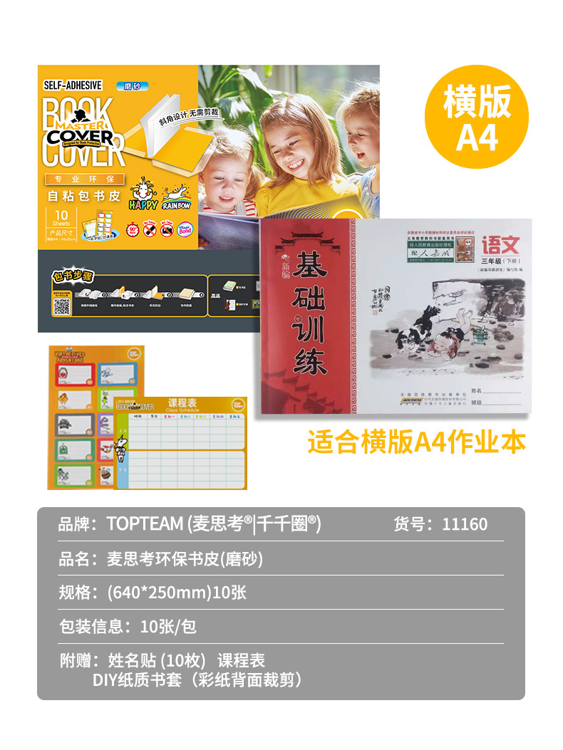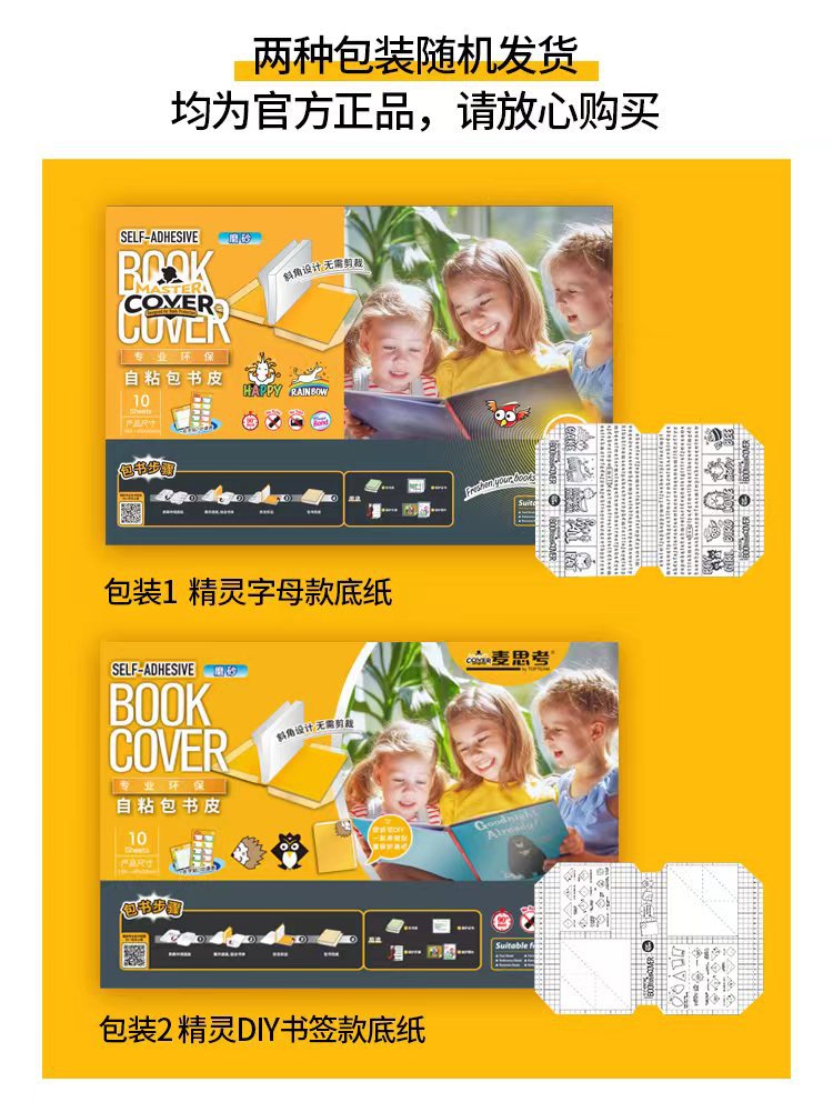 麦思考创意自粘性包书皮一体书皮10张防水小学生透明磨砂书皮