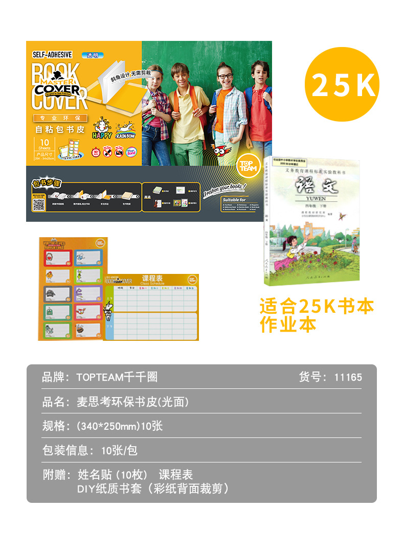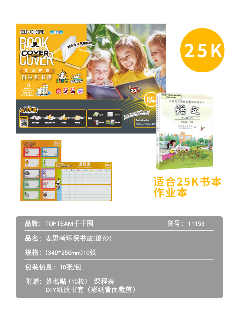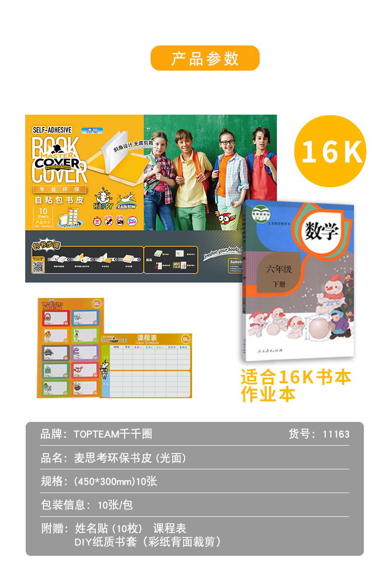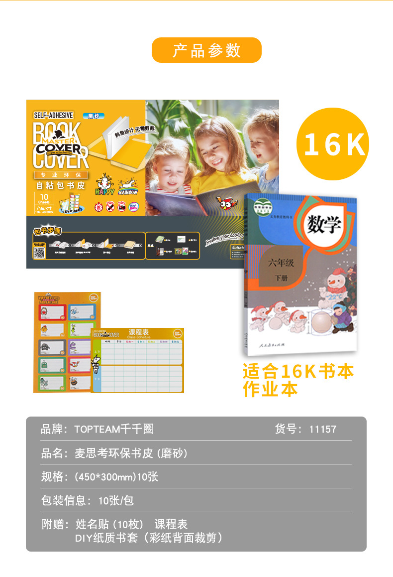 麦思考创意自粘性包书皮一体书皮10张防水小学生透明磨砂书皮