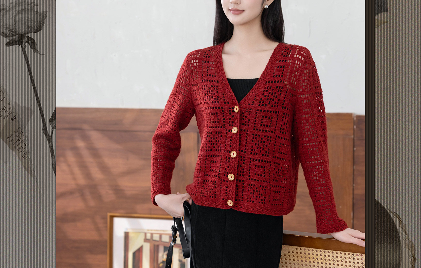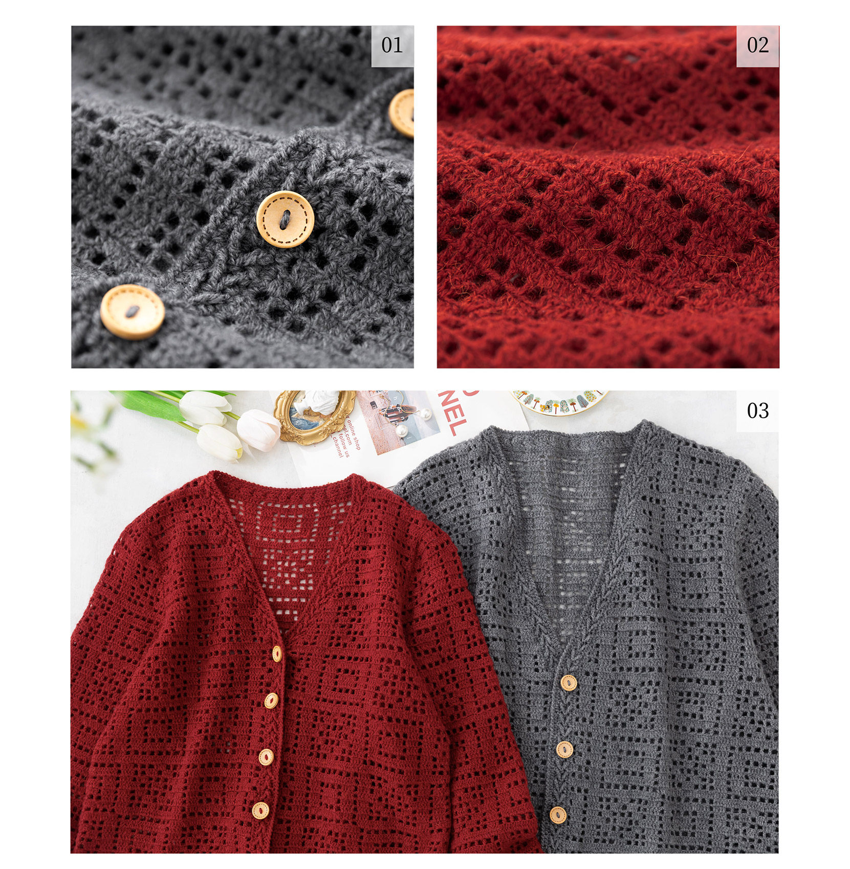 苏苏姐家方正V领开衫手工diy钩针编织外套上衣毛线团材料包