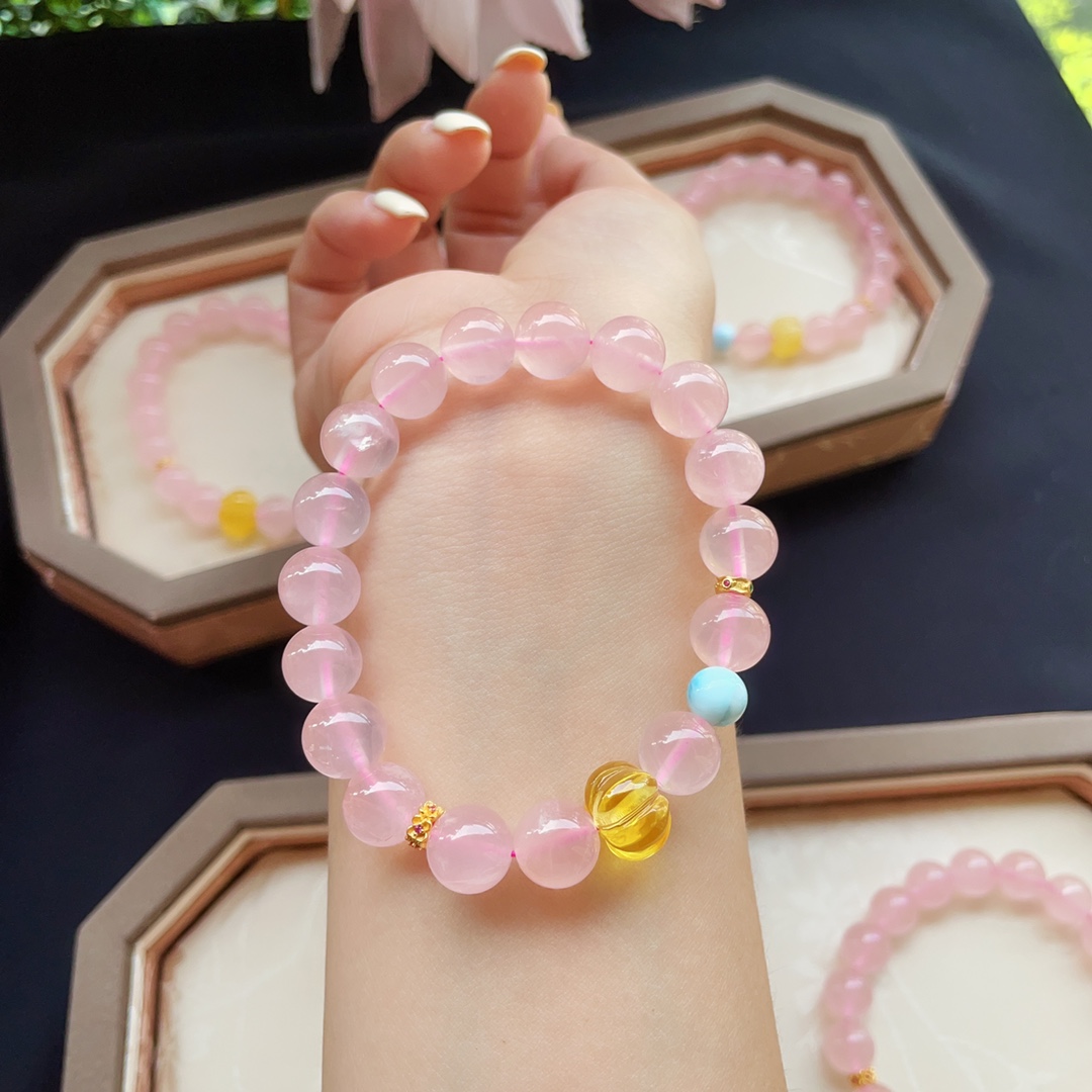 天然马达加斯加粉晶单圈,层色美美哒,性价比超高,实物更美,珠子约:10mm,搭配纯天然蜜蜡配饰,纯天然配饰!