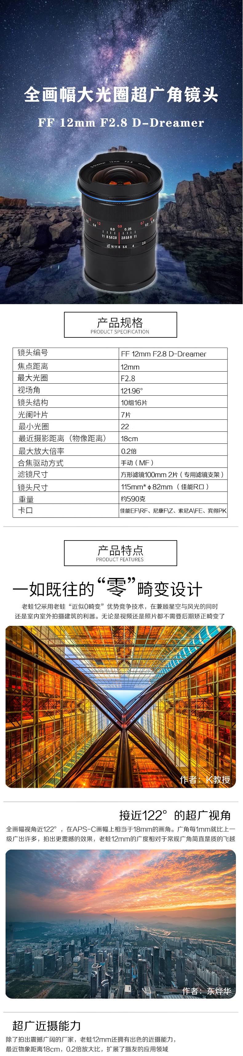 老蛙 FF 12mm F2.8 D-Dreamer 佳能RF、尼康Z口超广角镜头