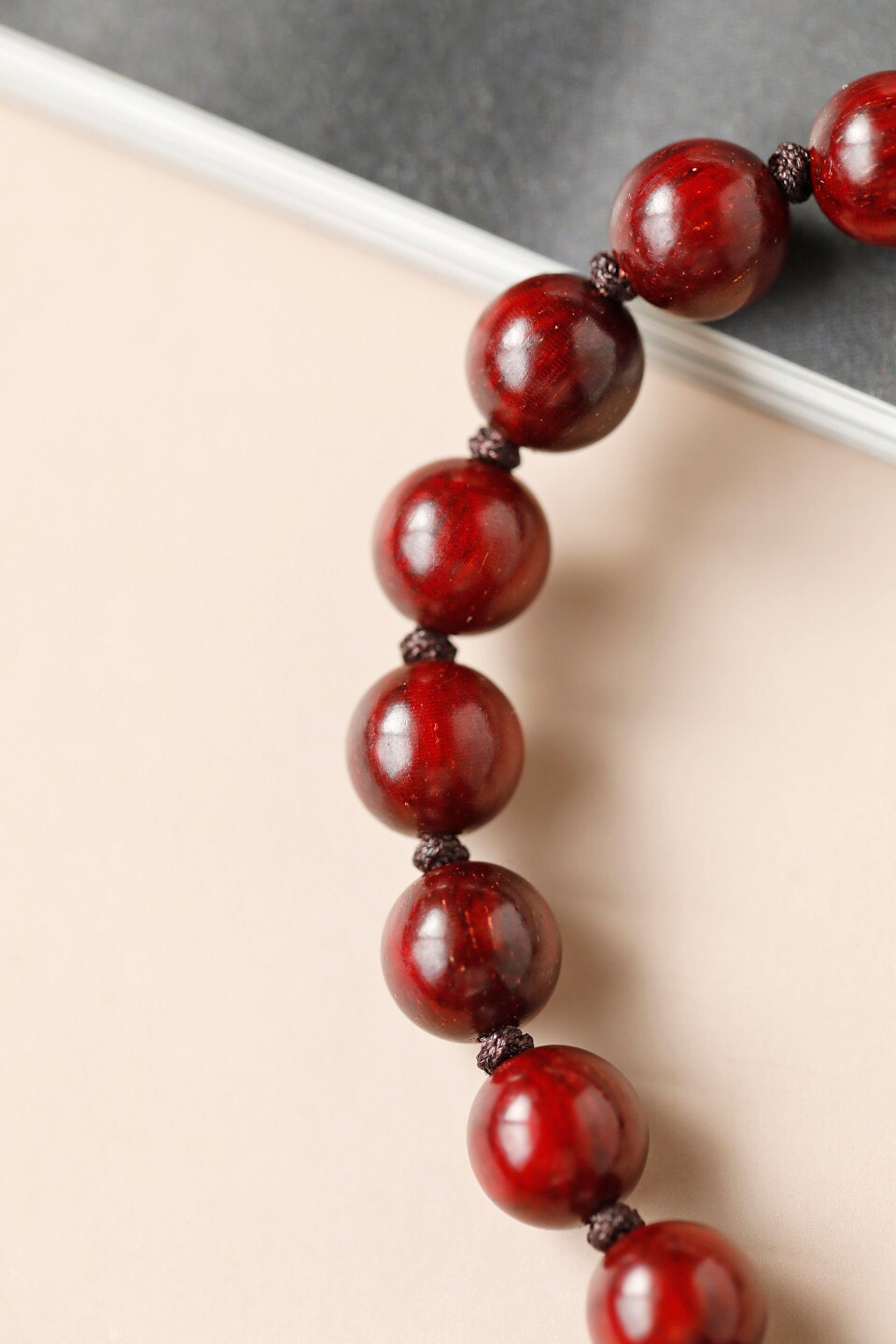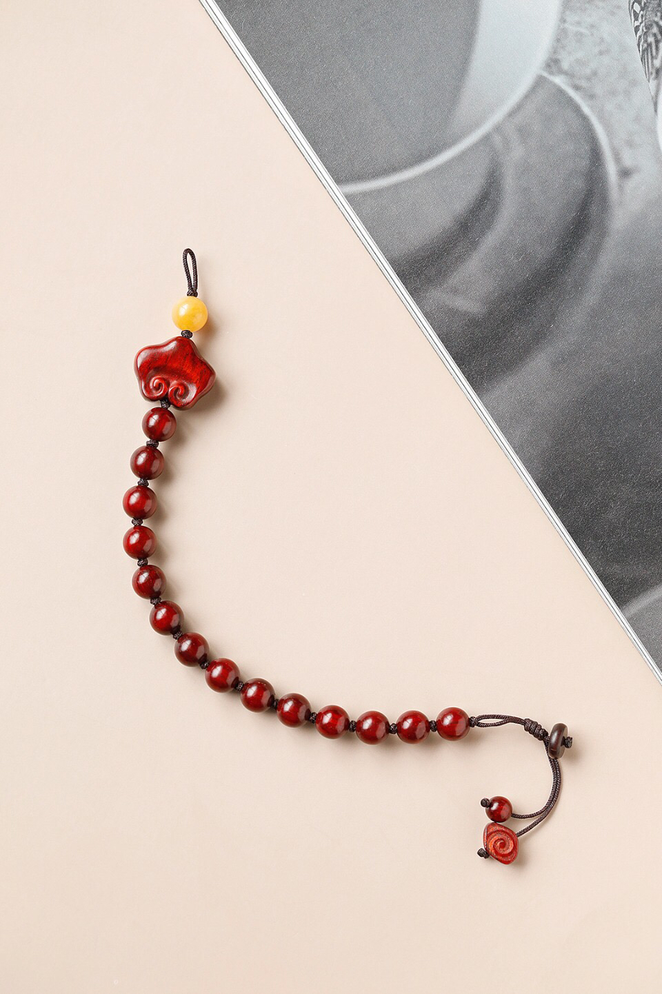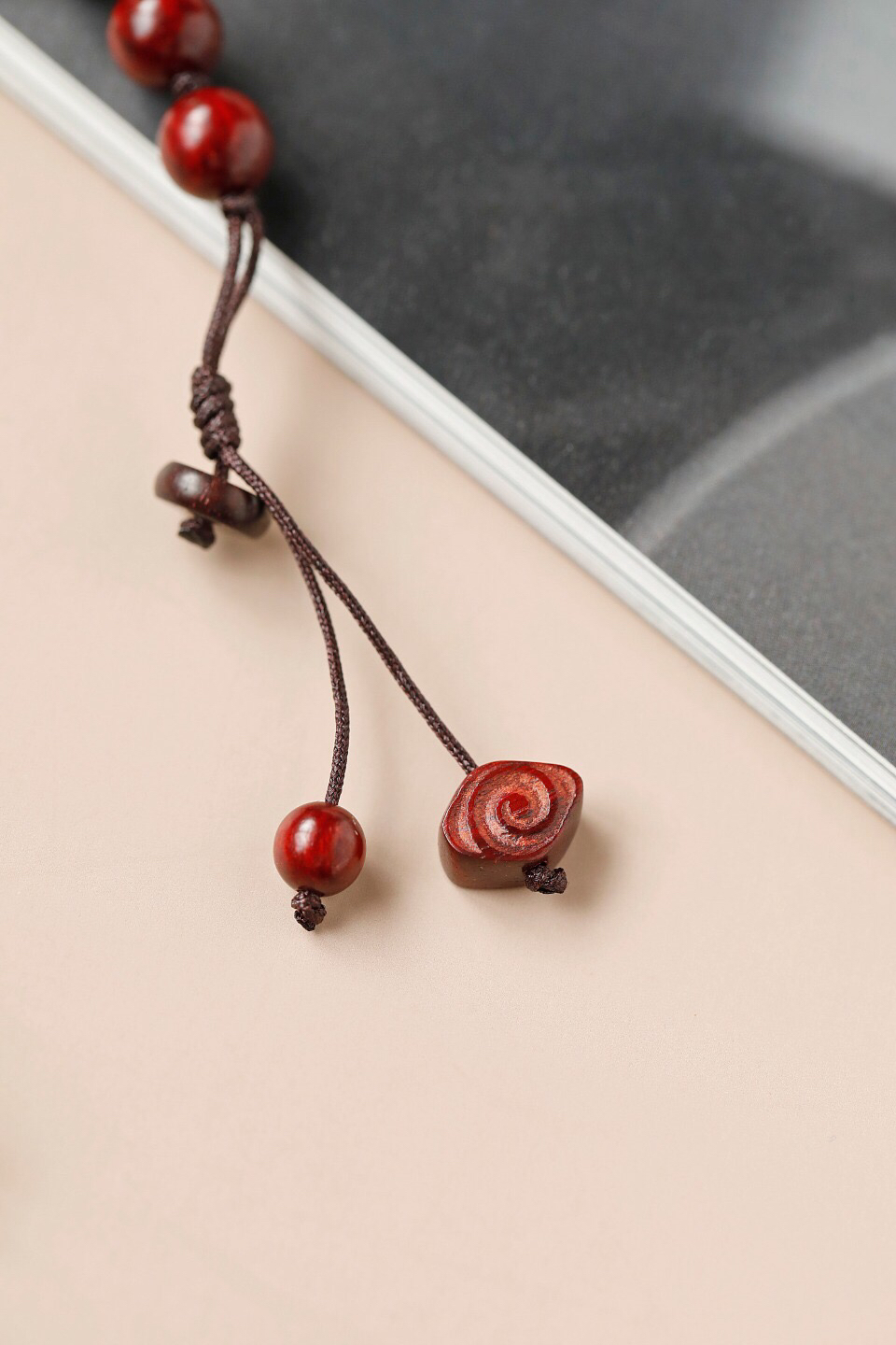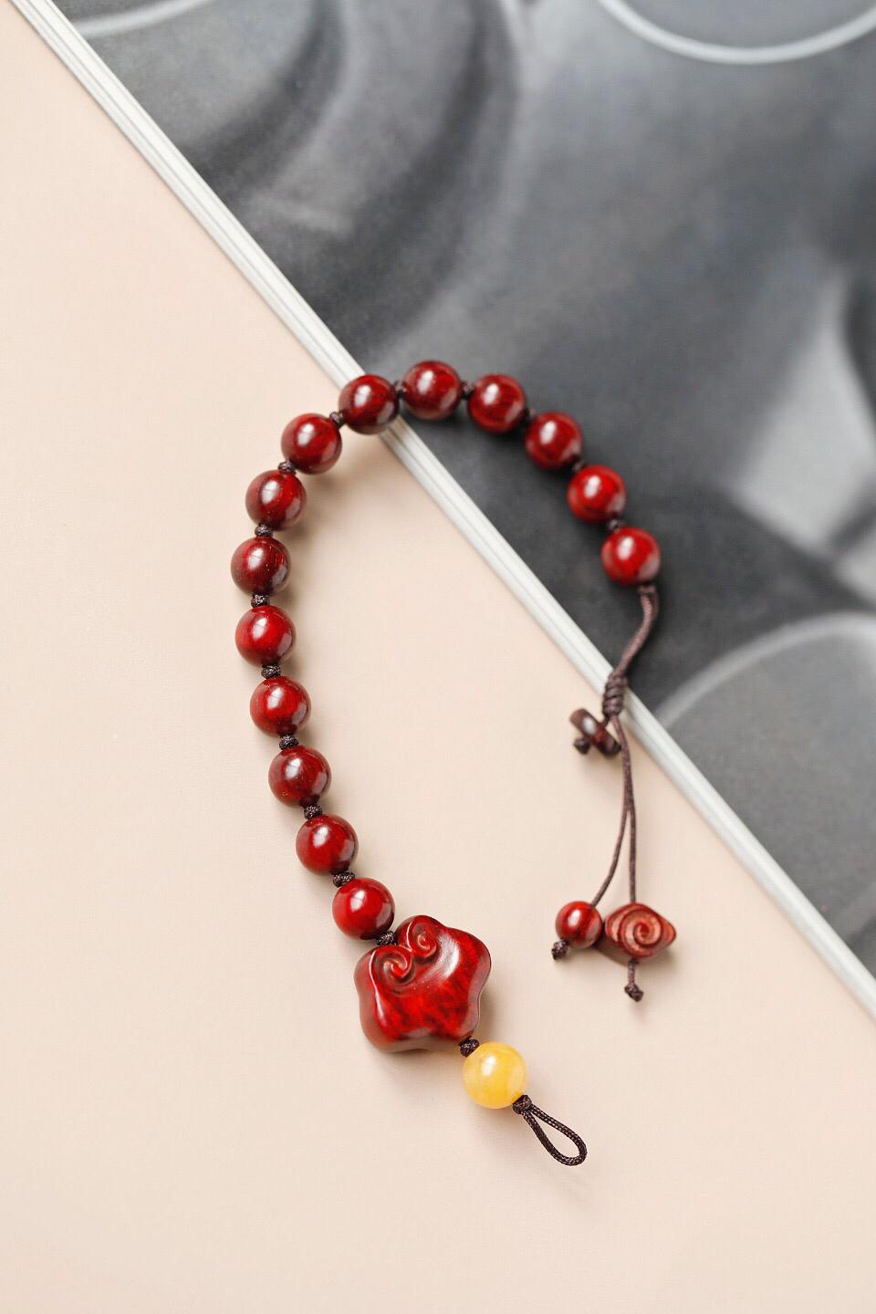这一款宝贝走的是非常清新的道路,精选优质的紫檀料制作而成,油性好,颜色红润,搭配不同形状的装饰物,寓意着吉祥如意,美不胜收。宝贝典雅大气,日常佩戴很有特色,特别适合送给心爱之人,喜欢就赶快入手吧!