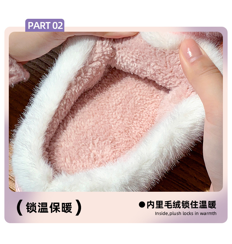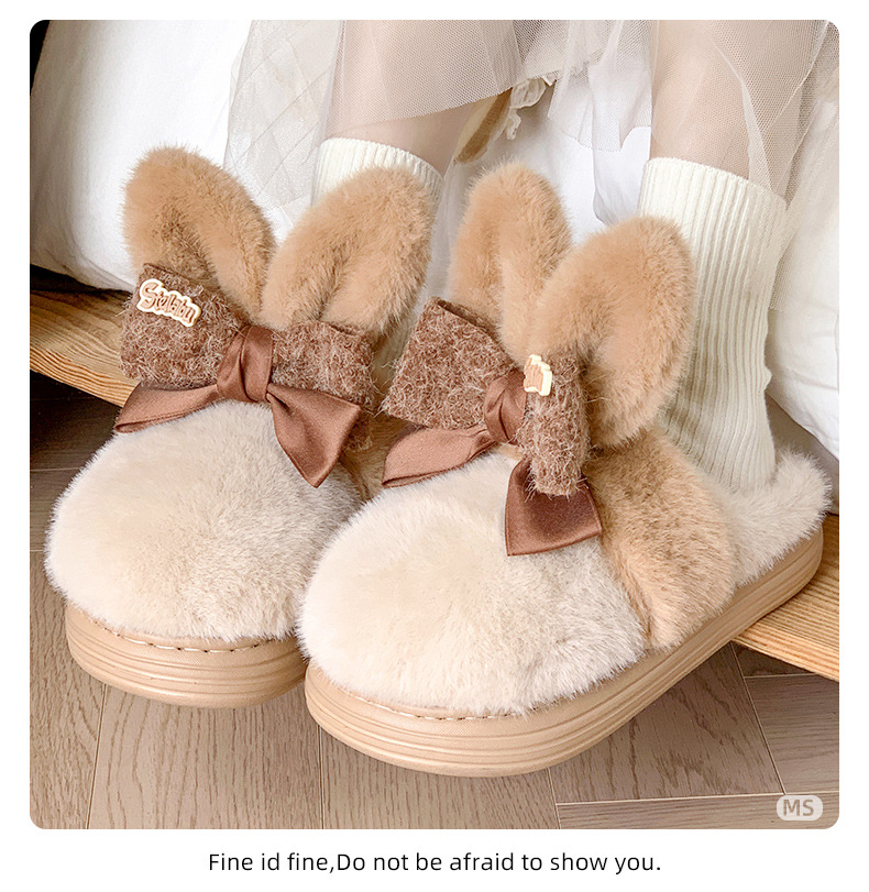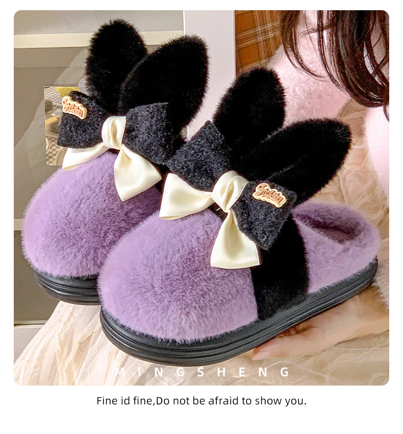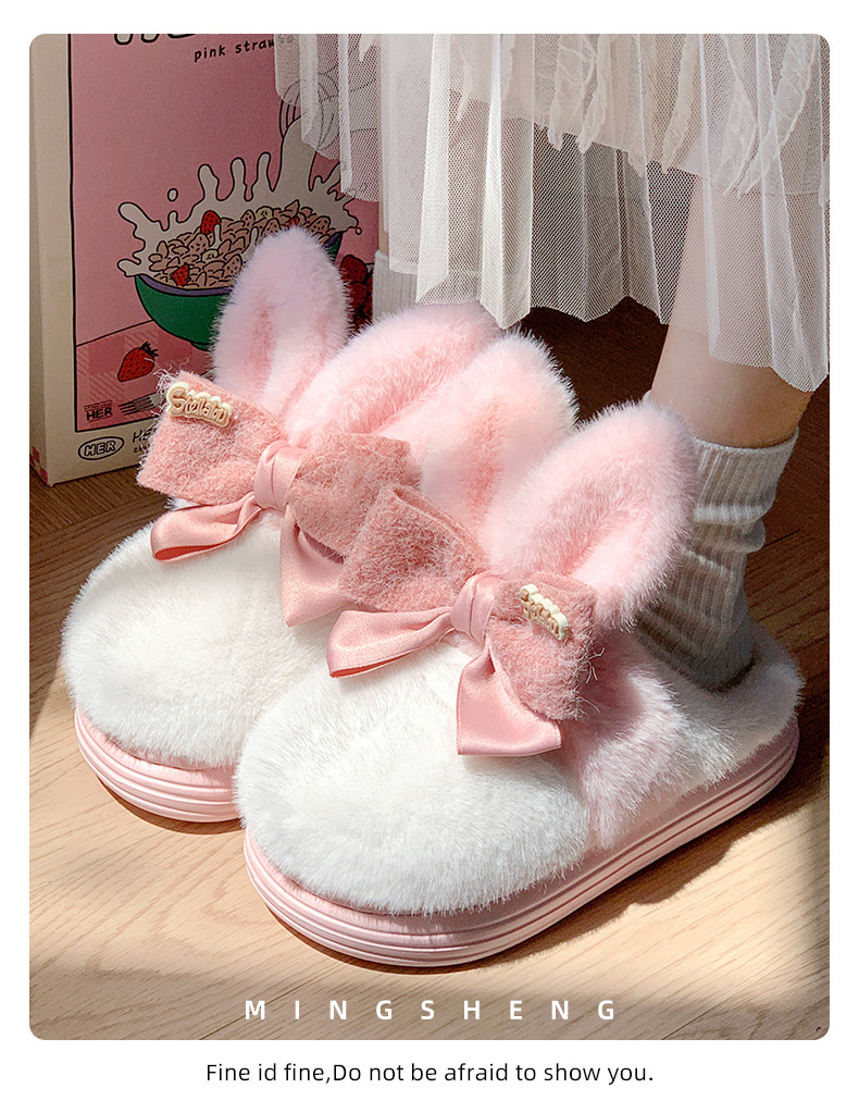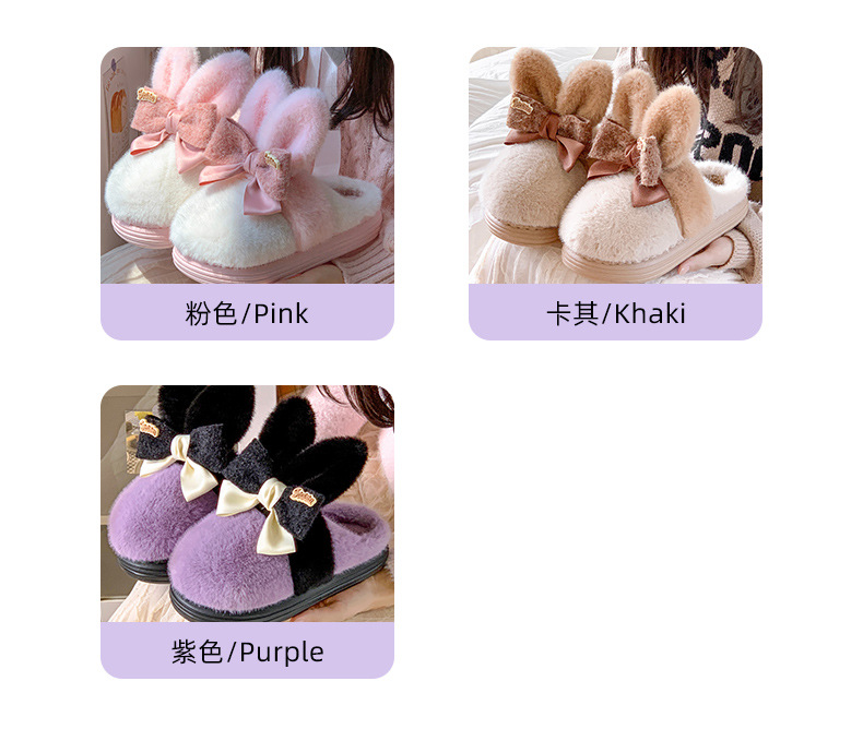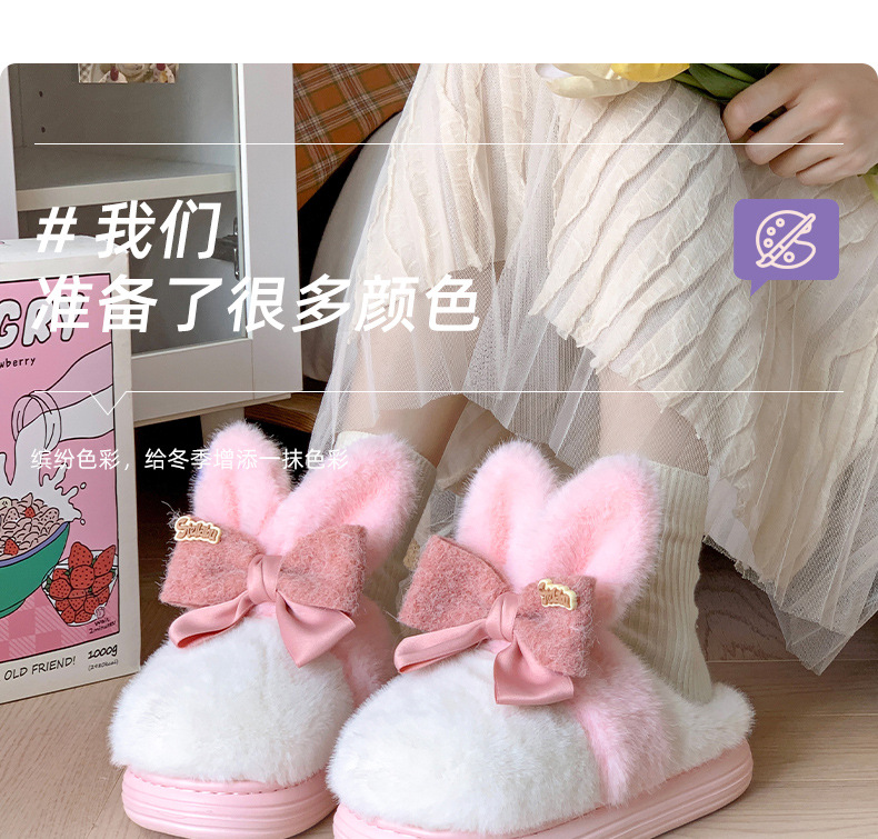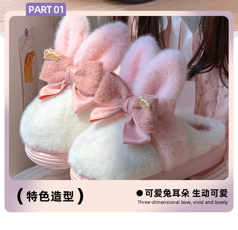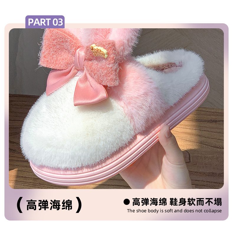 【满足你冬天肆意行走的需求】新款可爱兔耳朵蝴蝶结棉拖鞋,高弹海绵鞋身软而不塌,冬季室内家居防滑保暖厚底毛毛拖鞋月子鞋QQ