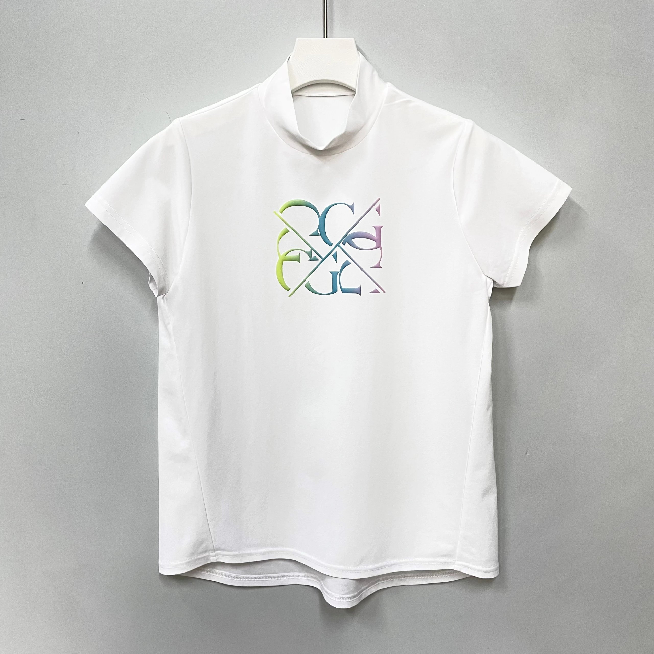 正品保证,领洗标不齐,介意者慎拍! 领口为半高领设计,显得端庄大方。在胸前中央位置,有一个醒目的图案。该图案由字母和线条构成,渐变的颜色,增加了视觉层次感和设计感。面料具有优异的透气性和弹性,吸汗速干。 具体尺寸: S:胸围92cm/衣长64cm/肩宽35cm/袖长14.7cm M:胸围96cm/衣长66cm/肩宽36cm/袖长15cm L:胸围100cm/衣长68cm/肩宽37cm/袖长15.4cm (Tip:尺寸均为手工测量如有1-3cm误差属正常情况)