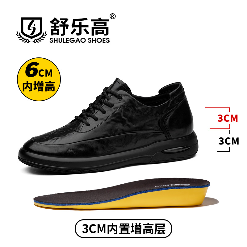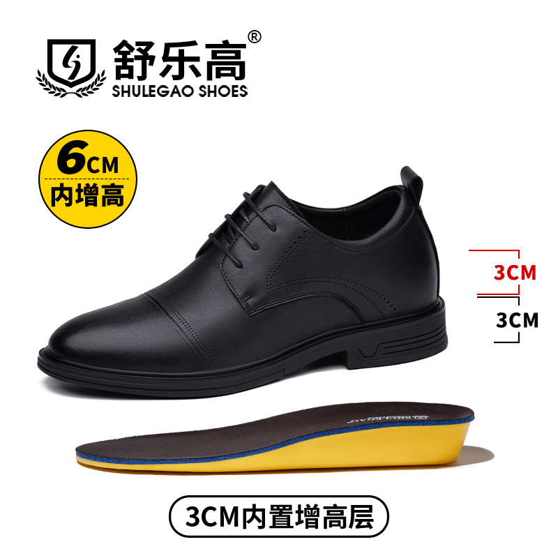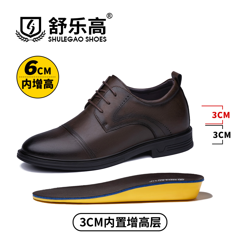 舒乐高清仓皮鞋男款休闲商务皮鞋内增高6/8cm增高皮鞋