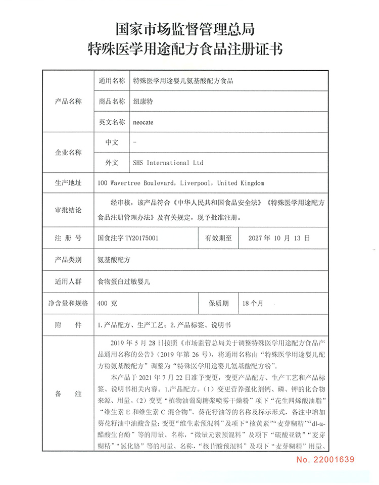 纽康特氨基酸配方食品1段400g(0-12月龄)