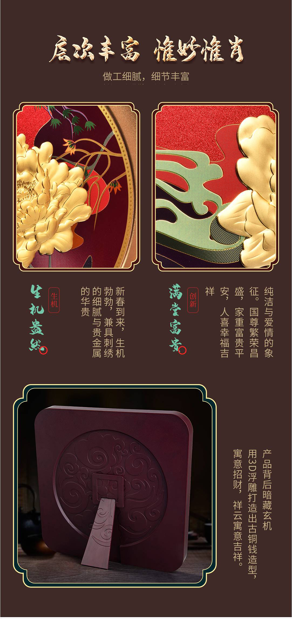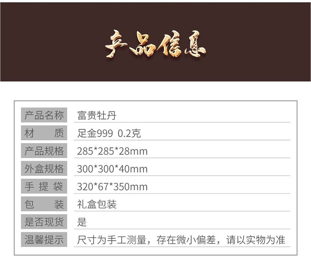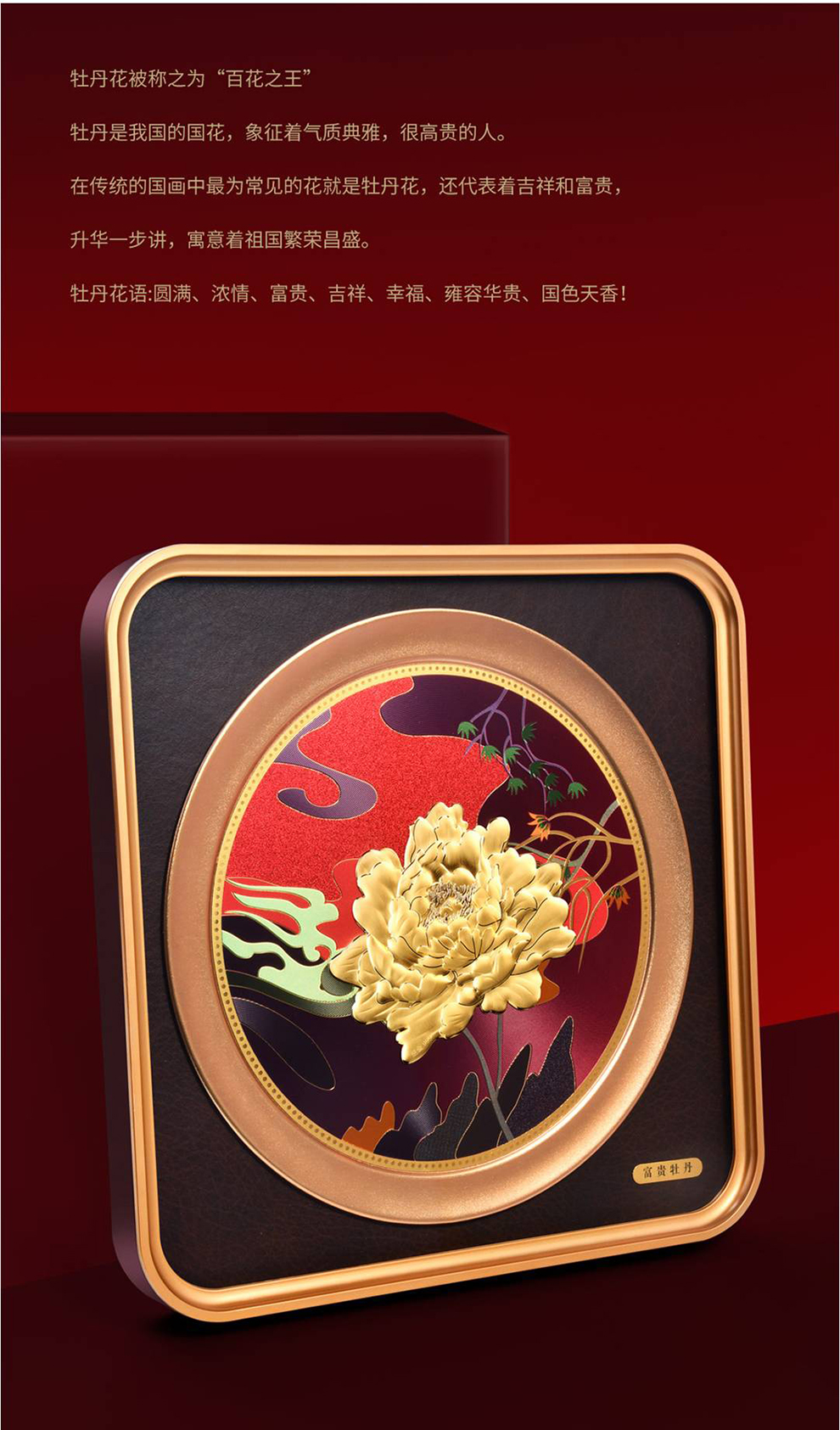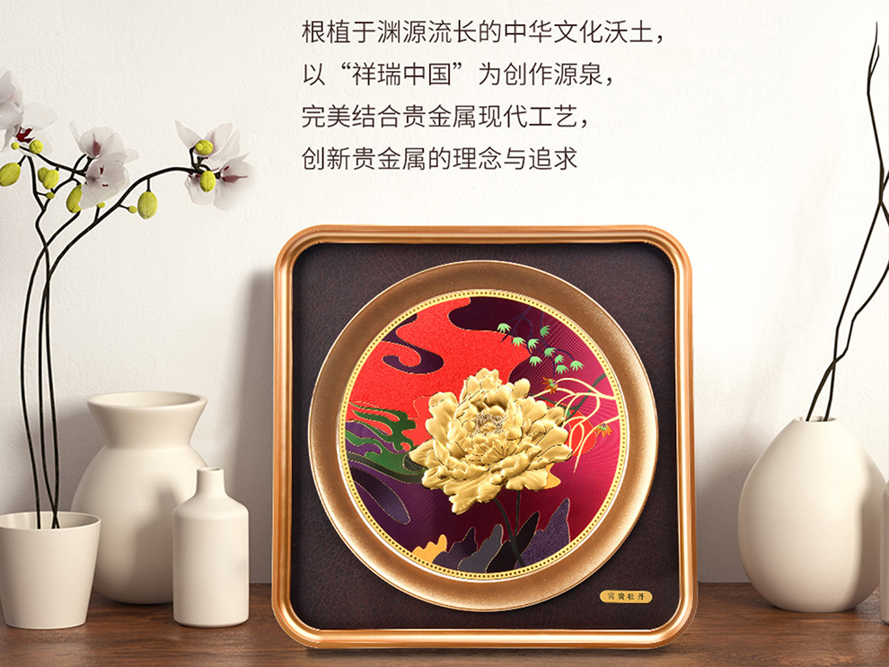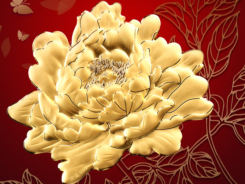 河南中钱 999足金摆件 富贵牡丹 客厅摆件 送礼佳品