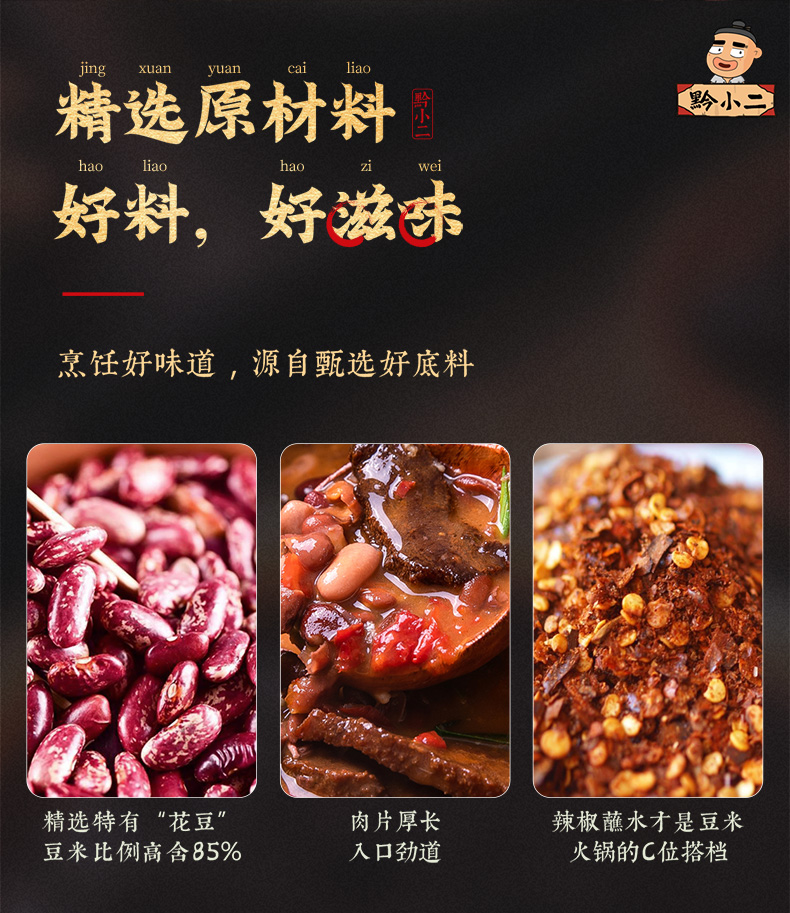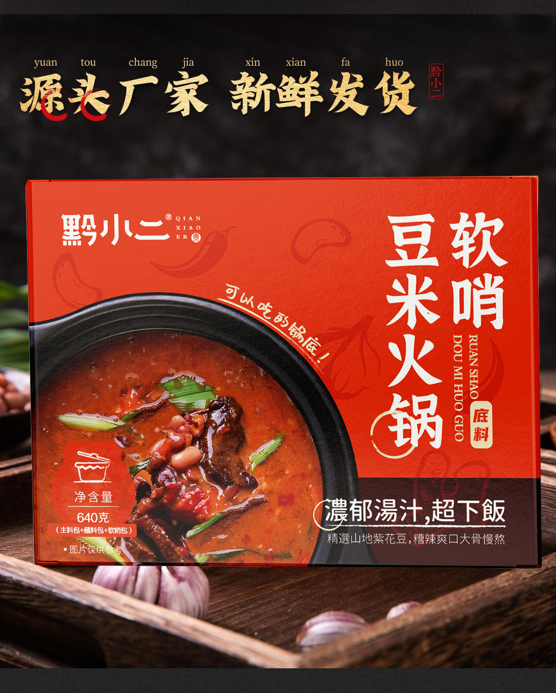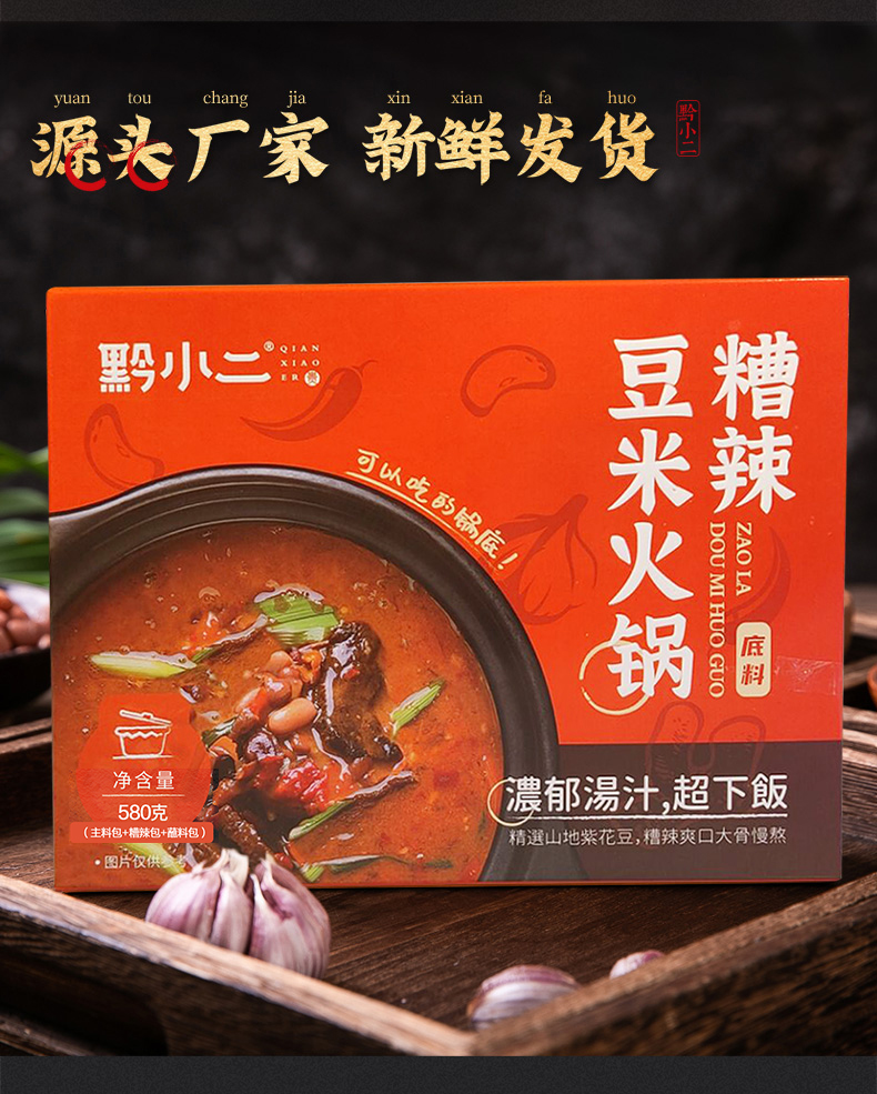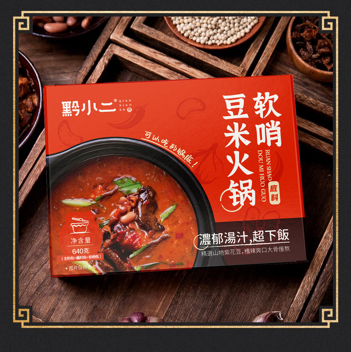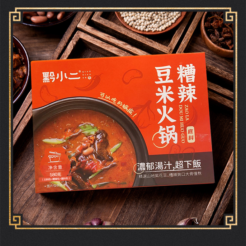 贵州特色黔小二软哨糟辣豆米火锅 豆香浓郁 汤底浓厚 好吃下饭速食便食
