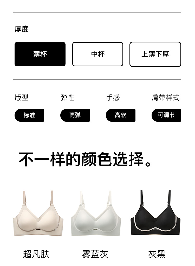 A1-【A-C杯】【全罩杯 包裹聚拢】【固定杯垫】润微肩带可外露时尚内衣文胸 步步星河+花城秘境