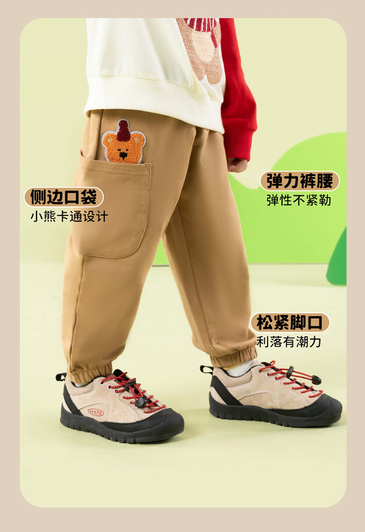 男童裤子2025春季新款纯棉运动萌趣卡通儿童束脚休闲裤子