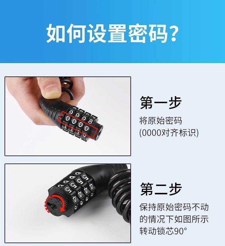 电动车摩托车防盗头盔锁防丢防盗密码锁自行车锁小巧便携钢丝缆锁/个