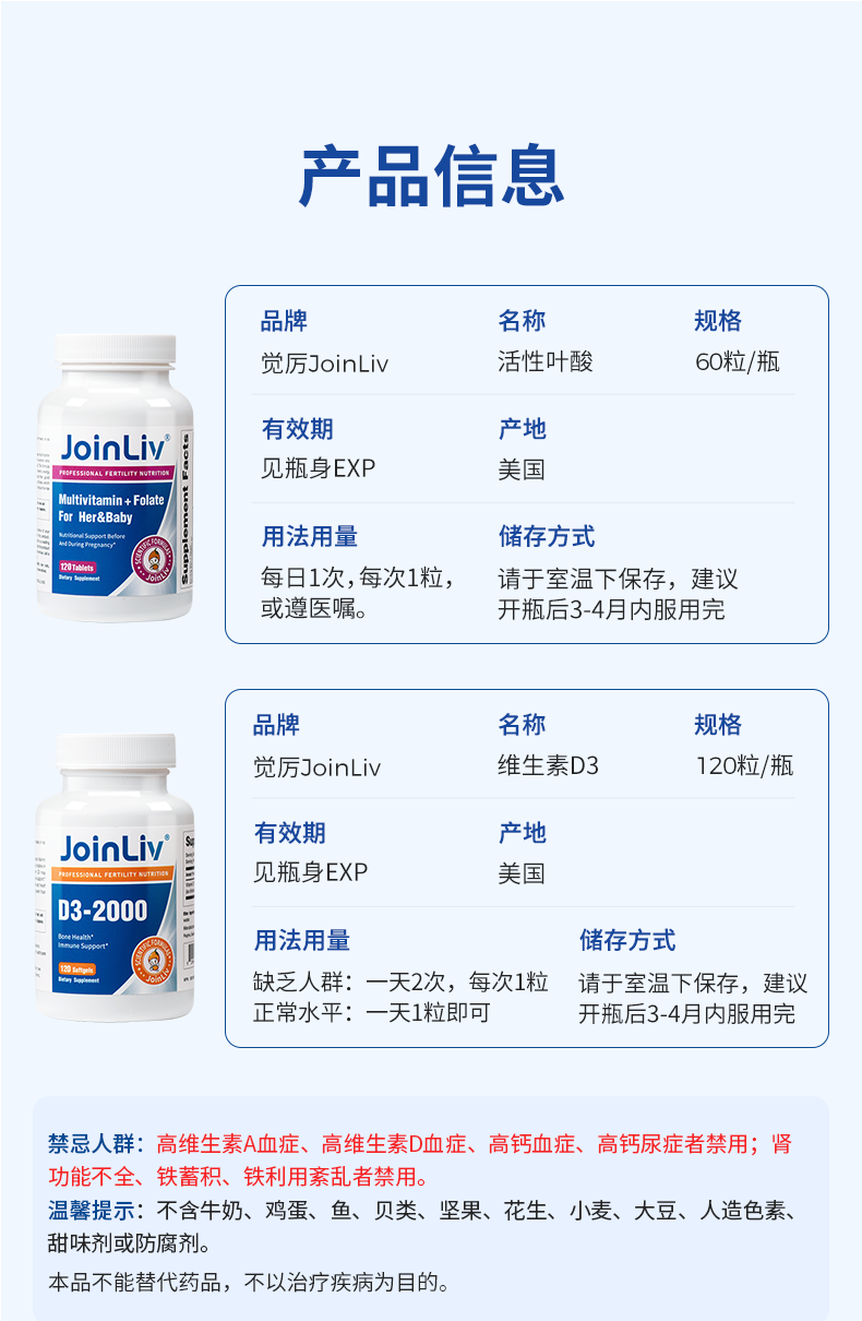 多维活性叶酸+维生素D3 JoinLiv 觉厉