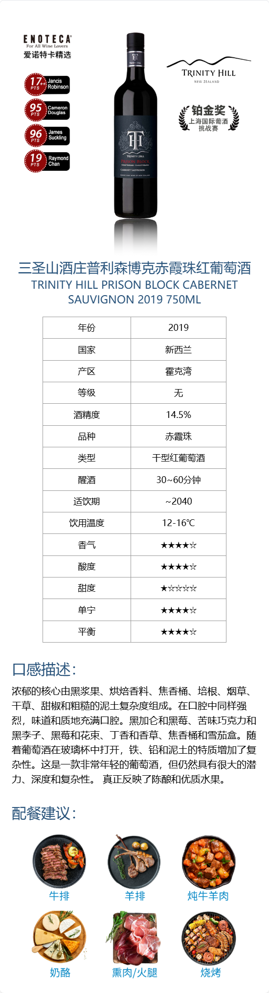 三圣山酒庄普利森博克赤霞珠红葡萄酒 2019 750ml