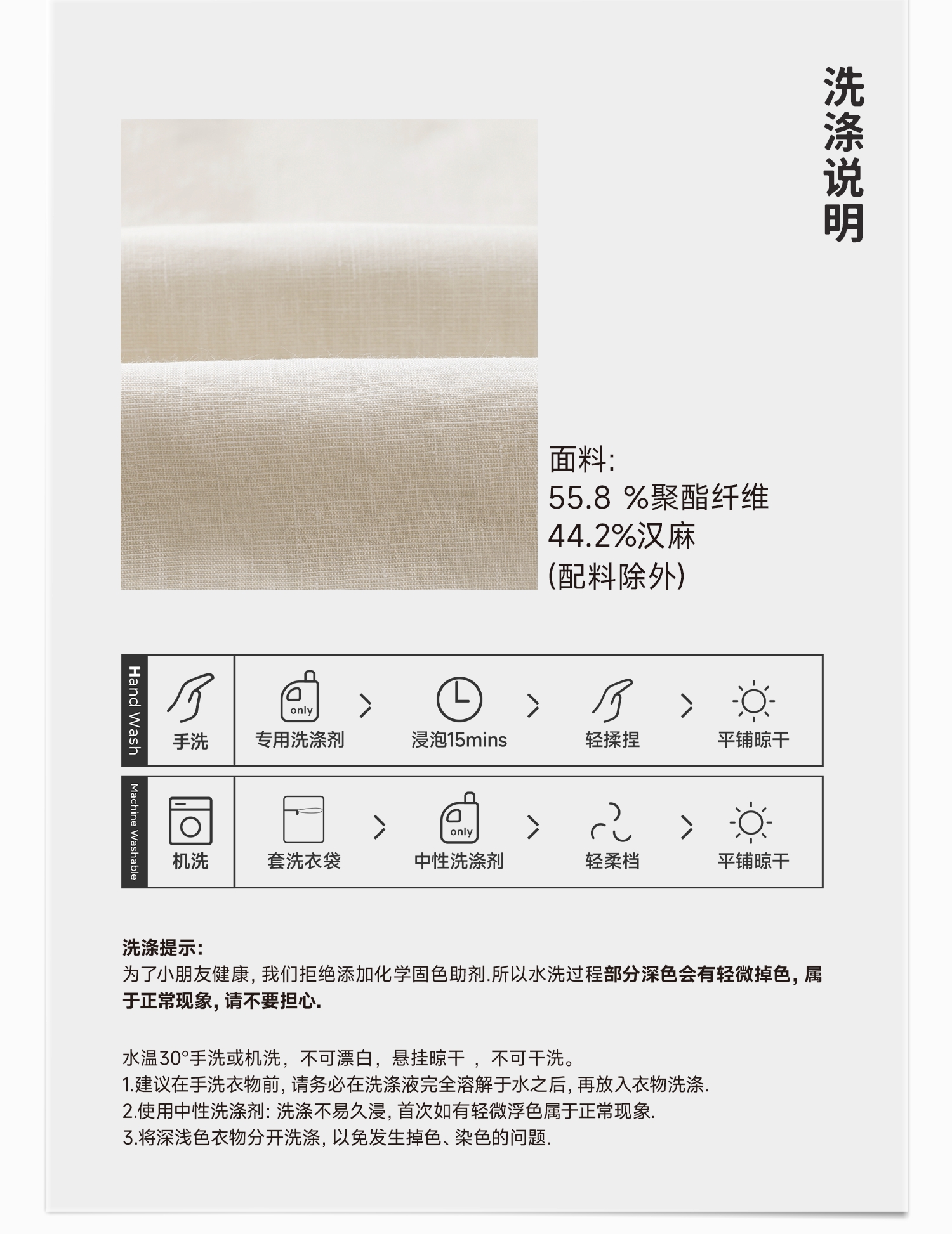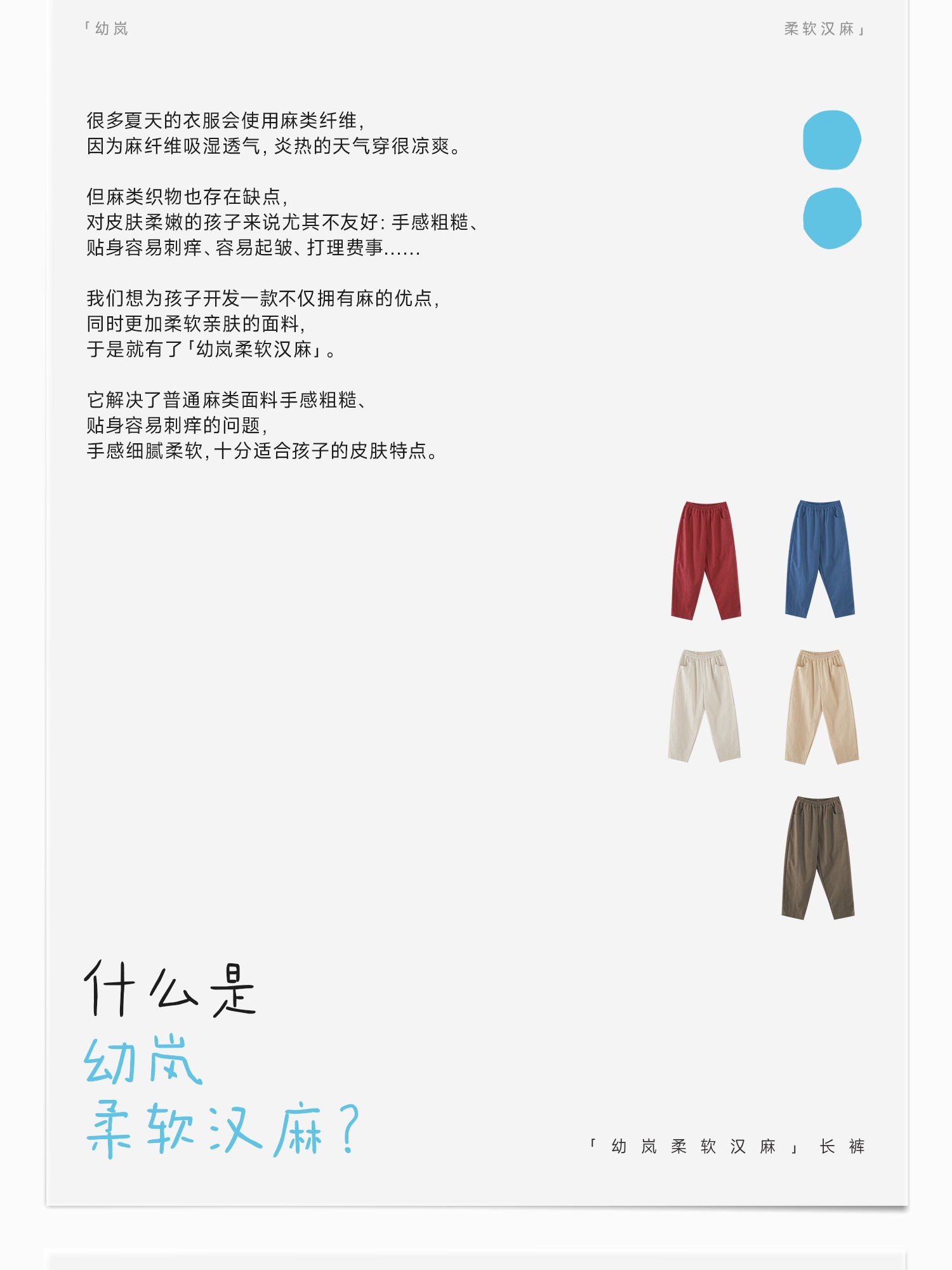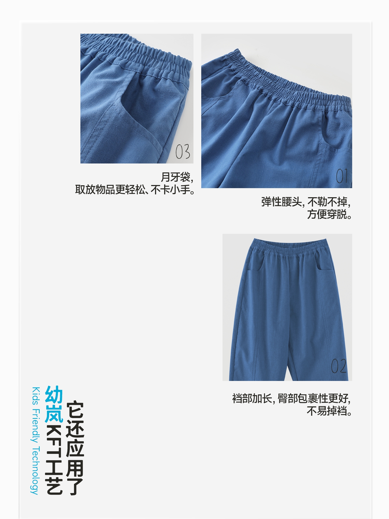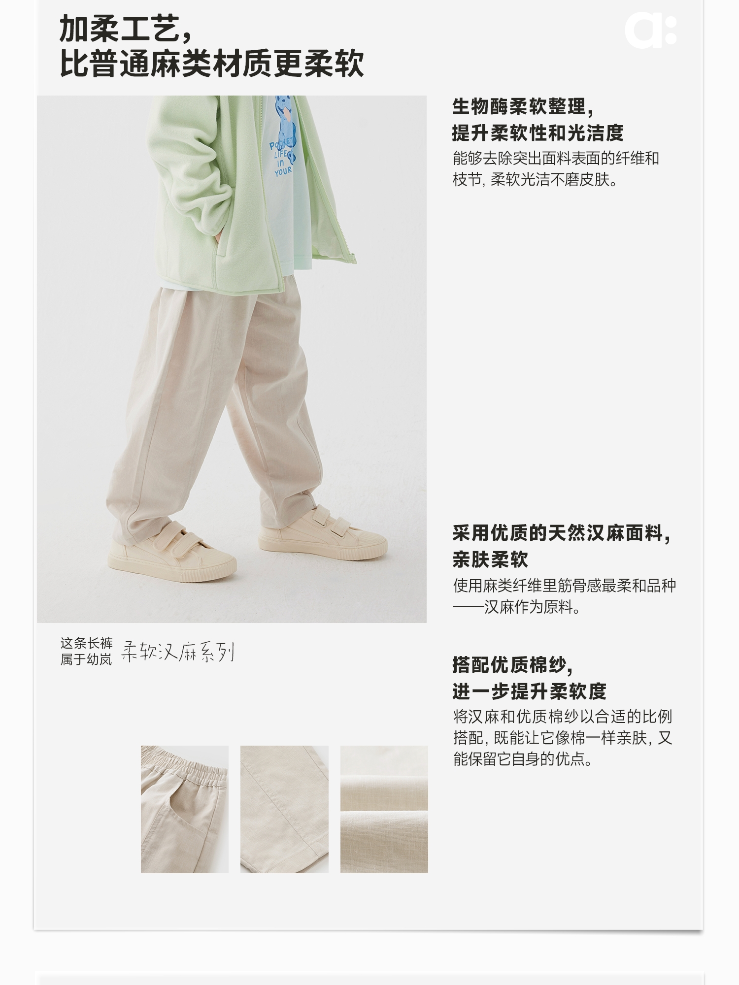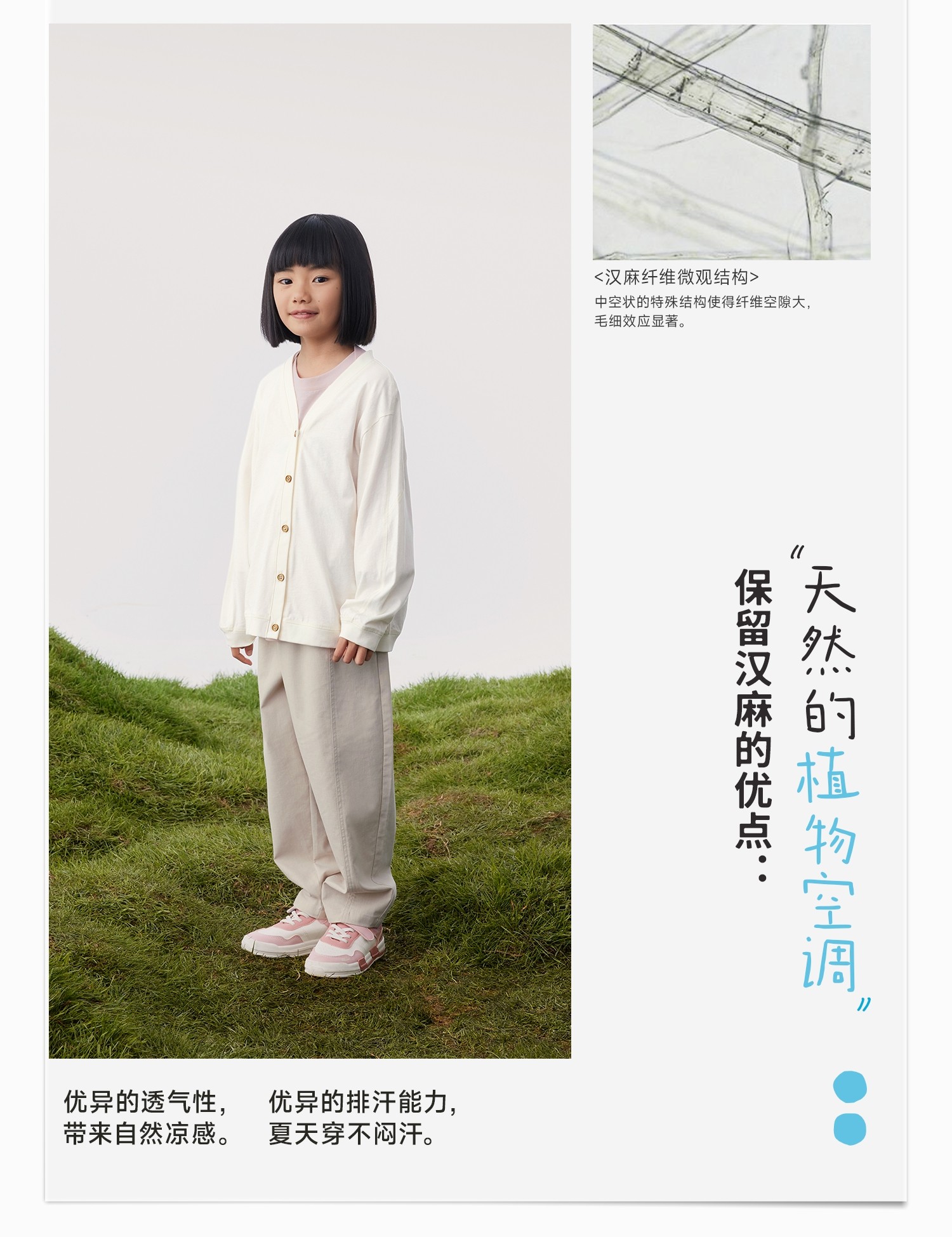 【好友特惠】幼岚「柔软汉麻」梭织长裤凉感透气24春季新款儿童休闲裤长裤ZY