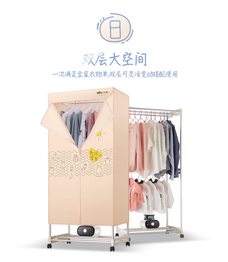 【家用电器】小熊*快速加热烘干机HGJ-A12R1烘衣架双层大容量雨天晾衣架