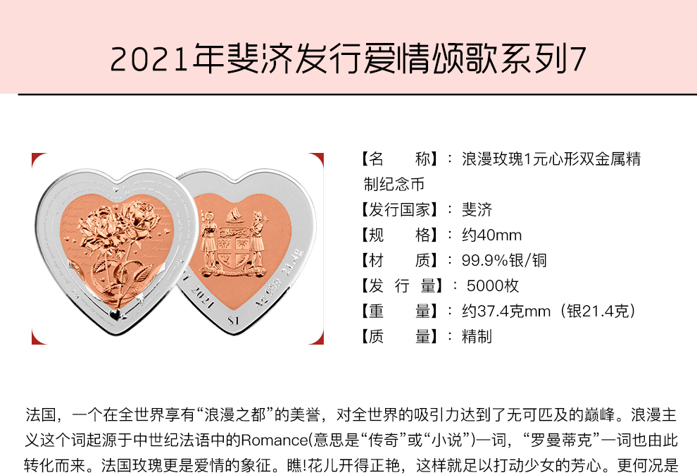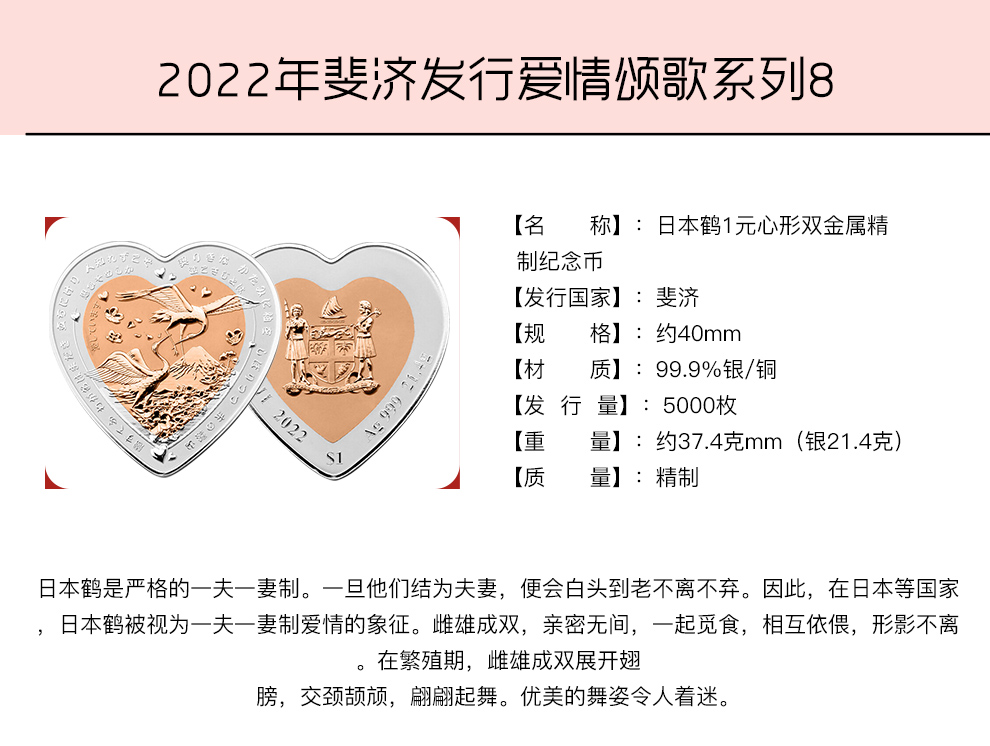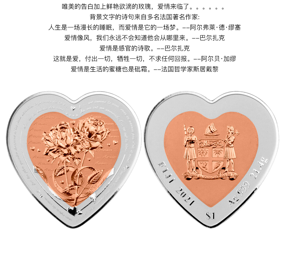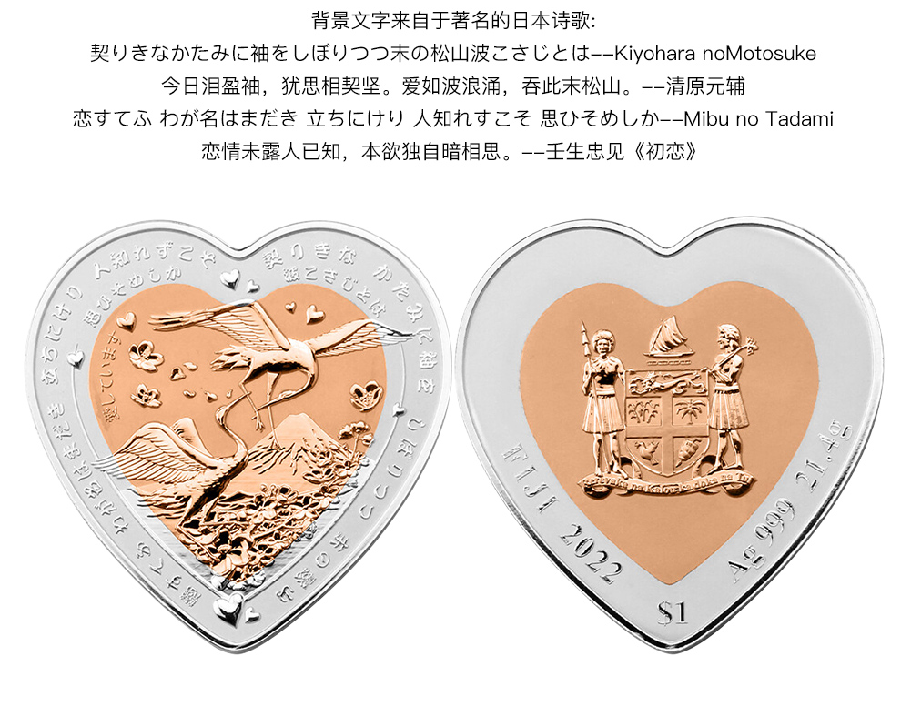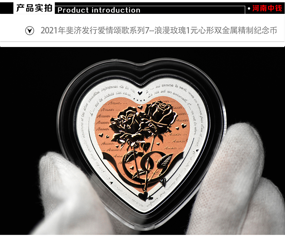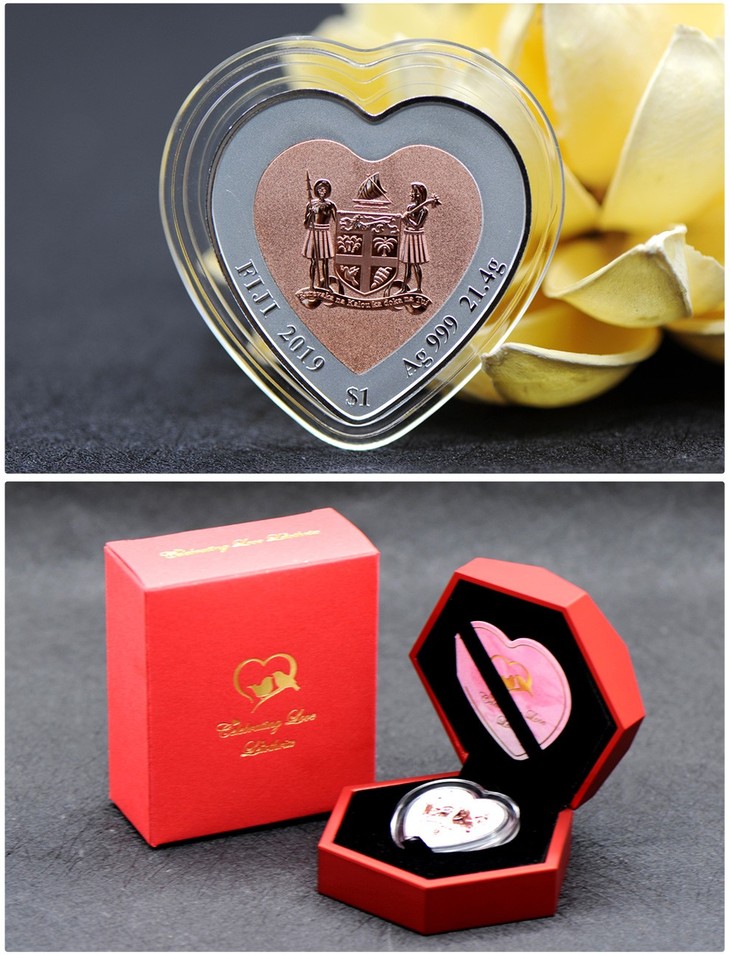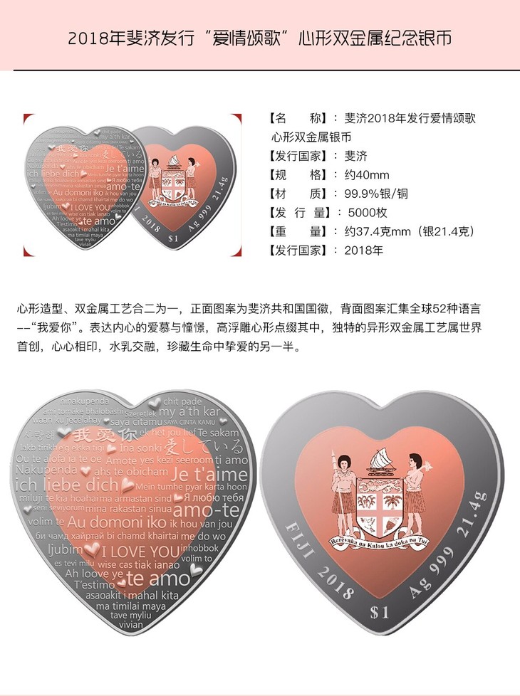 河南中钱 斐济心形双金属 纪念银币 情人节礼物 520告白礼