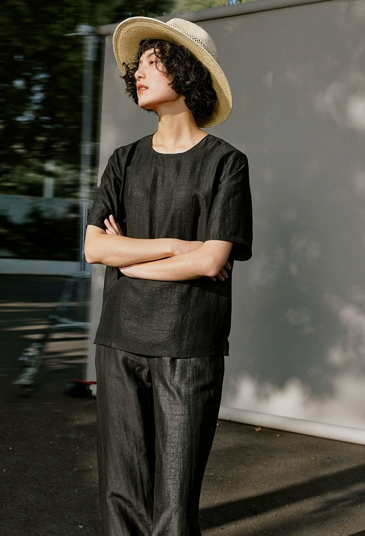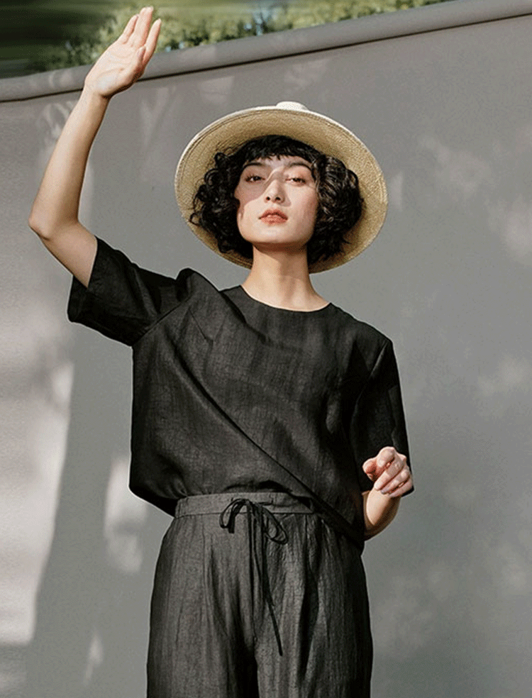 在夏日的微风中,蝉鸣不绝耳,一袭香云衫裤沙沙响,真的太高级了!