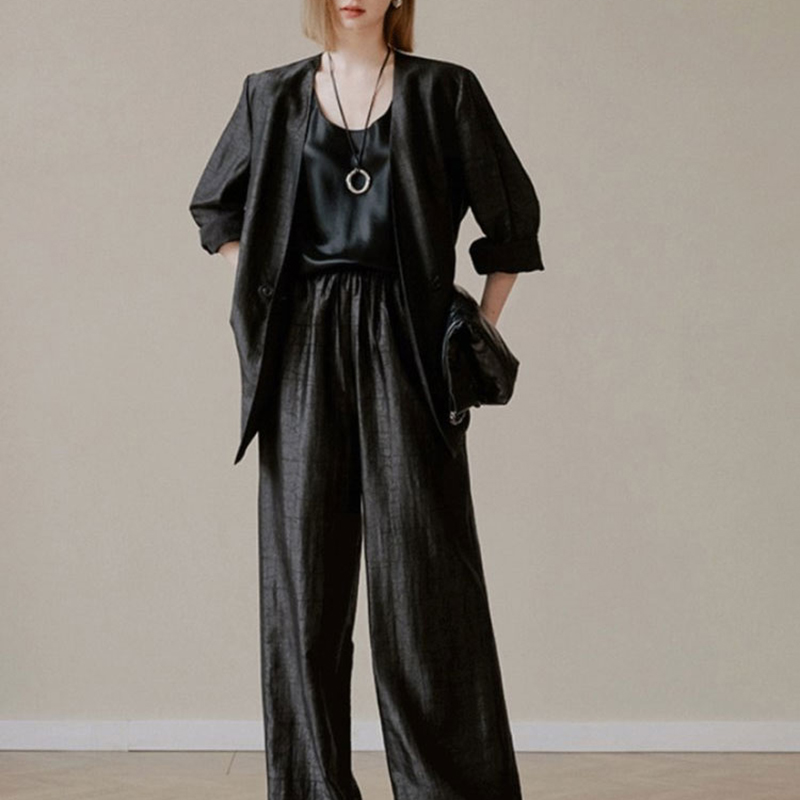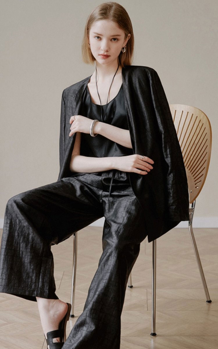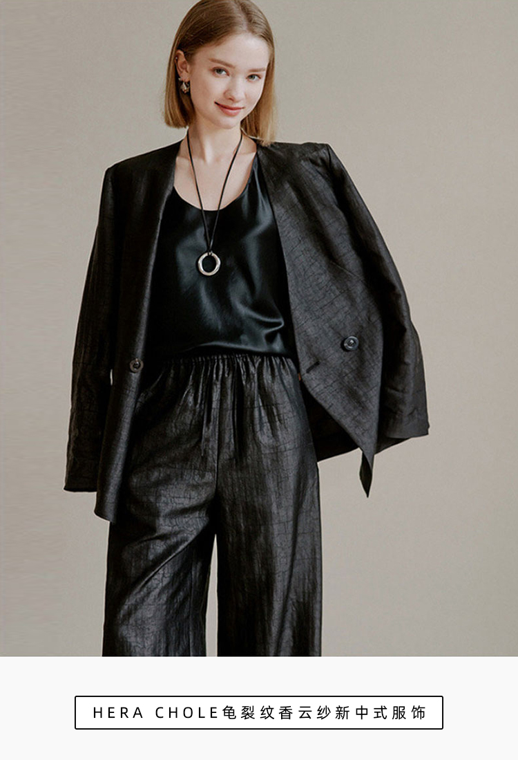 一套入龟裂纹香云纱西装+醋酸背心+阔腿裤,立减109元。