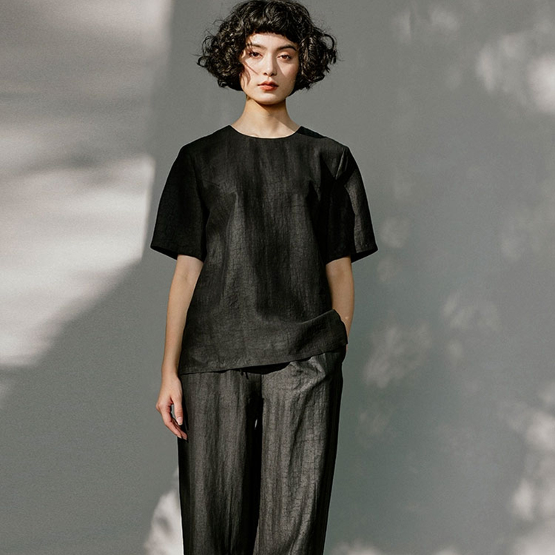 同时入龟裂纹香云纱短袖上衣+阔腿裤,立减20元;