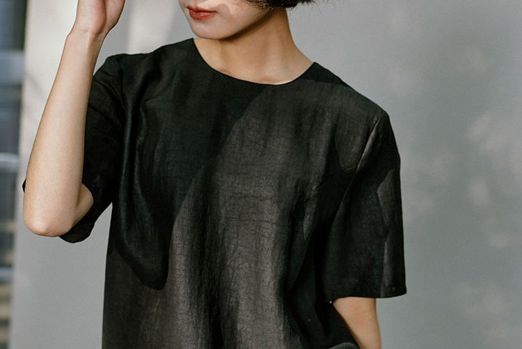 所以你拿到手的香云纱,既具备真丝本有的凉滑感,但又有普通真丝没有的筋骨感,更挺阔有型,在夏天穿着再适合不过了。