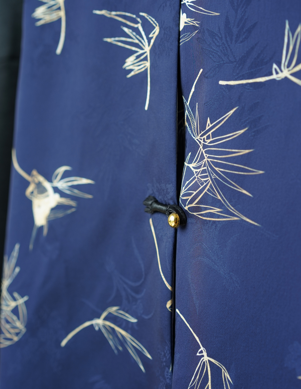 独特的藏青与金配色,宛如古画中走出金辉,飞入深邃夜空中竹燕春晖,细节处诠释中式高级氛围感,让你在人群中脱颖而出。