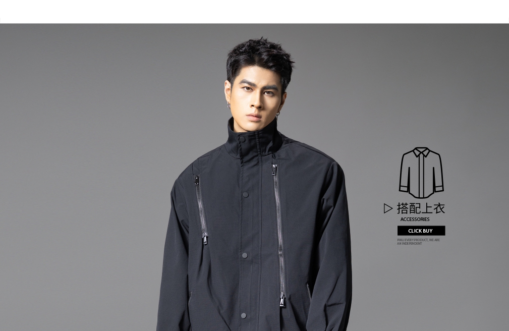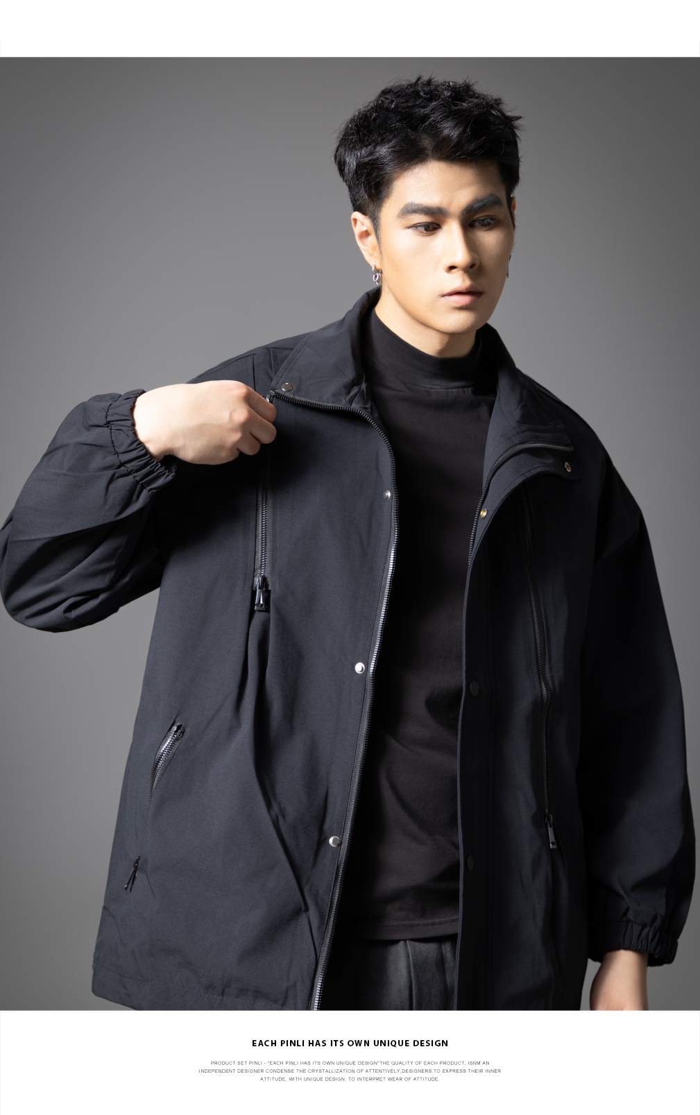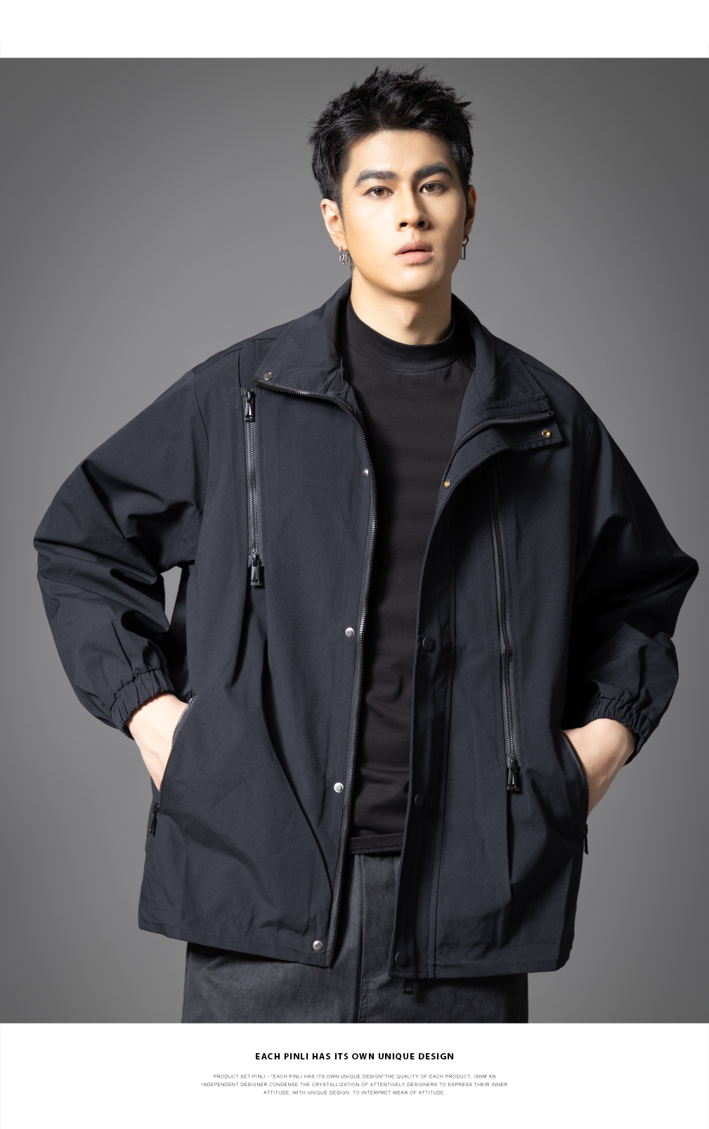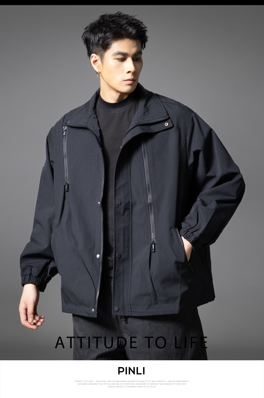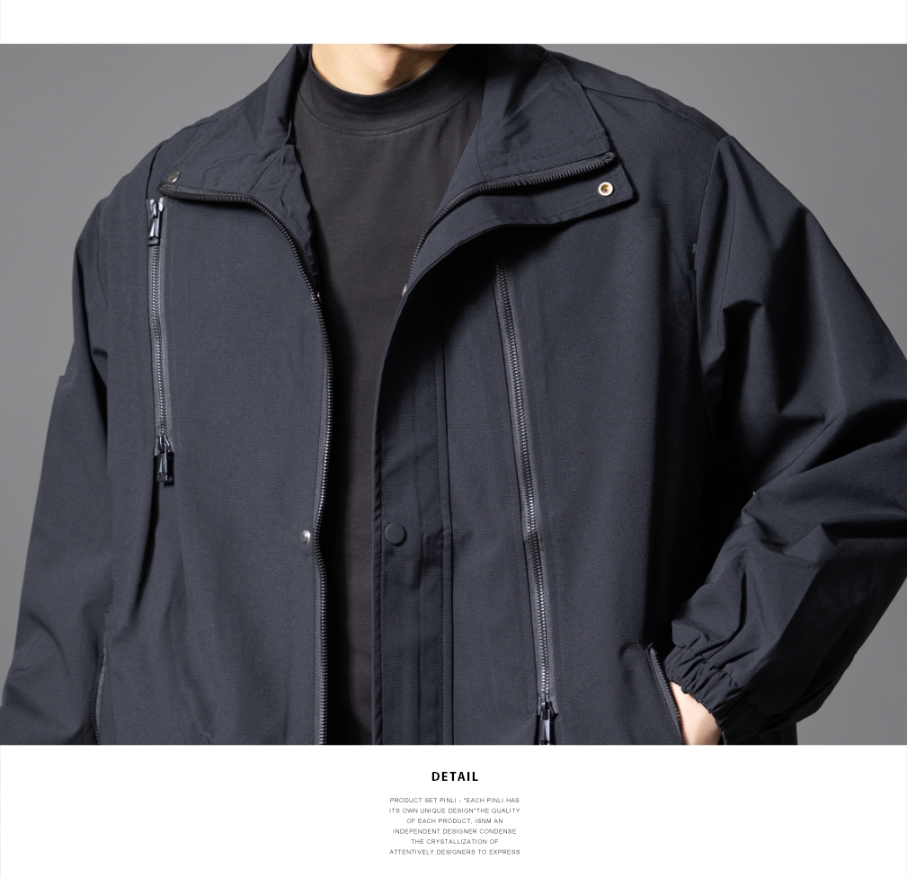 PINLI品立2025秋季新款潮牌立领夹克男宽松休闲百搭工装外套上衣GD253104003