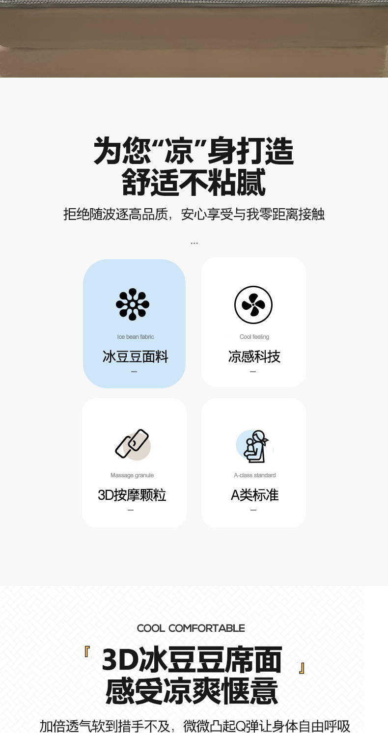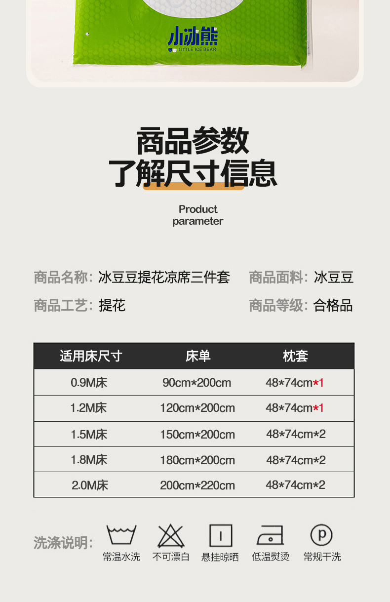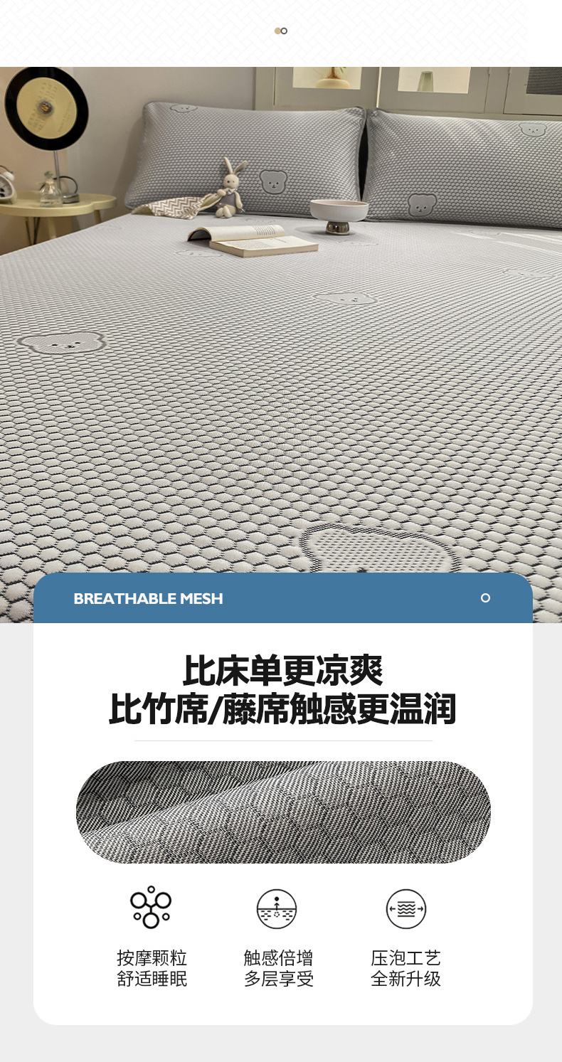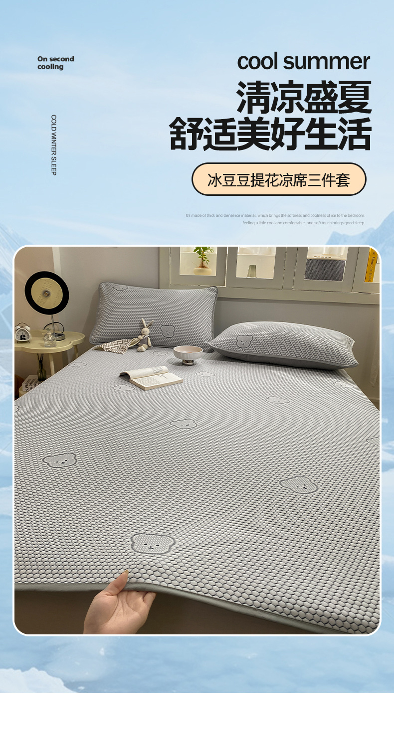 【海棠春 凉感豆豆凉席三件套】高克重凉感面料 提花工艺色泽温柔 折叠不变形 3D按摩抚触 收纳方便精美袋装