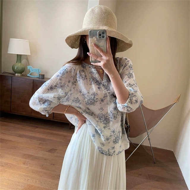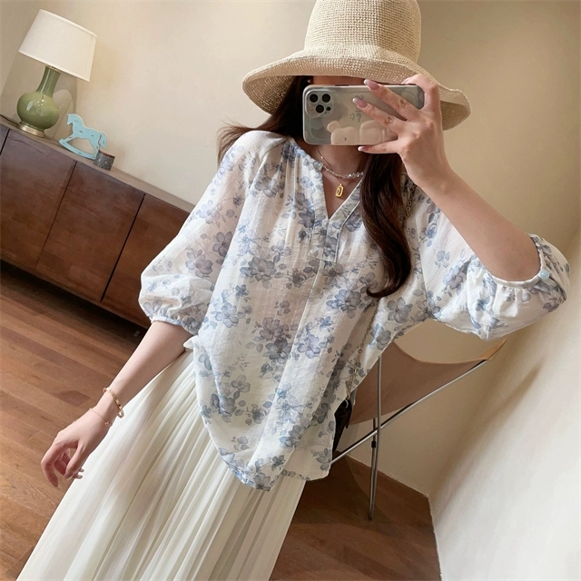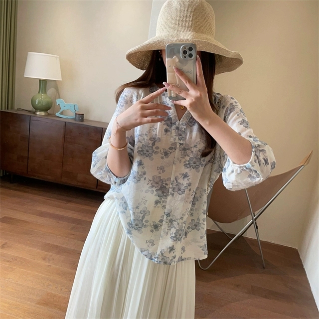 温柔与优雅气质并存的印花小衫